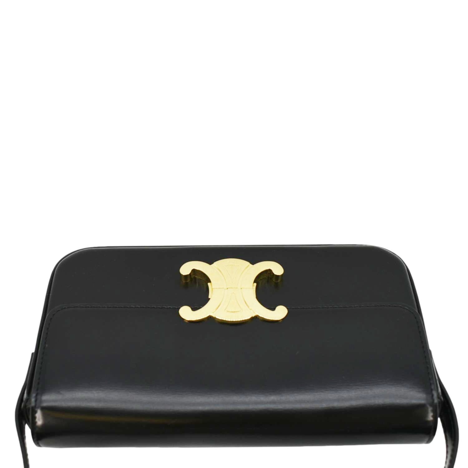 CELINE Triomphe Calfskin Leather Shoulder Bag Black