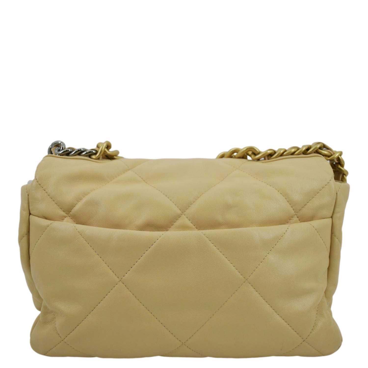 CHANEL 19 Small Flap Quilted Lambskin Leather Shoulder Bag Beige