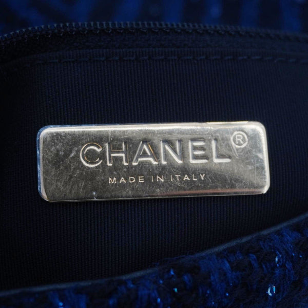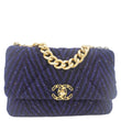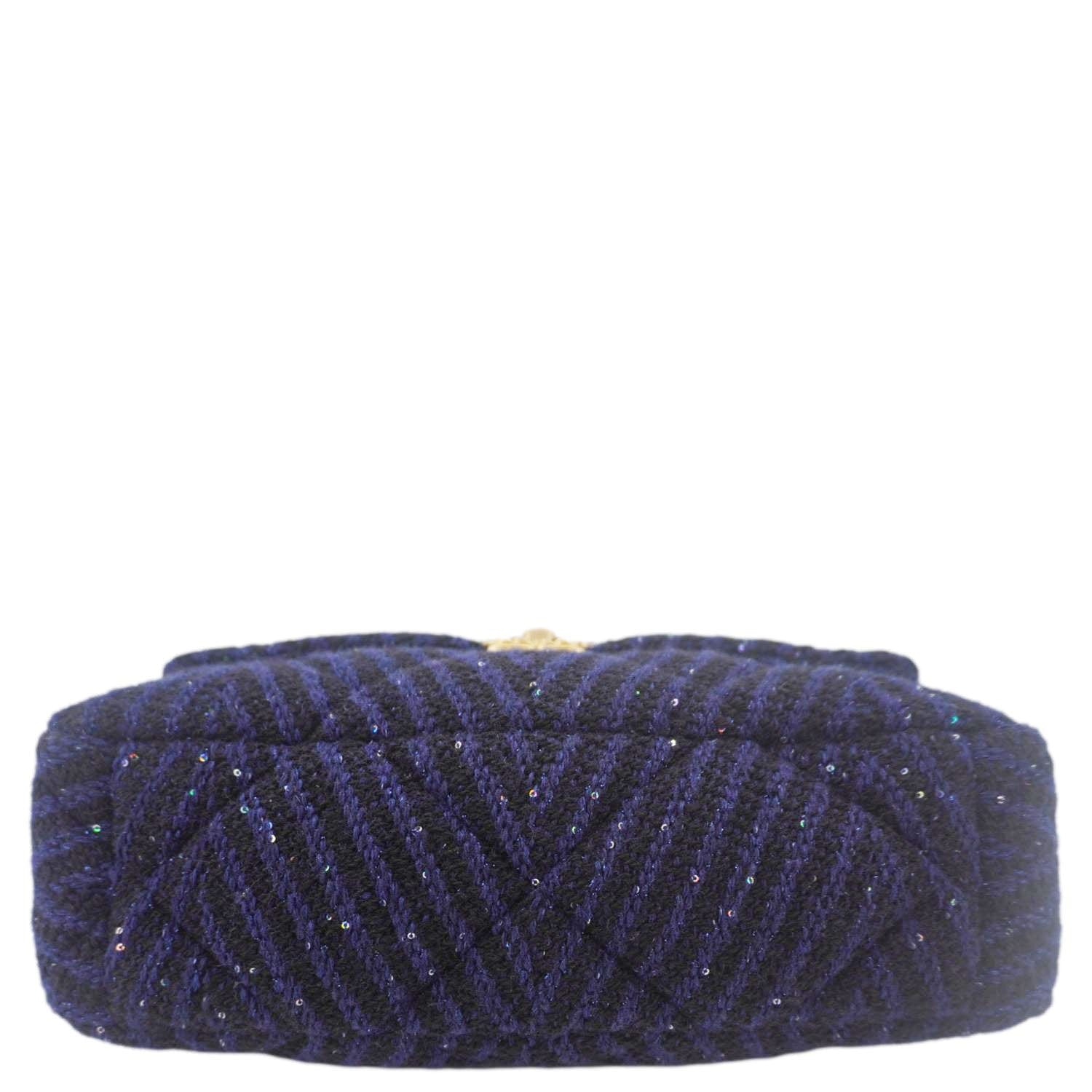CHANEL 19 Flap Quilted Tweed Sequins Shoulder Bag Navy Blue