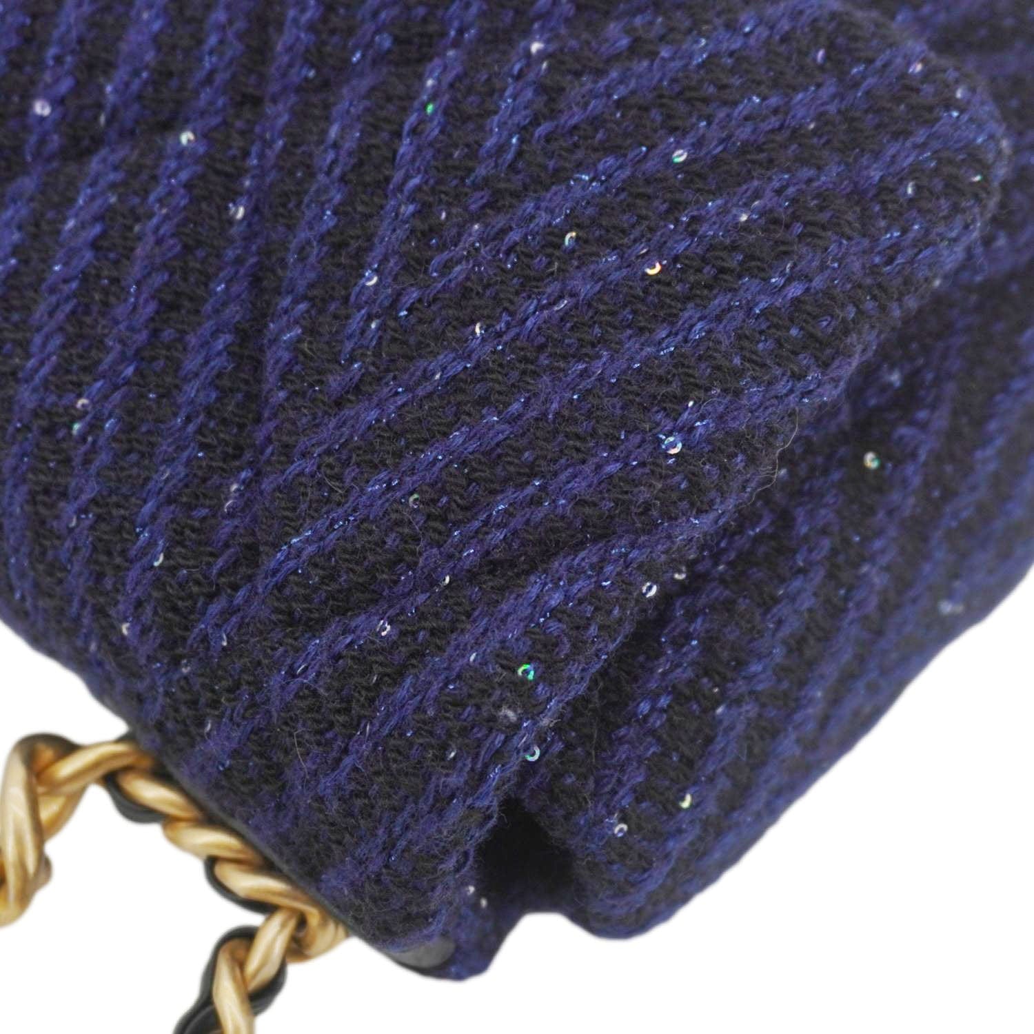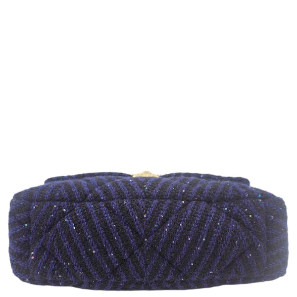 19 Flap Quilted Tweed Sequins Shoulder Bag Navy Blue