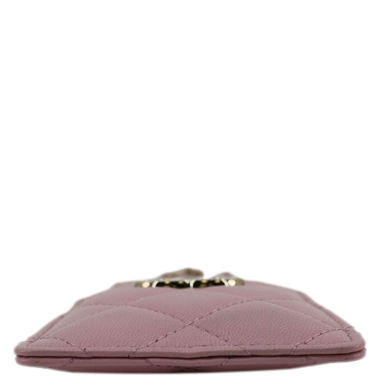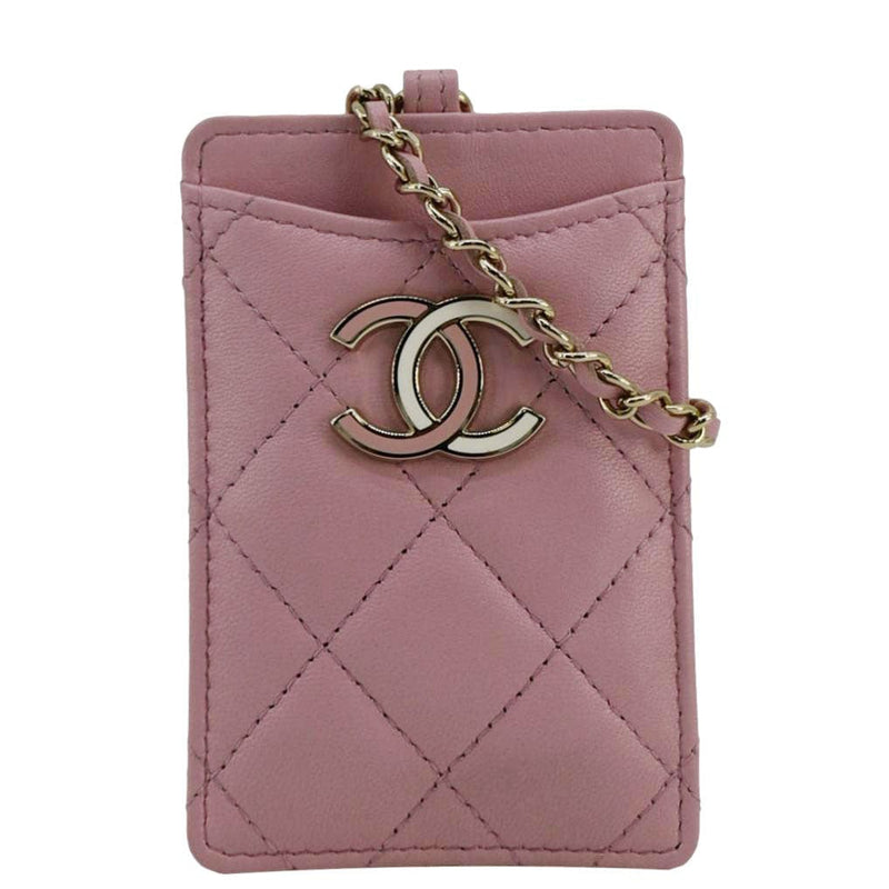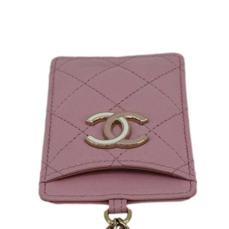 CHANEL CC Quilted Lambskin Leather Chain ID Card Holder Pink