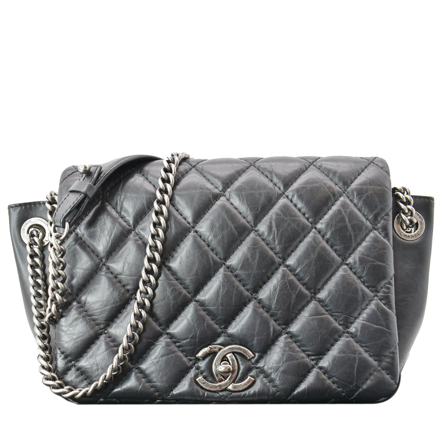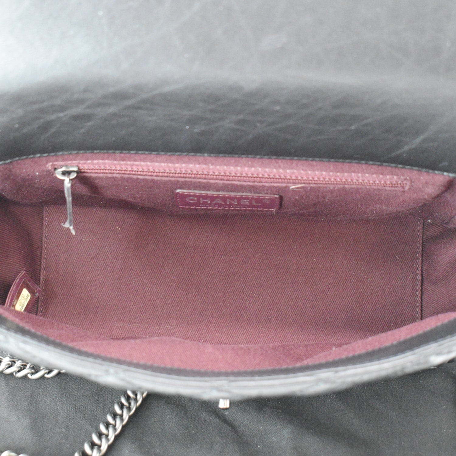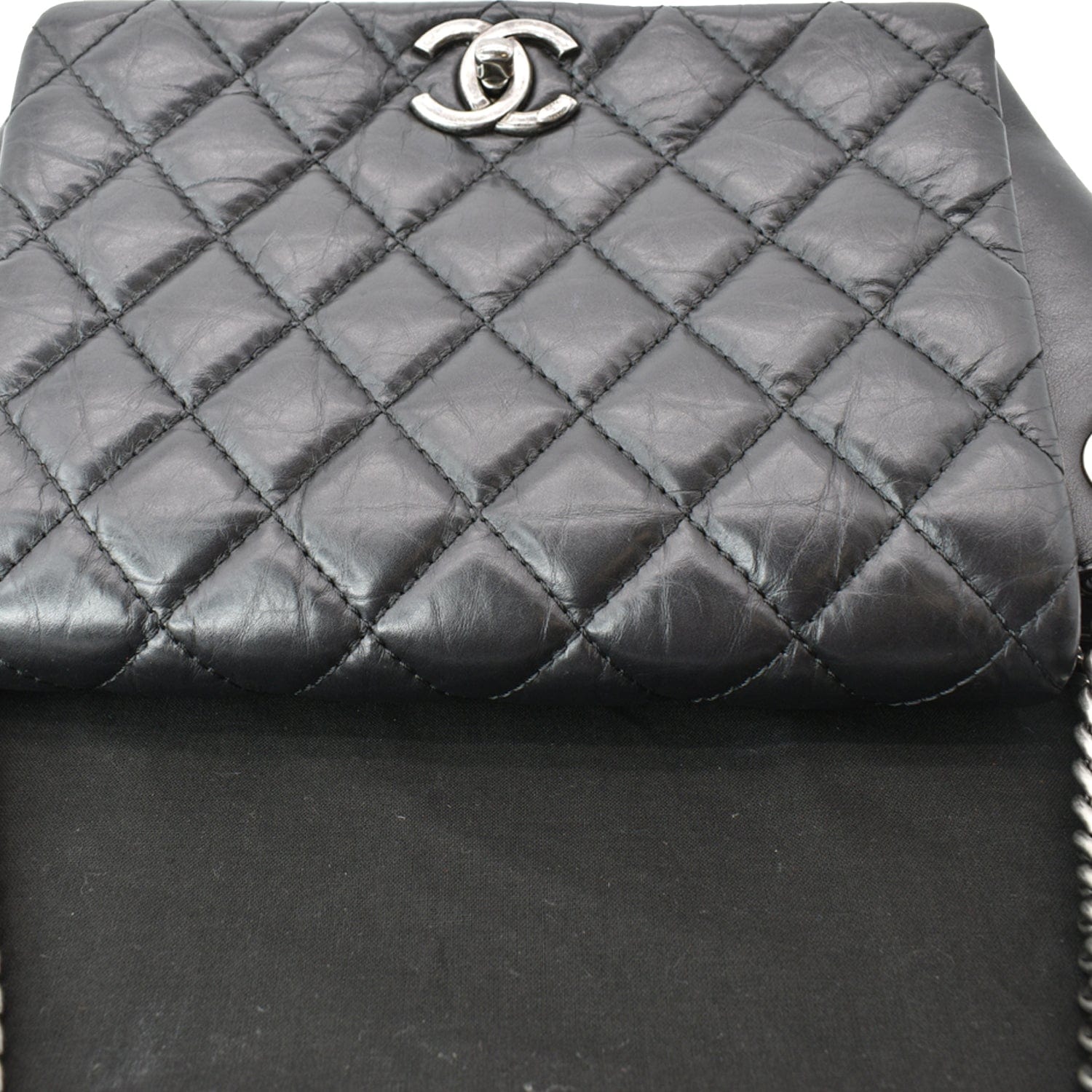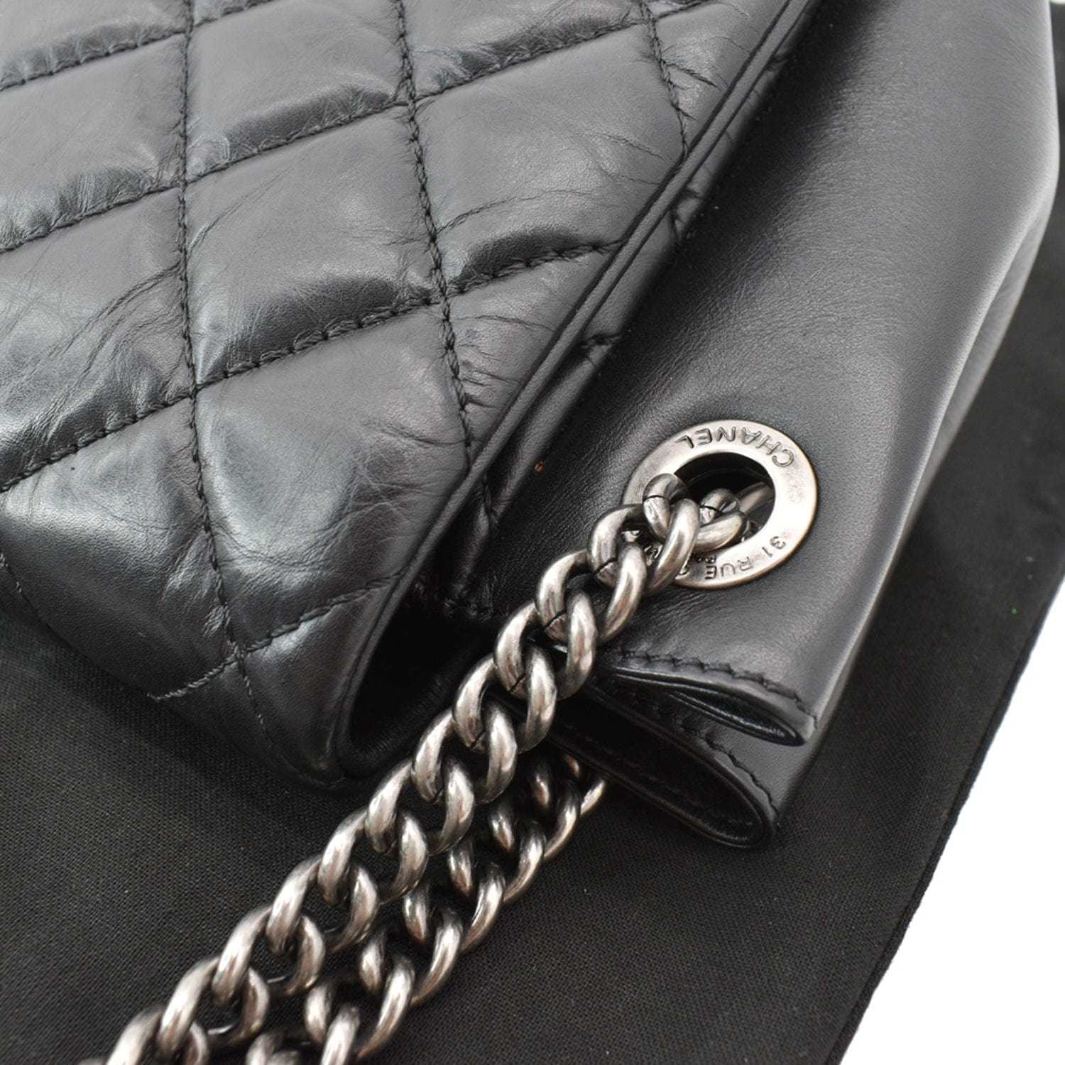 CHANEL Accordion Flap Aged Leather Shoulder Bag Black