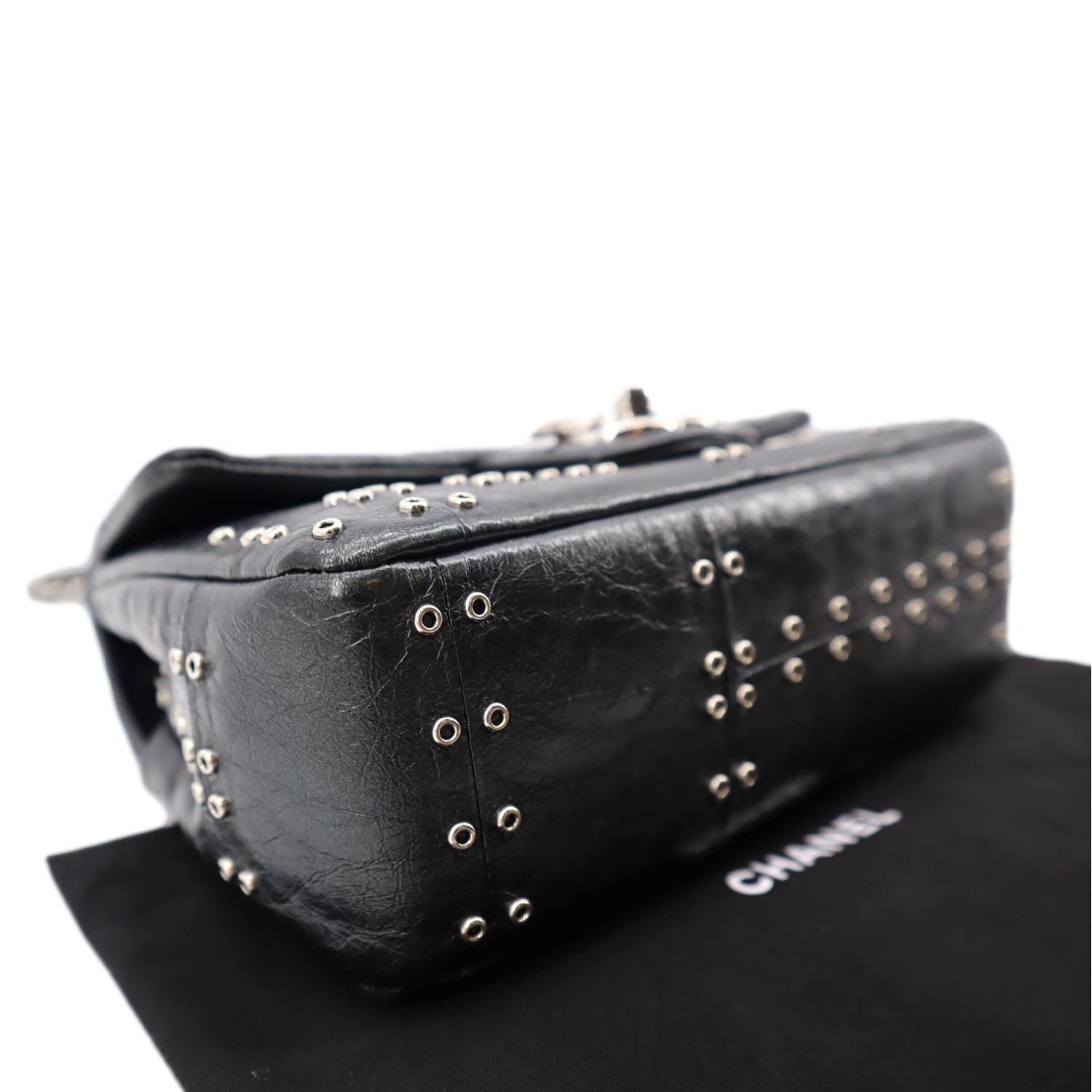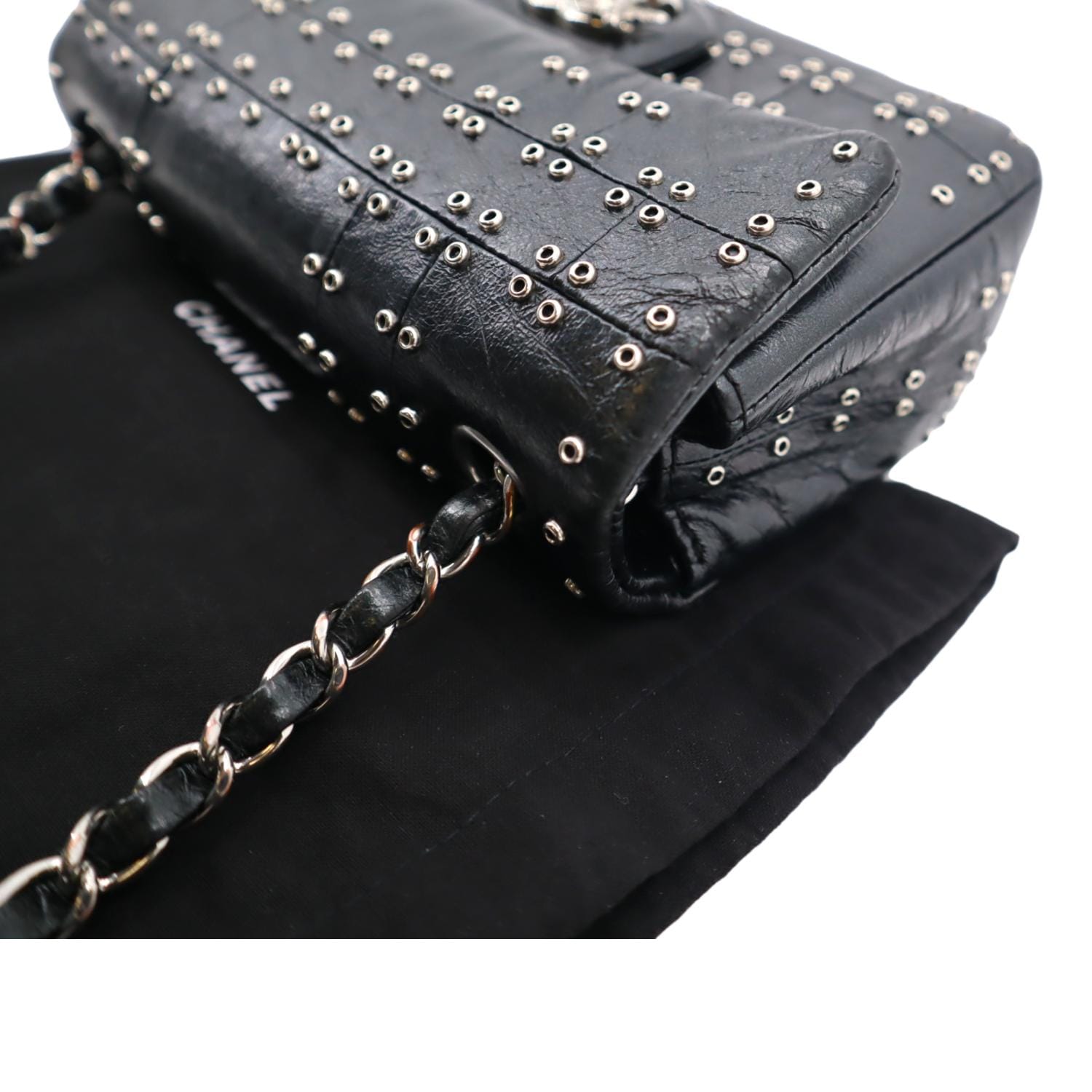 CHANEL Airlines Grommet Studded Leather Shoulder Bag Black