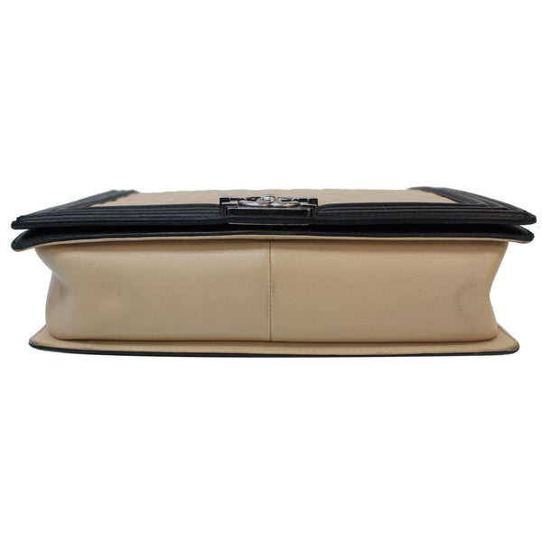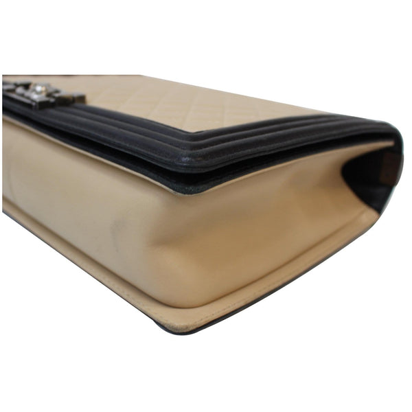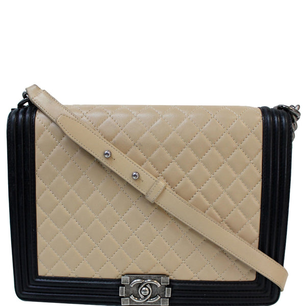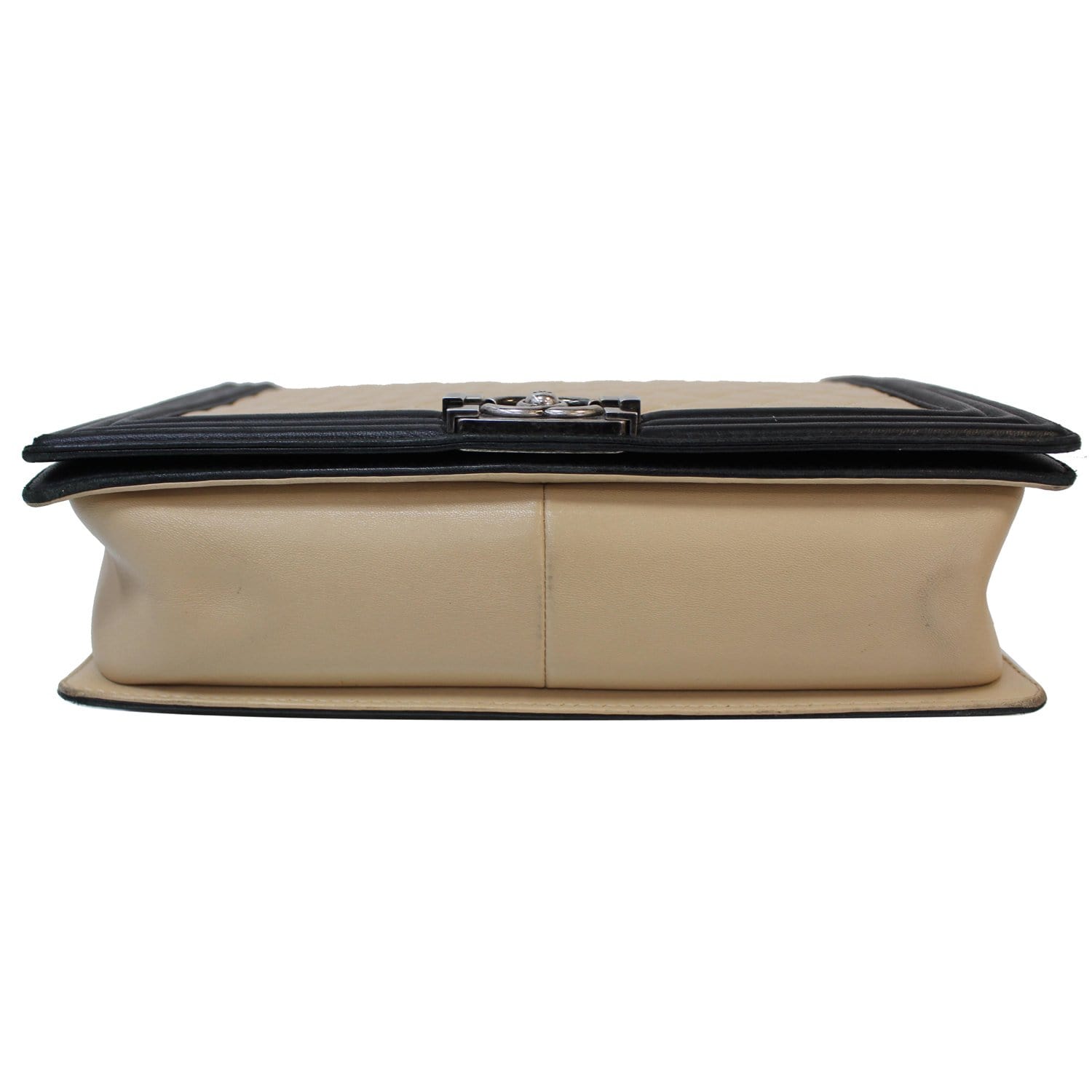 CHANEL Bi-Color Large Boy Flap Quilted Lambskin Leather Shoulder Bag Beige
