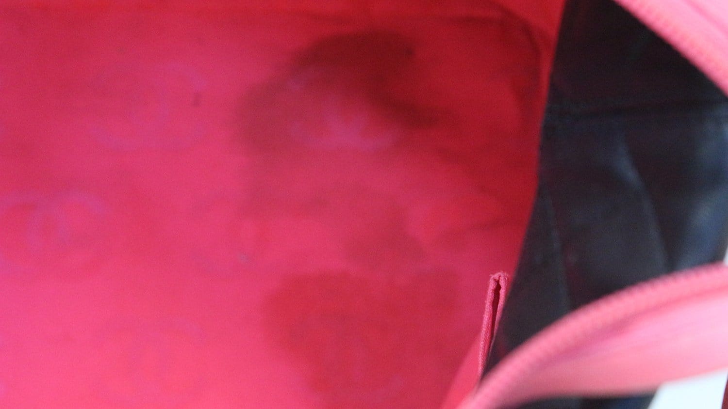 Chanel Ligne Cambon collection and is very popular among Chanel lovers everywhere. The black Calf Skin leather features a bold Black CC logo and silver color hardware. The interior is roomy with a vibrant pink lining that has two zippered pockets, cell phone pocket and two pen holders.
