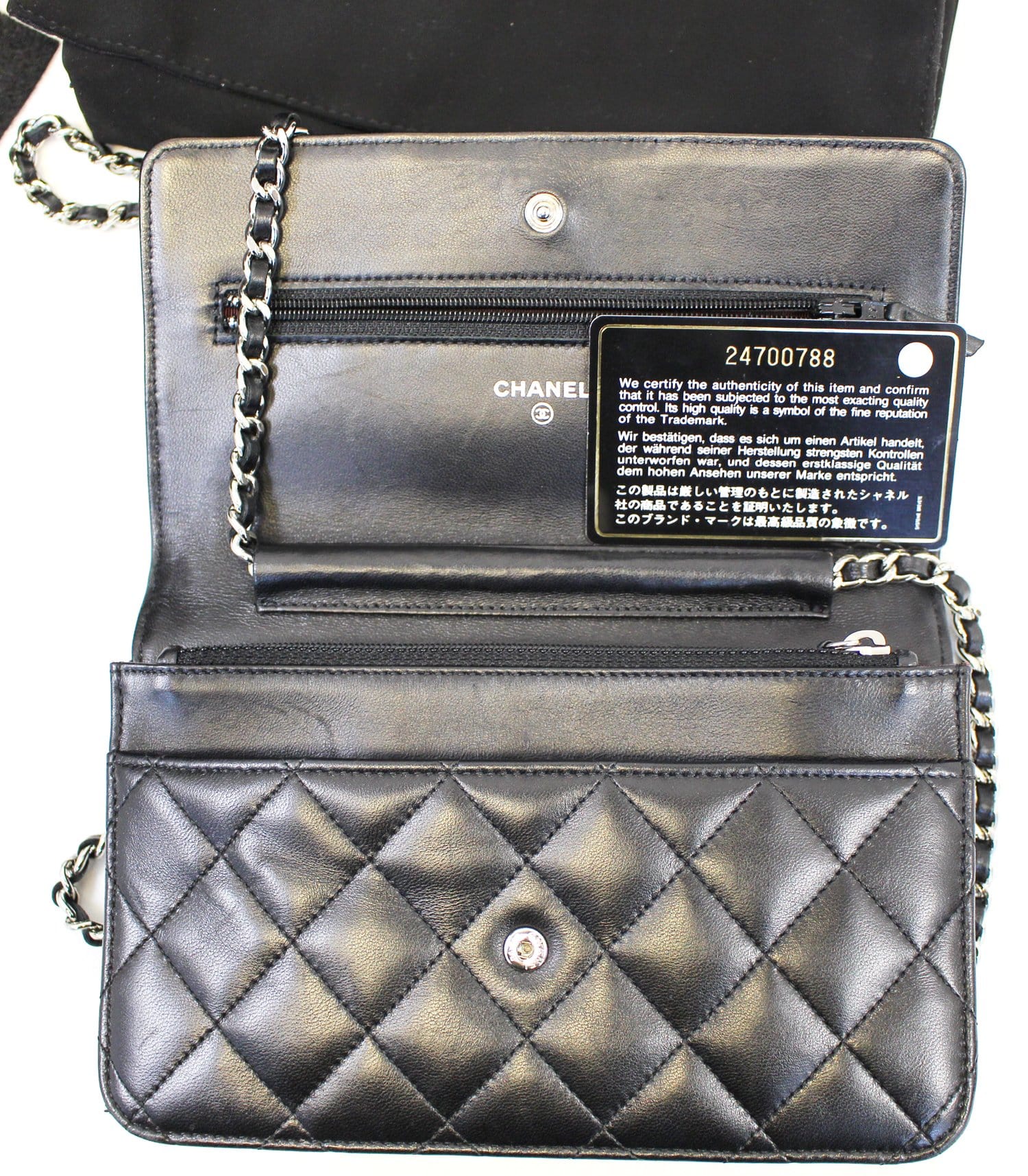 CHANEL Black LambSkin Wallet On Chain WOC Clutch Crossbody Bag