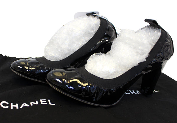 CHANEL Black Leather Elastic Ballet Pumps Size 36