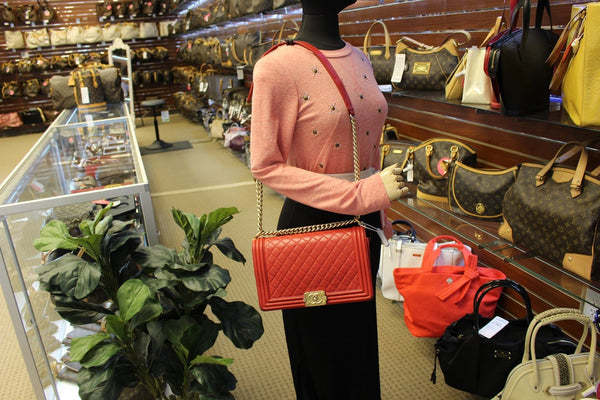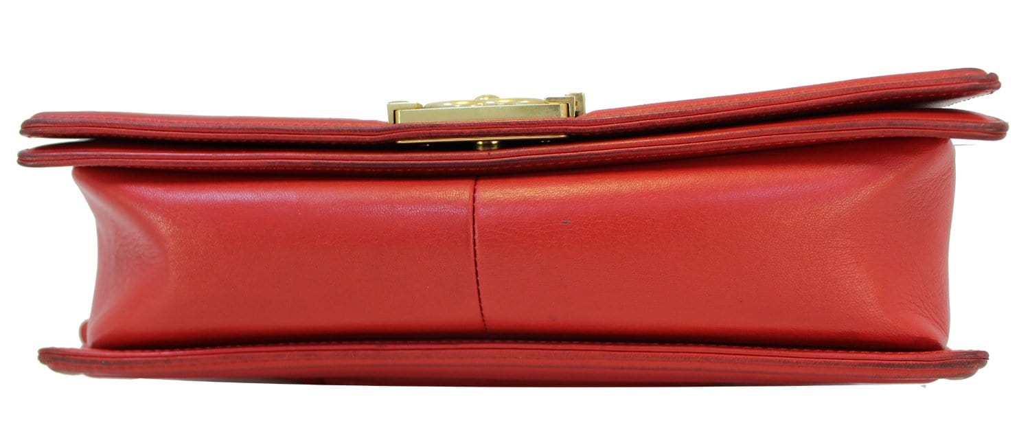 Karl Lagerfeld designed the Boy Collection as an interpretation of the boyish charm that Coco Chanel was known for. Karl was stated as saying that the very spirit of Chanel was inspired by Boy Capel, the love of her life; which is why this new collection is called the "Boy Chanel." This gorgeous bag is made of gorgeous red quilted calfskin leather and is the largest size of the collection and features a long chain-link strap with a leather pad that can be used as a long strap or looped around as a shoulder bag.