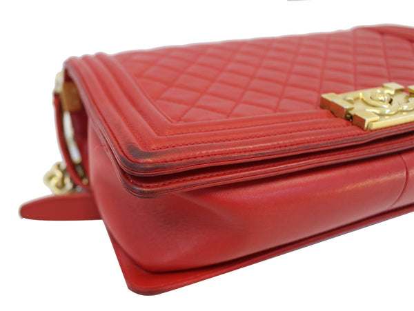 CHANEL Boy Bag - Red Glazed Quilted Leather Large