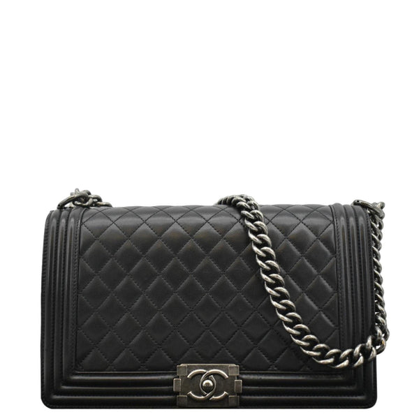 CHANEL Quilted Leather Boy Flap Medium Shoulder Bag Black