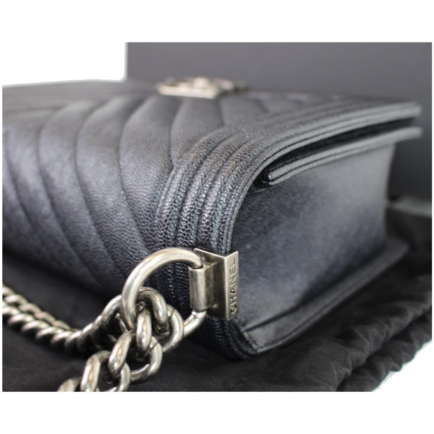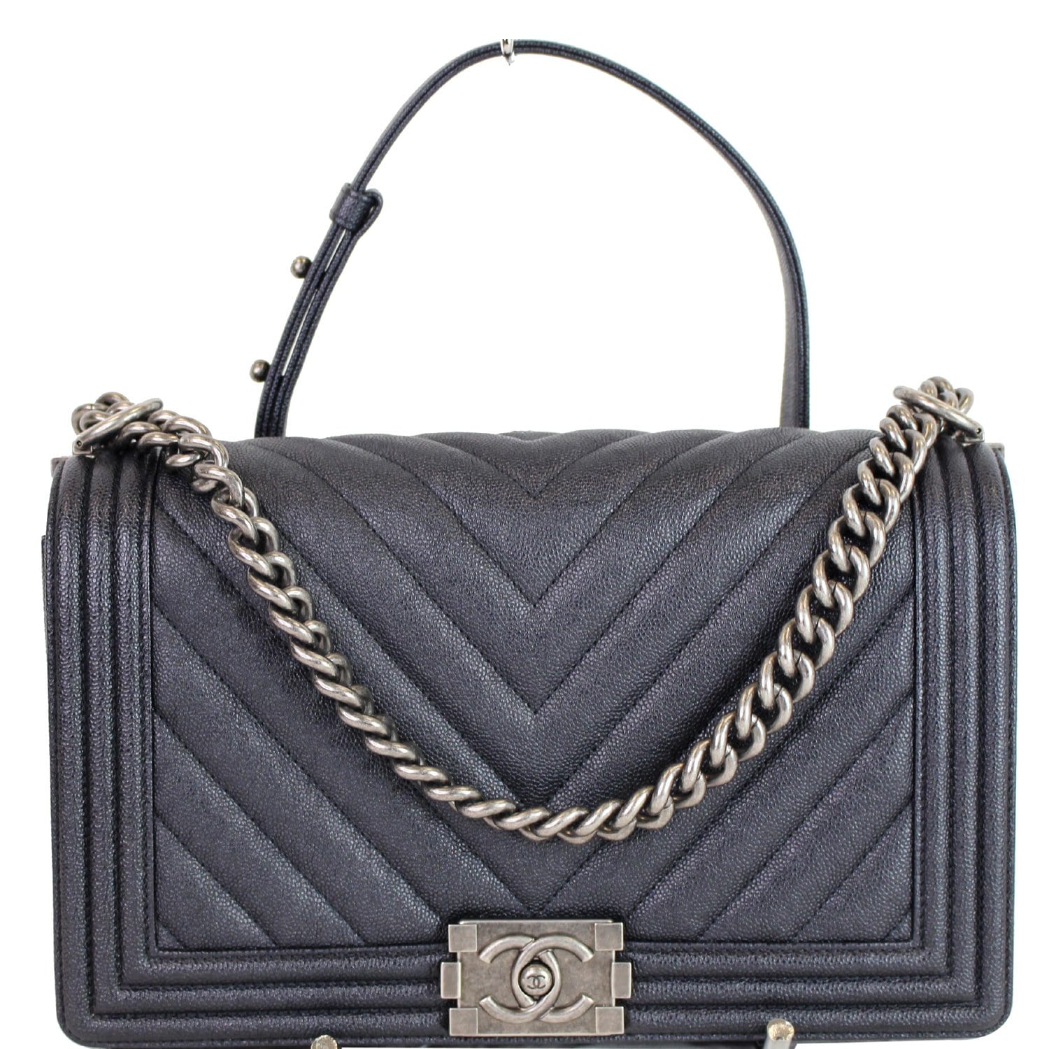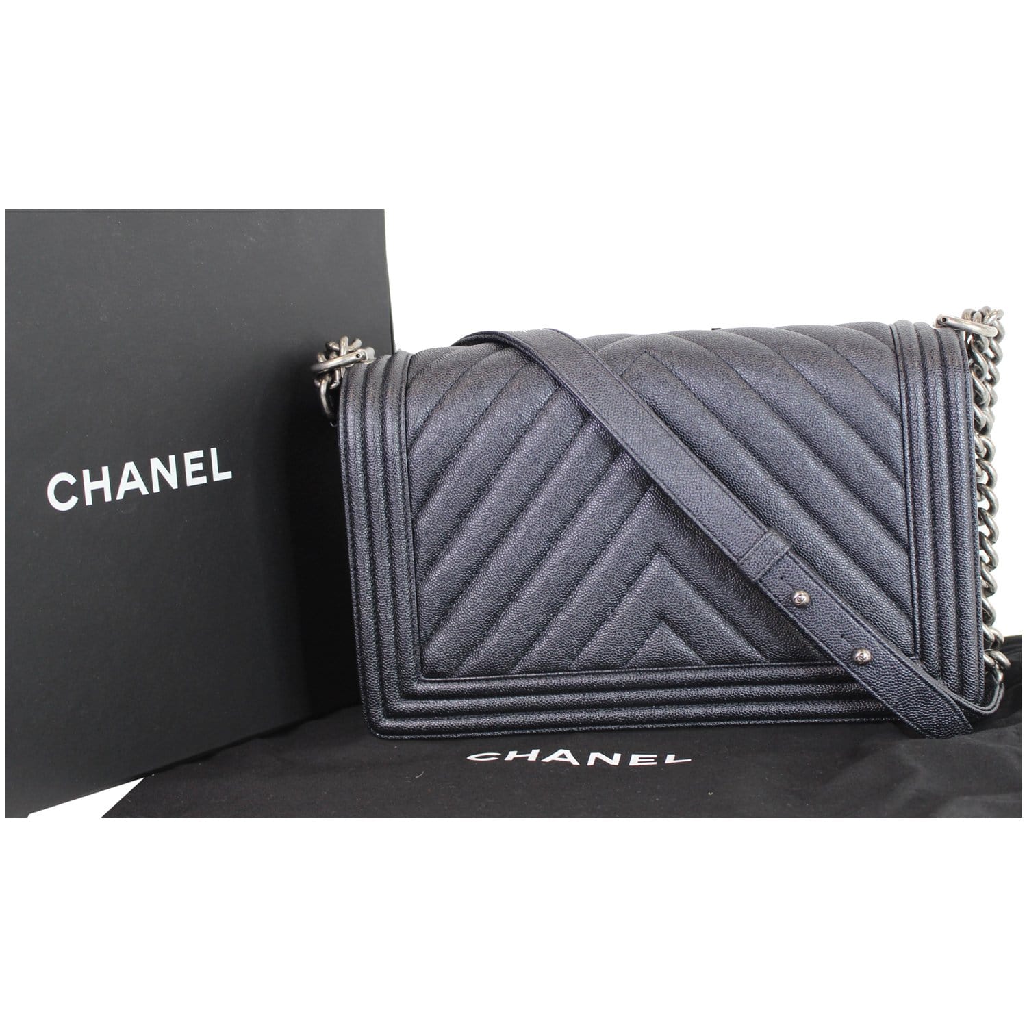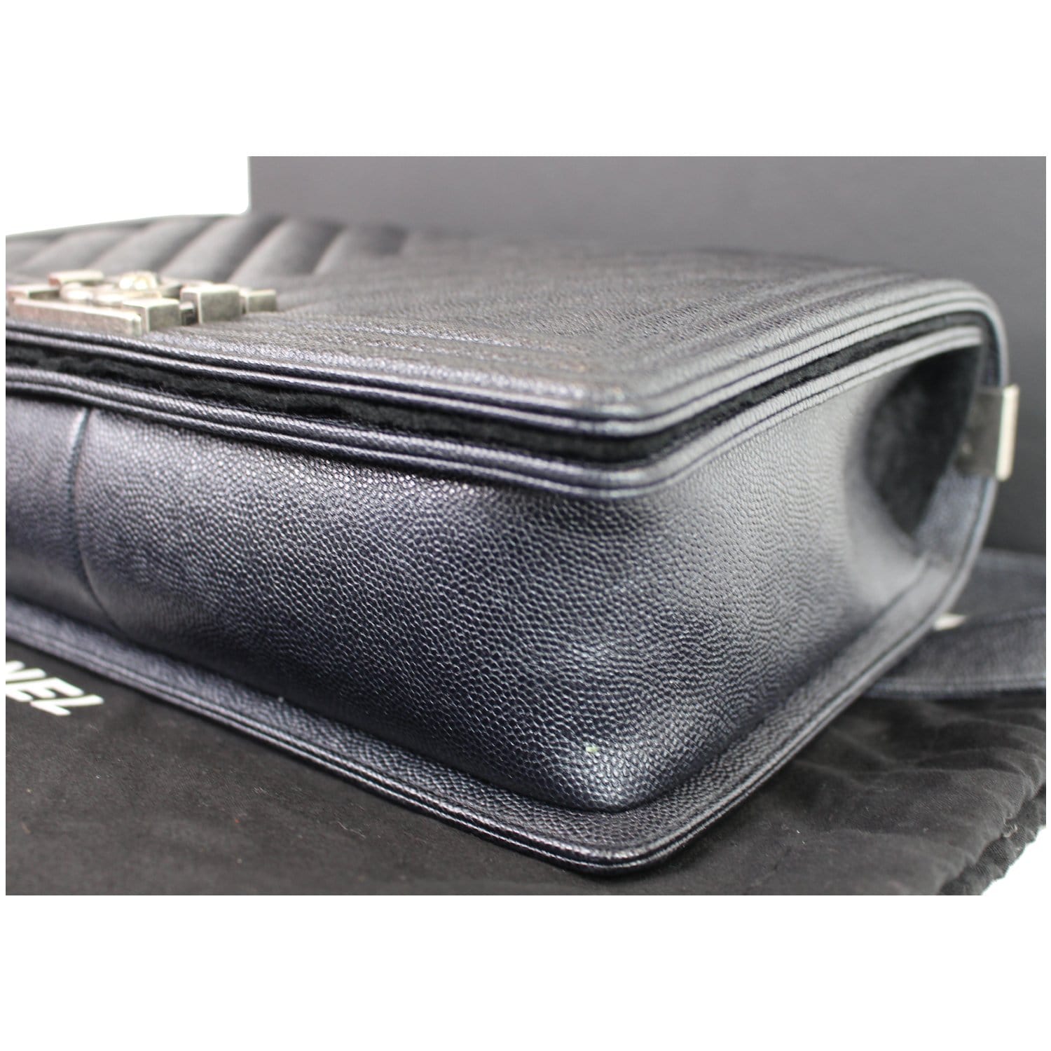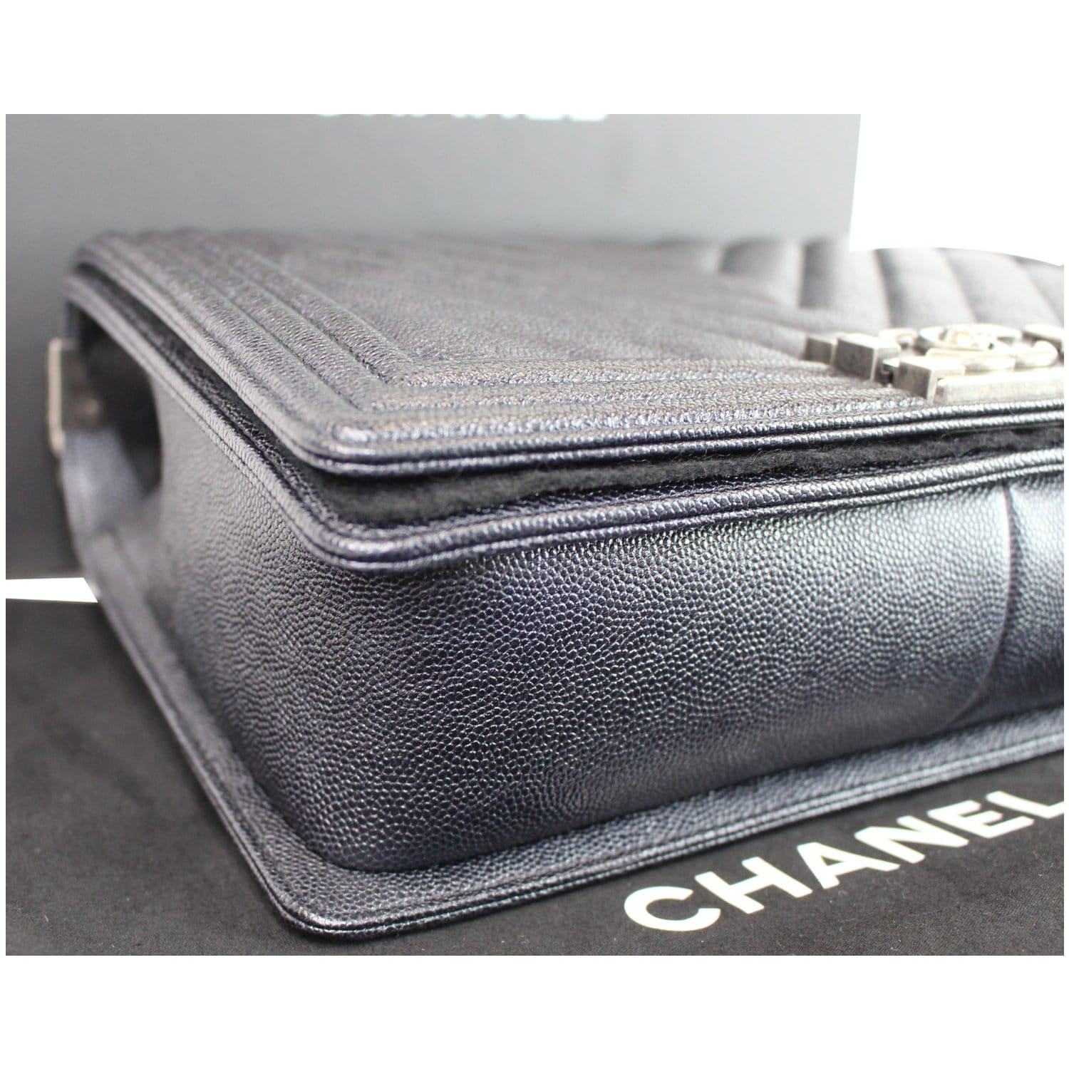 Chanel Boy New Medium Chevron Caviar Shoulder Bag Navy