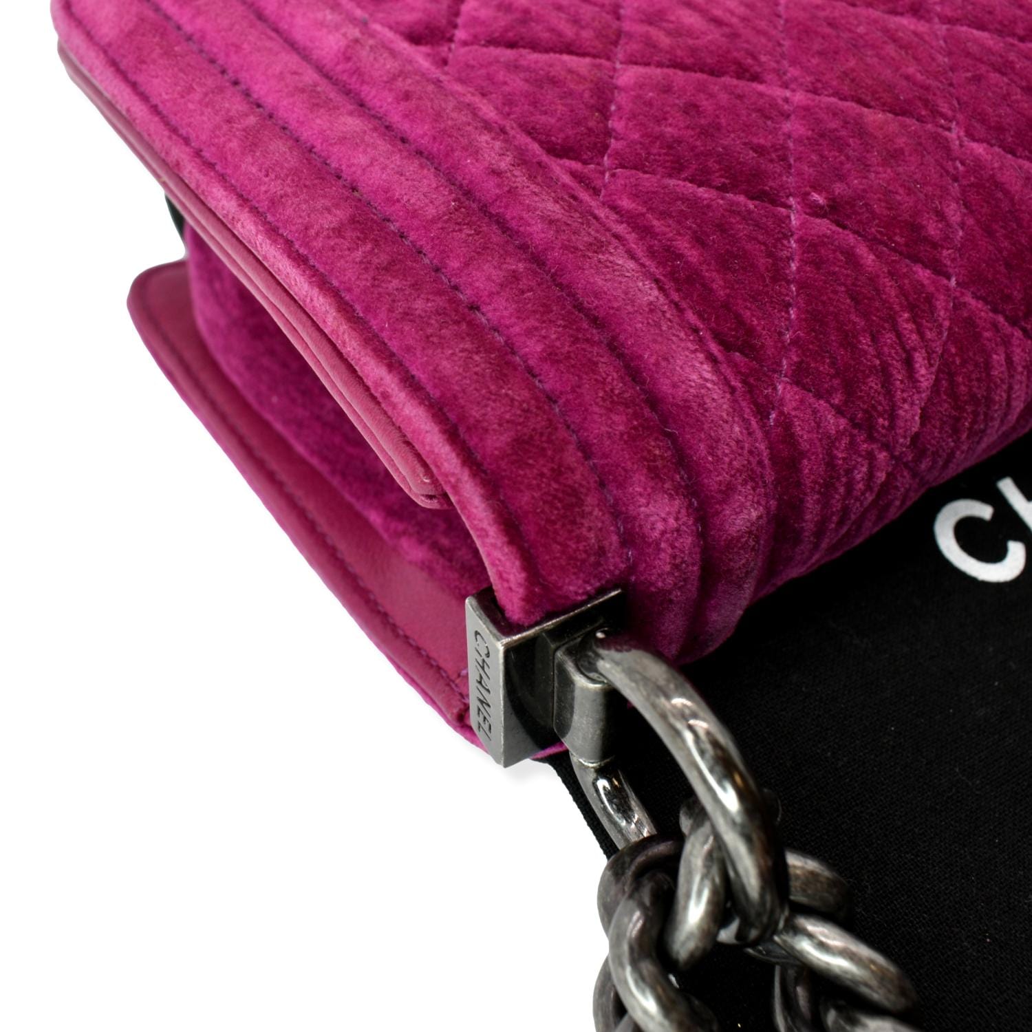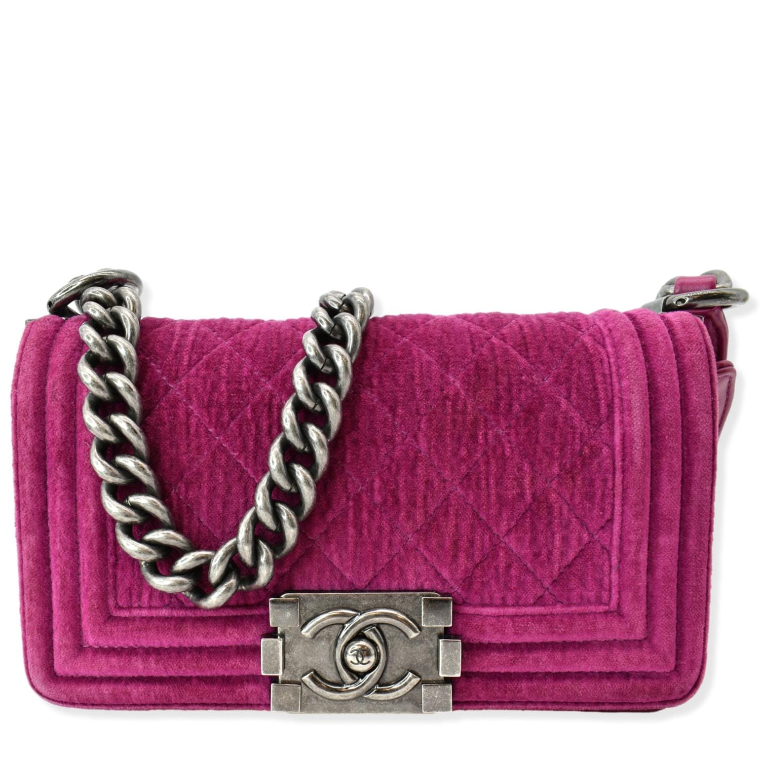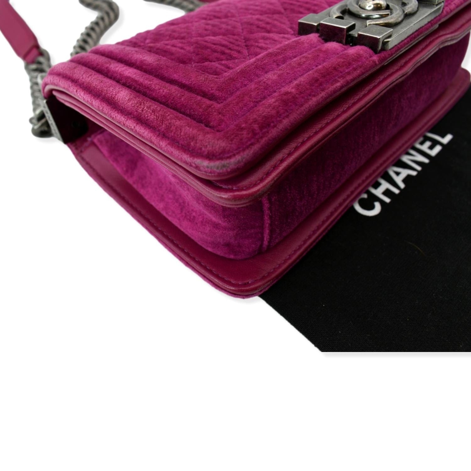 CHANEL Small Boy CC Chain Velvet Shoulder Bag Fuchsia