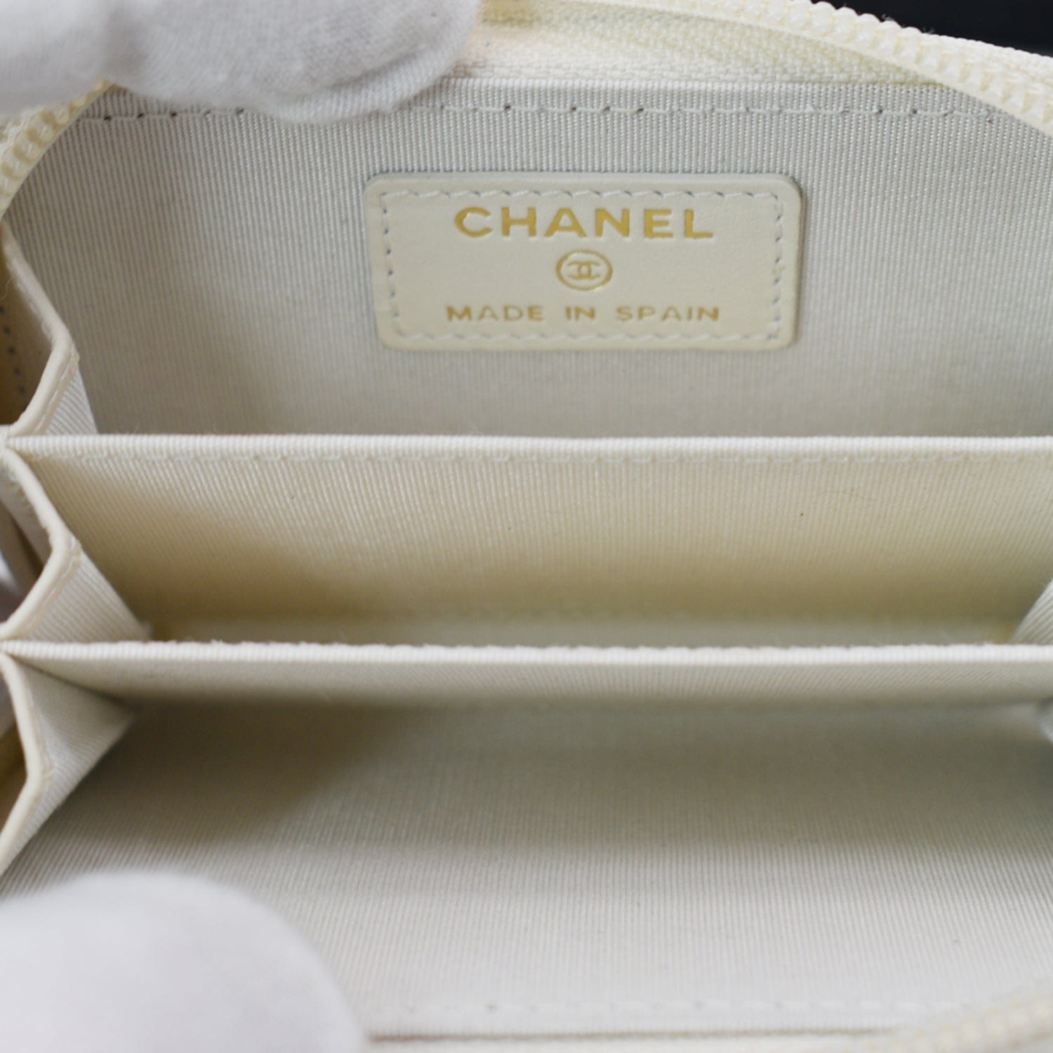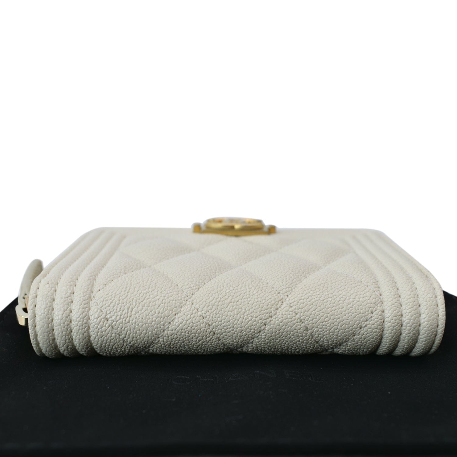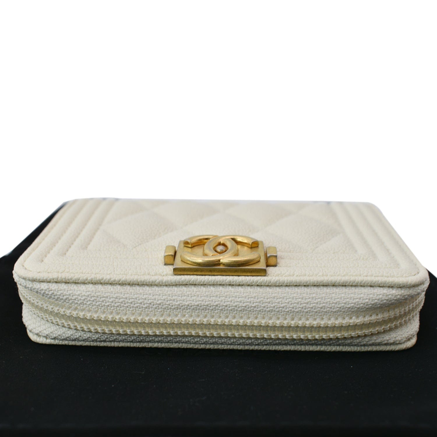 CHANEL Caviar Quilted Small Boy Zip Around Wallet White