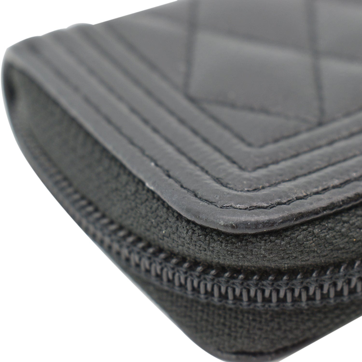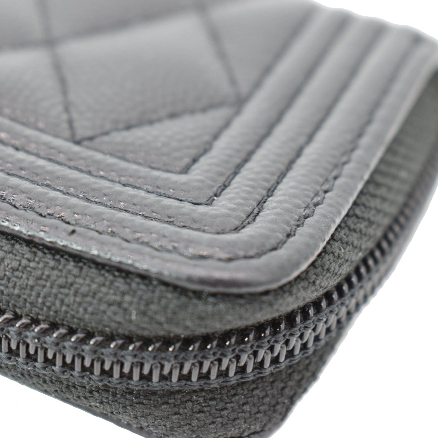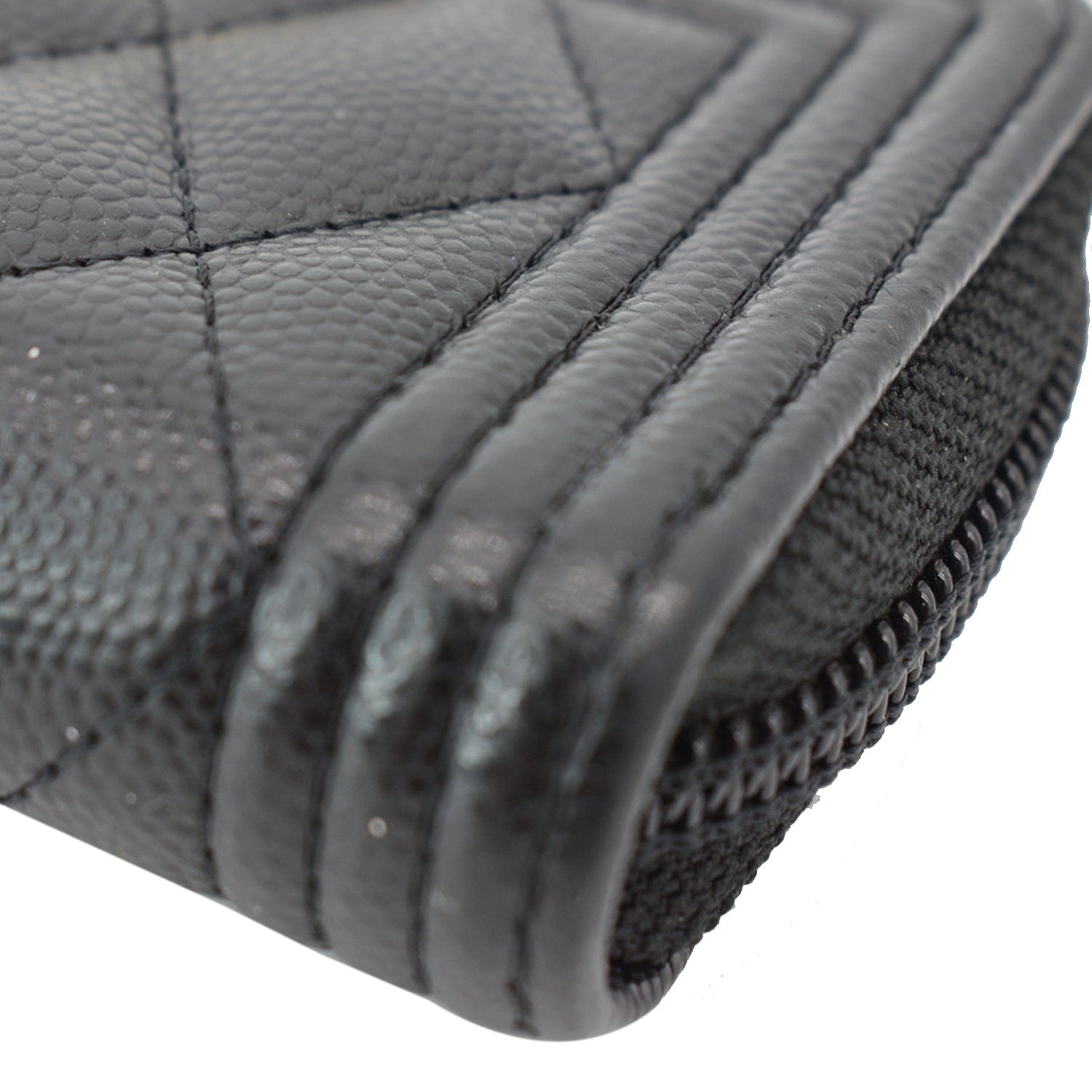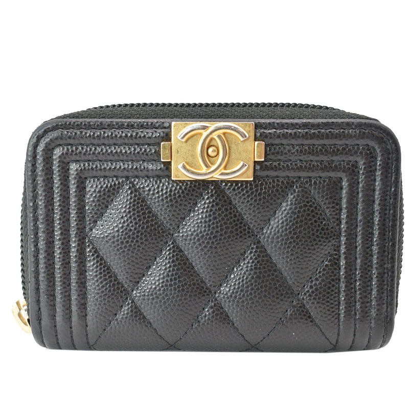 CHANEL Boy Small Zipped Quilted Caviar Coin Purse Wallet Black