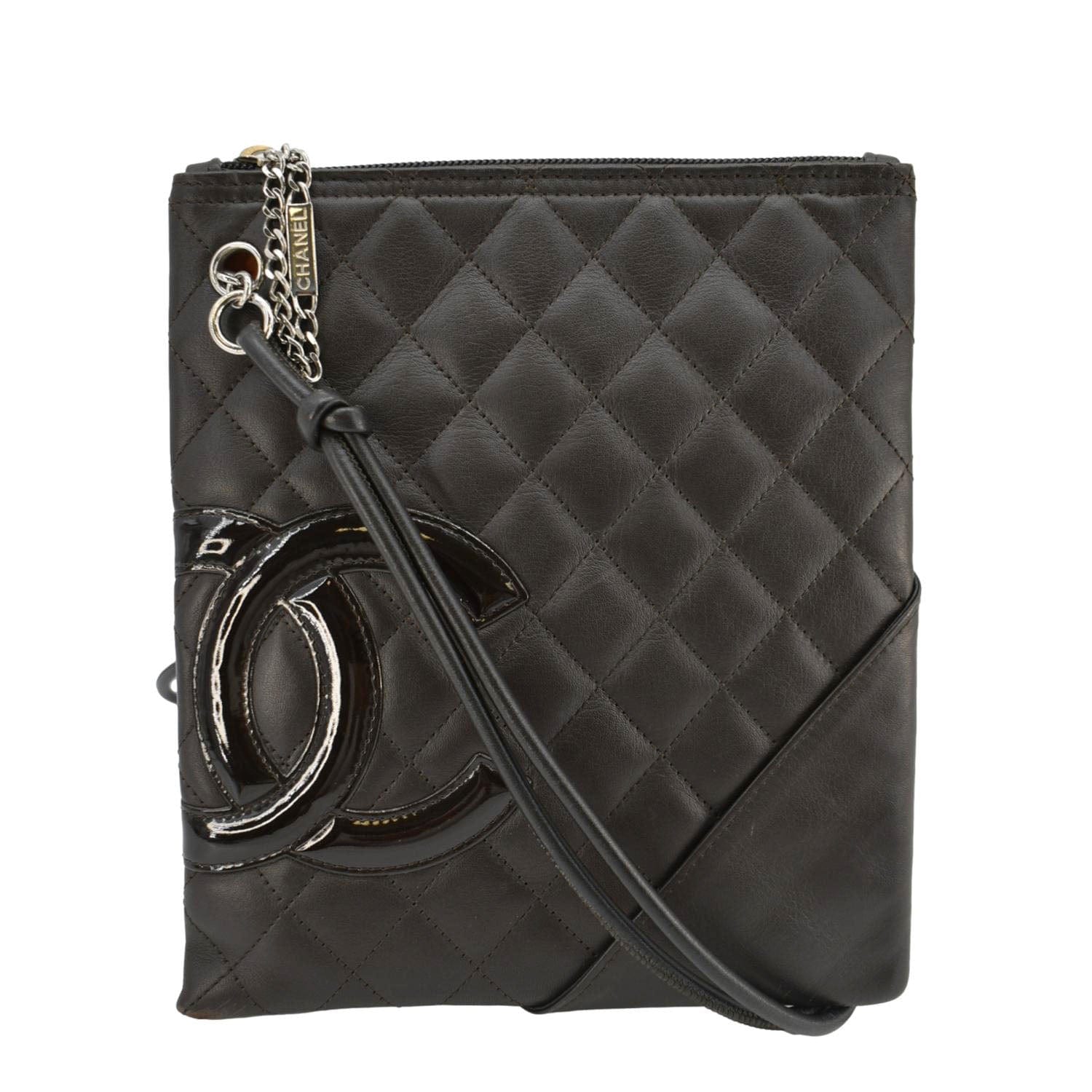 CHANEL Cambon Flat Calfskin Leather Messenger Bag Black