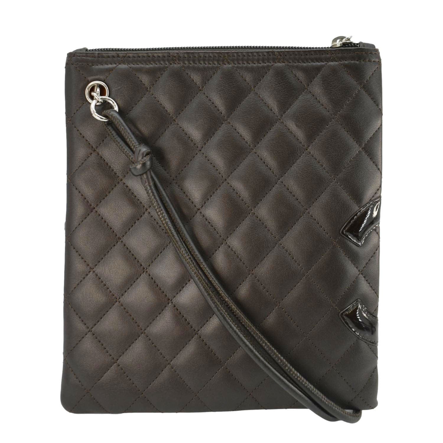 Cambon Flat Calfskin Leather Messenger Bag Black
