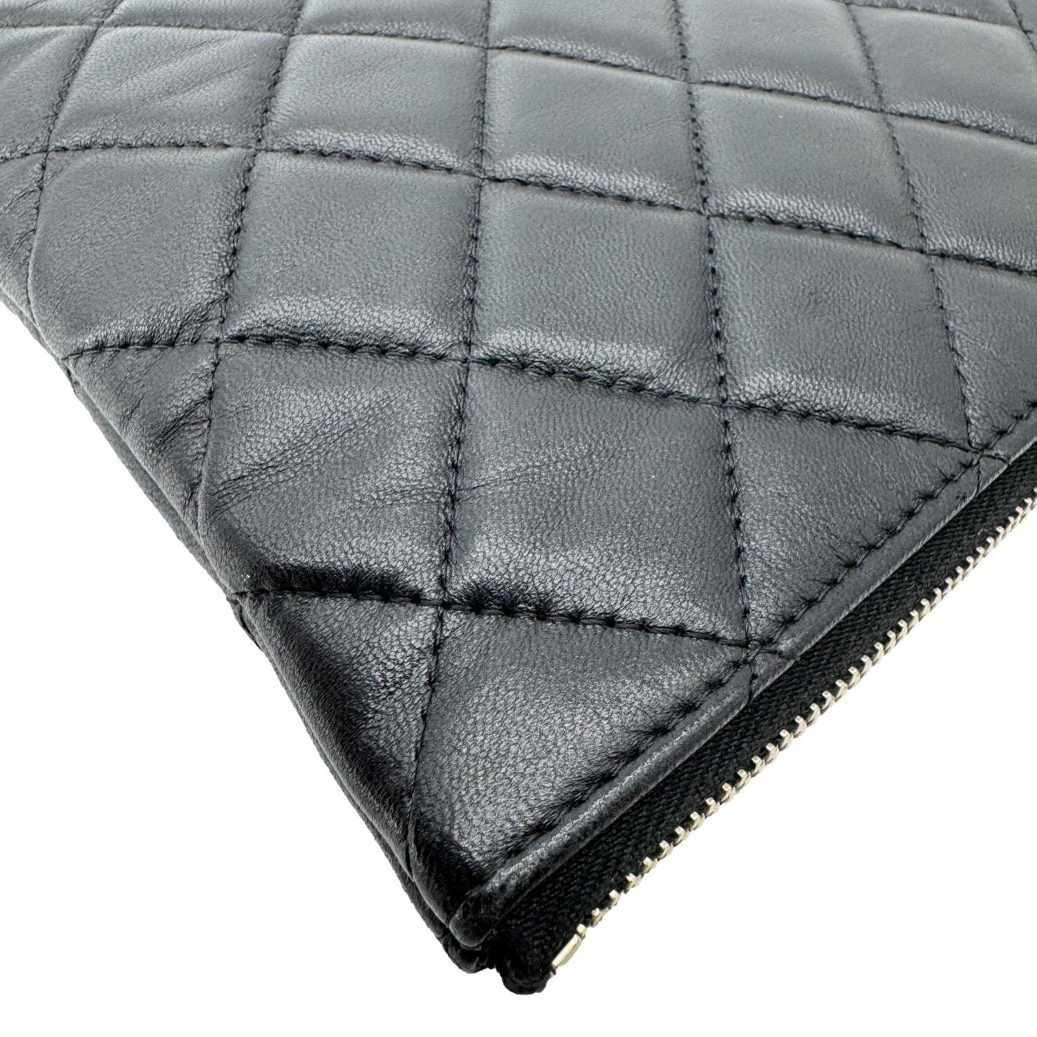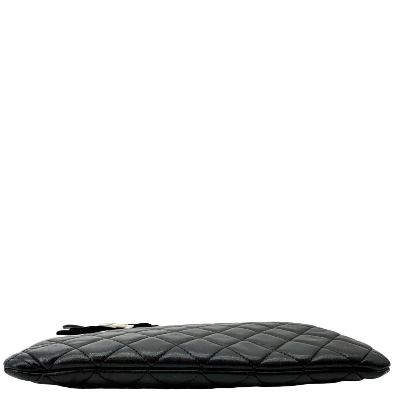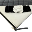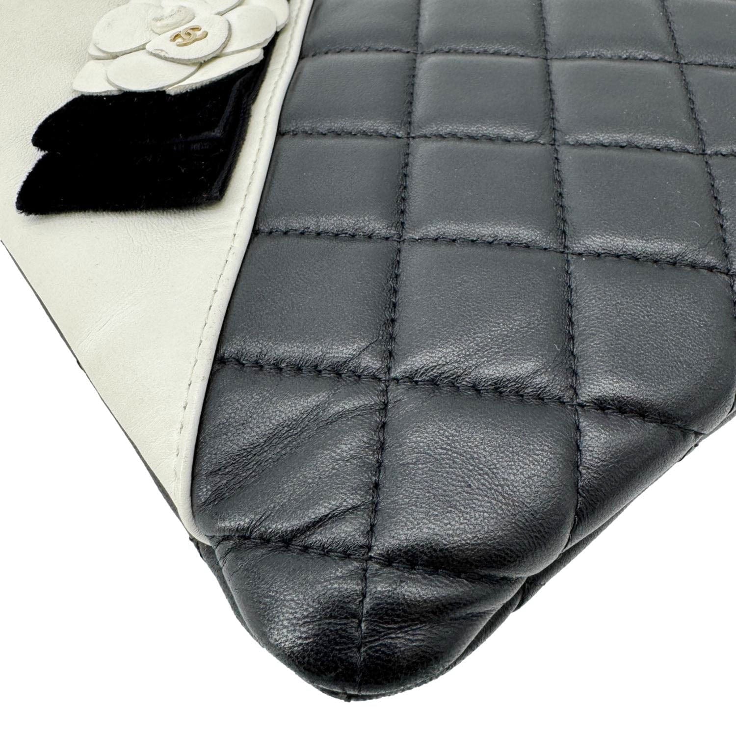 CHANEL Camellia O Case Medium Quilted Leather Clutch Black