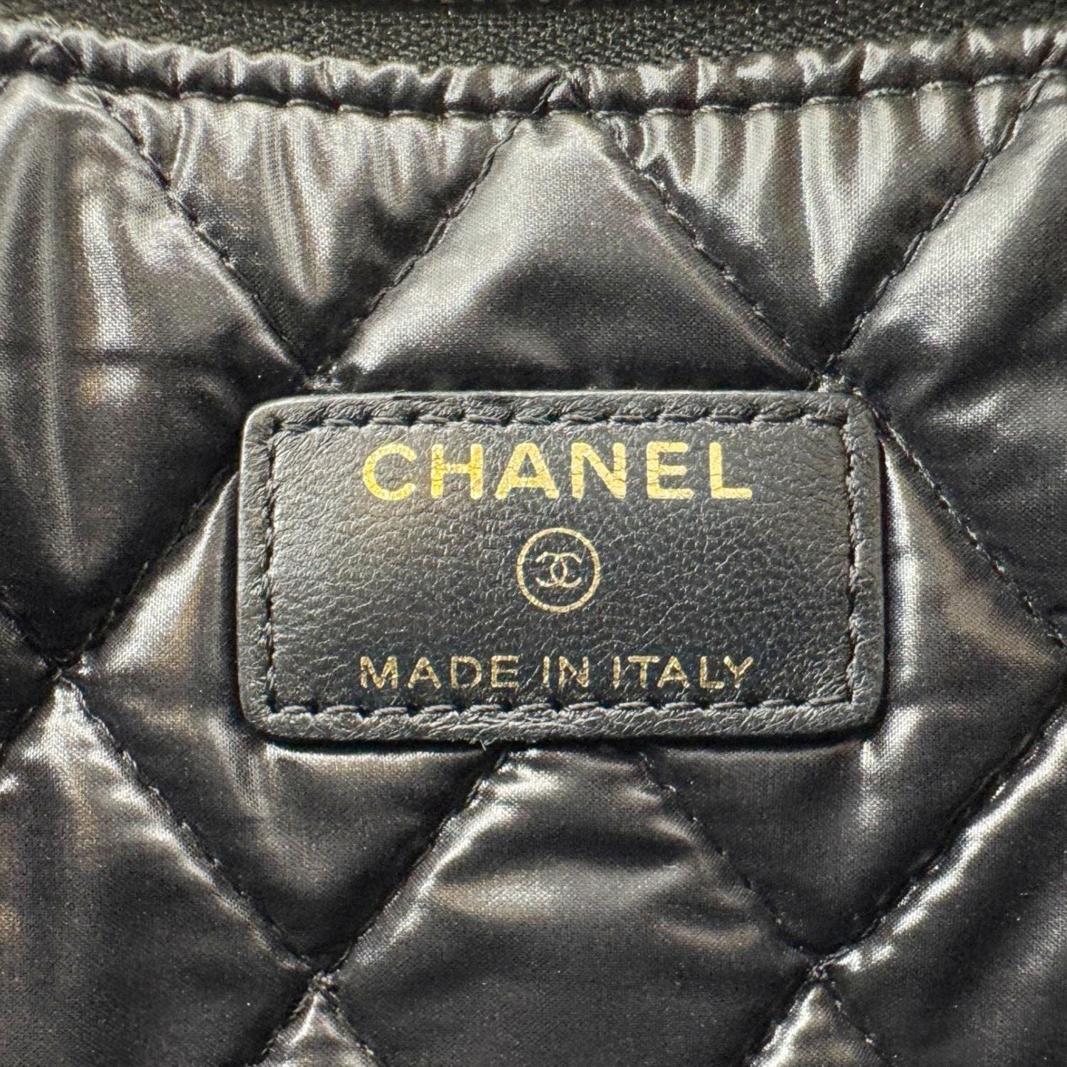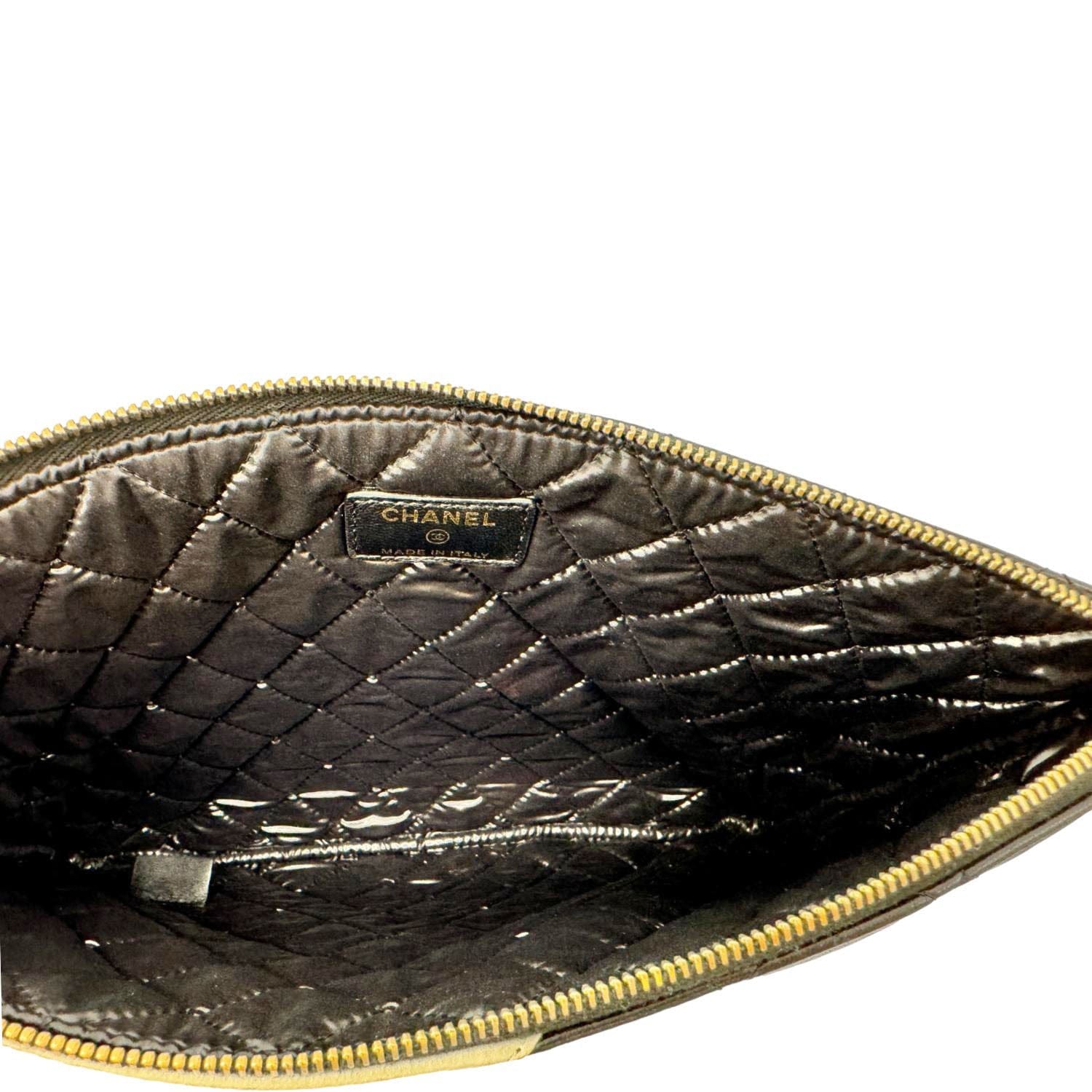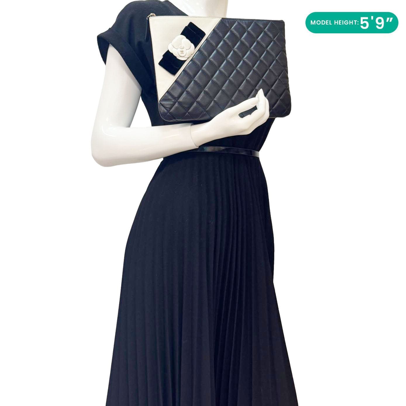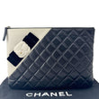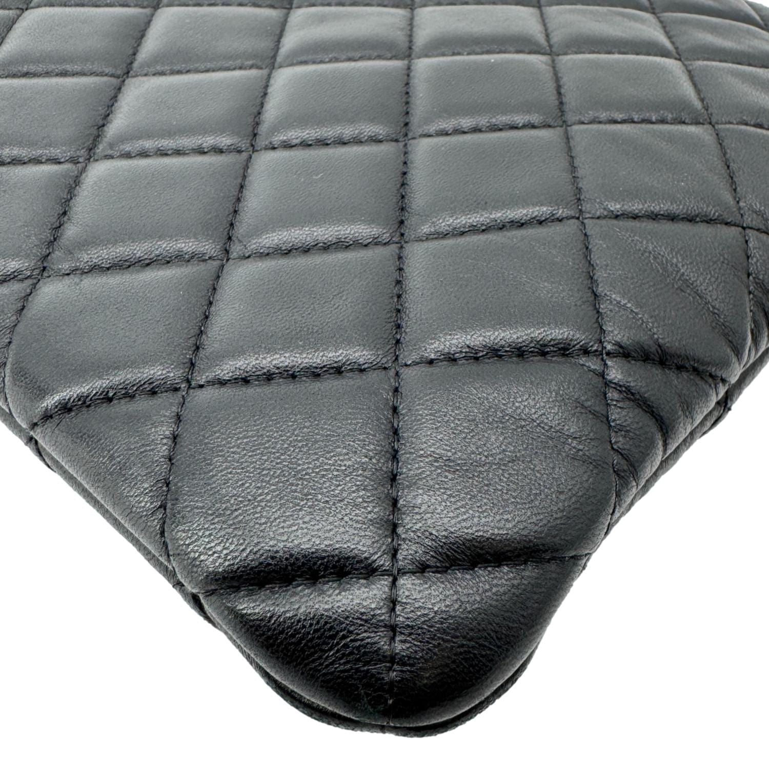 CHANEL Camellia O Case Medium Quilted Leather Clutch Black