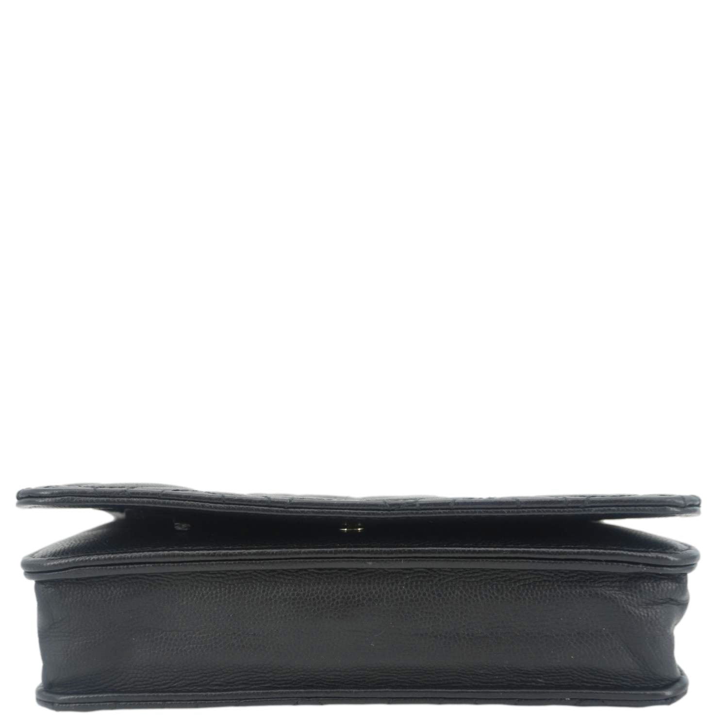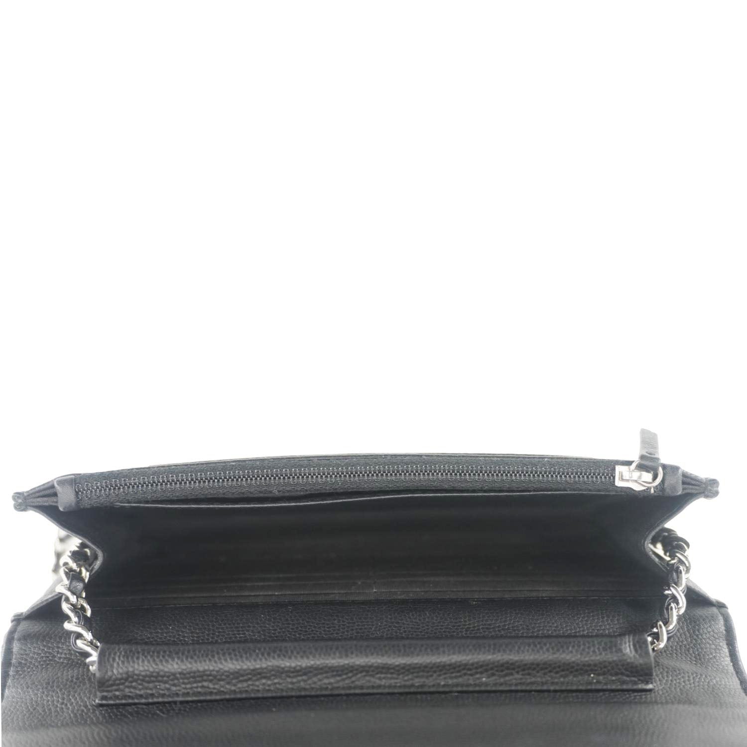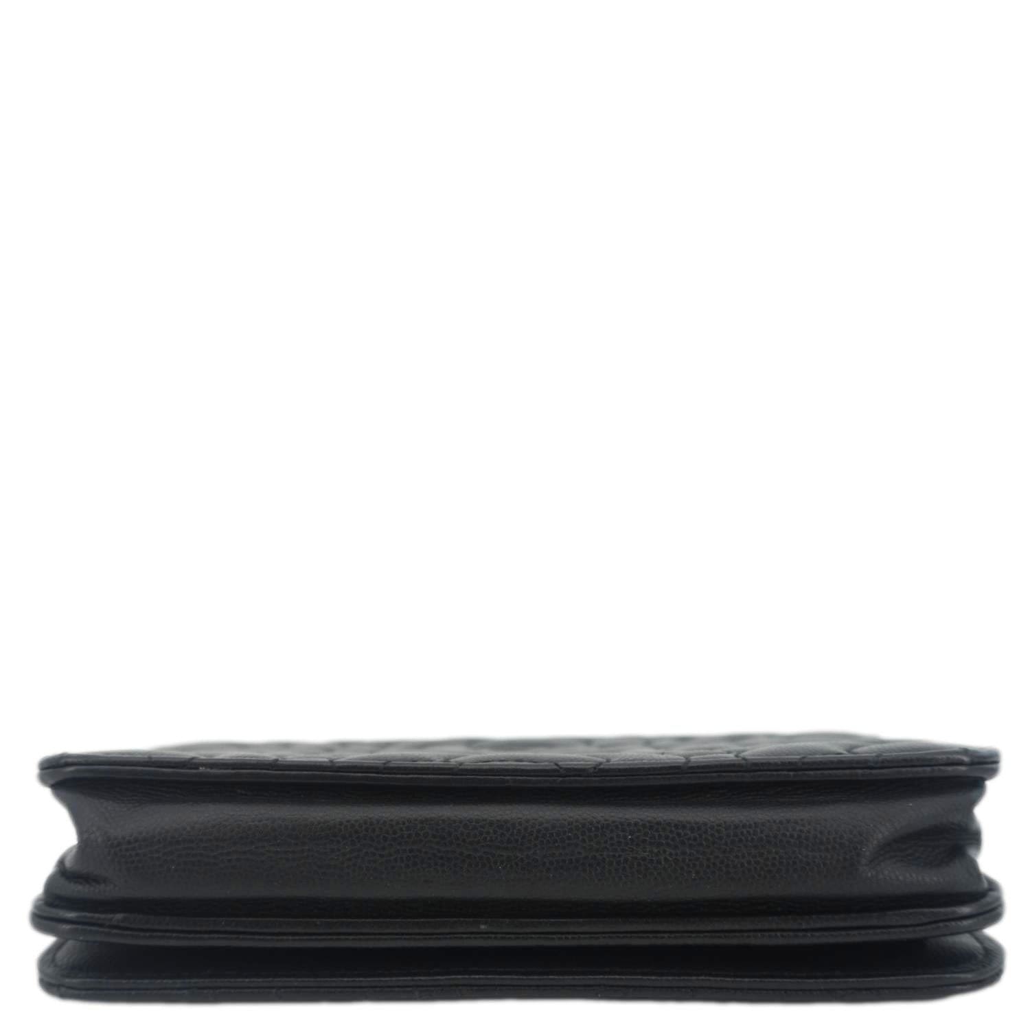 Camellia Caviar Leather Wallet on Chain Shoulder Bag Black