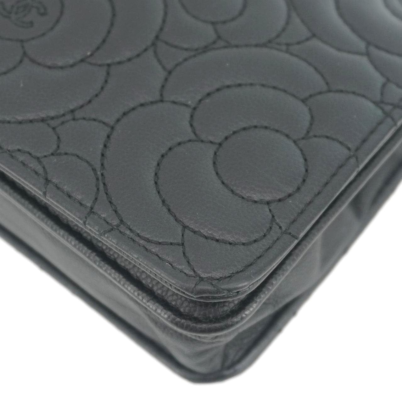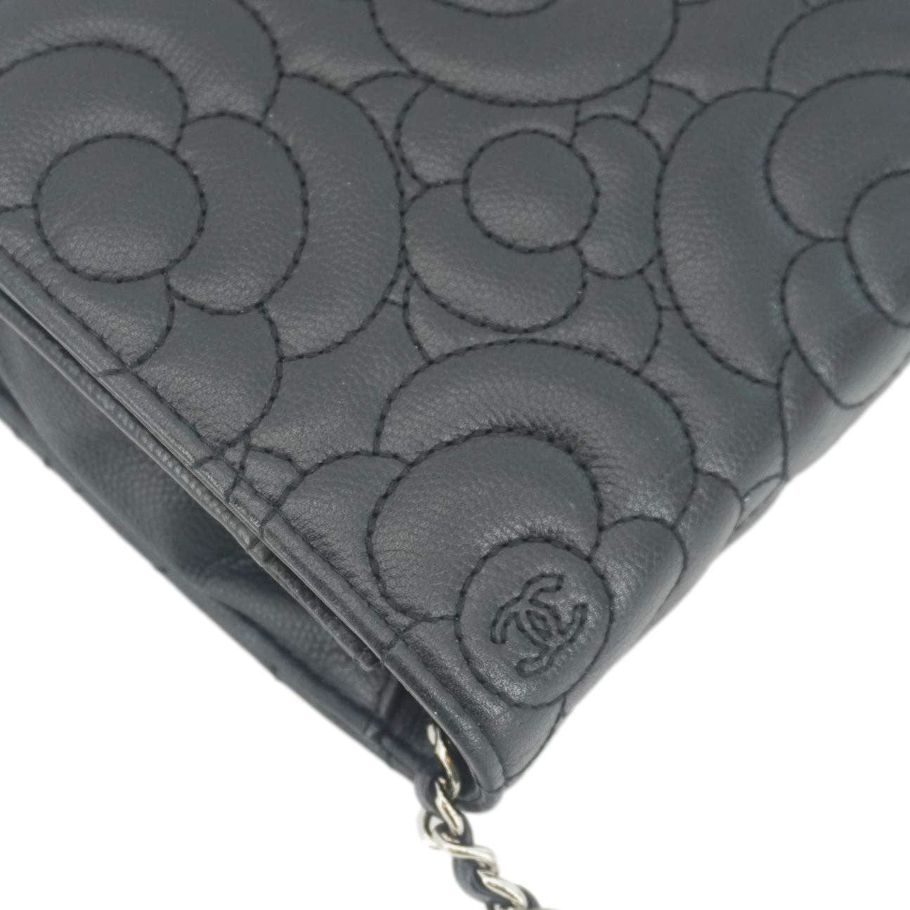 CHANEL Camellia Caviar Leather Wallet on Chain Shoulder Bag Black