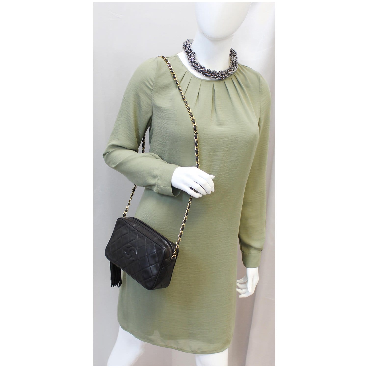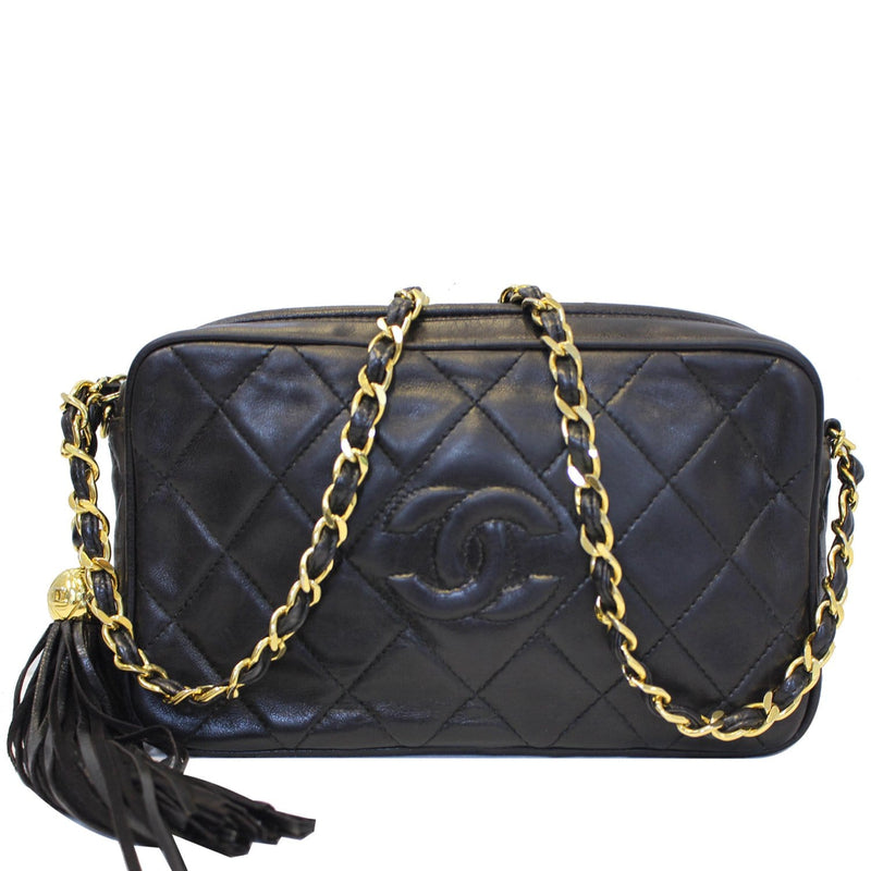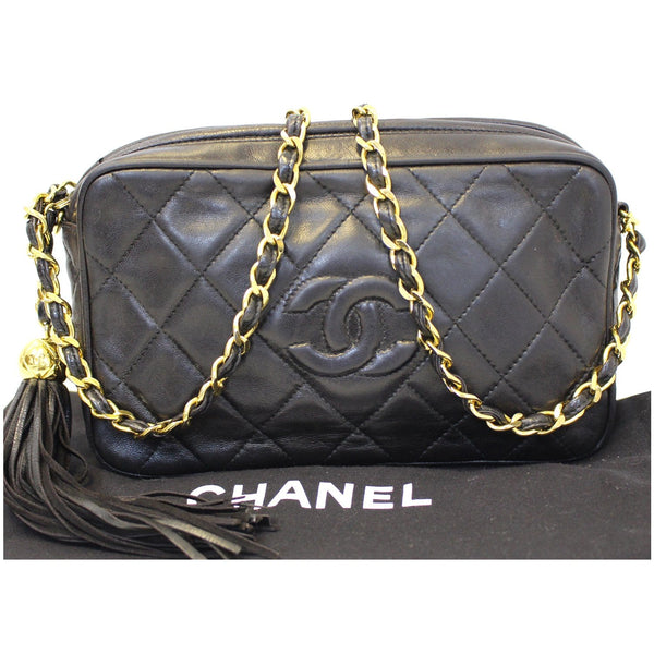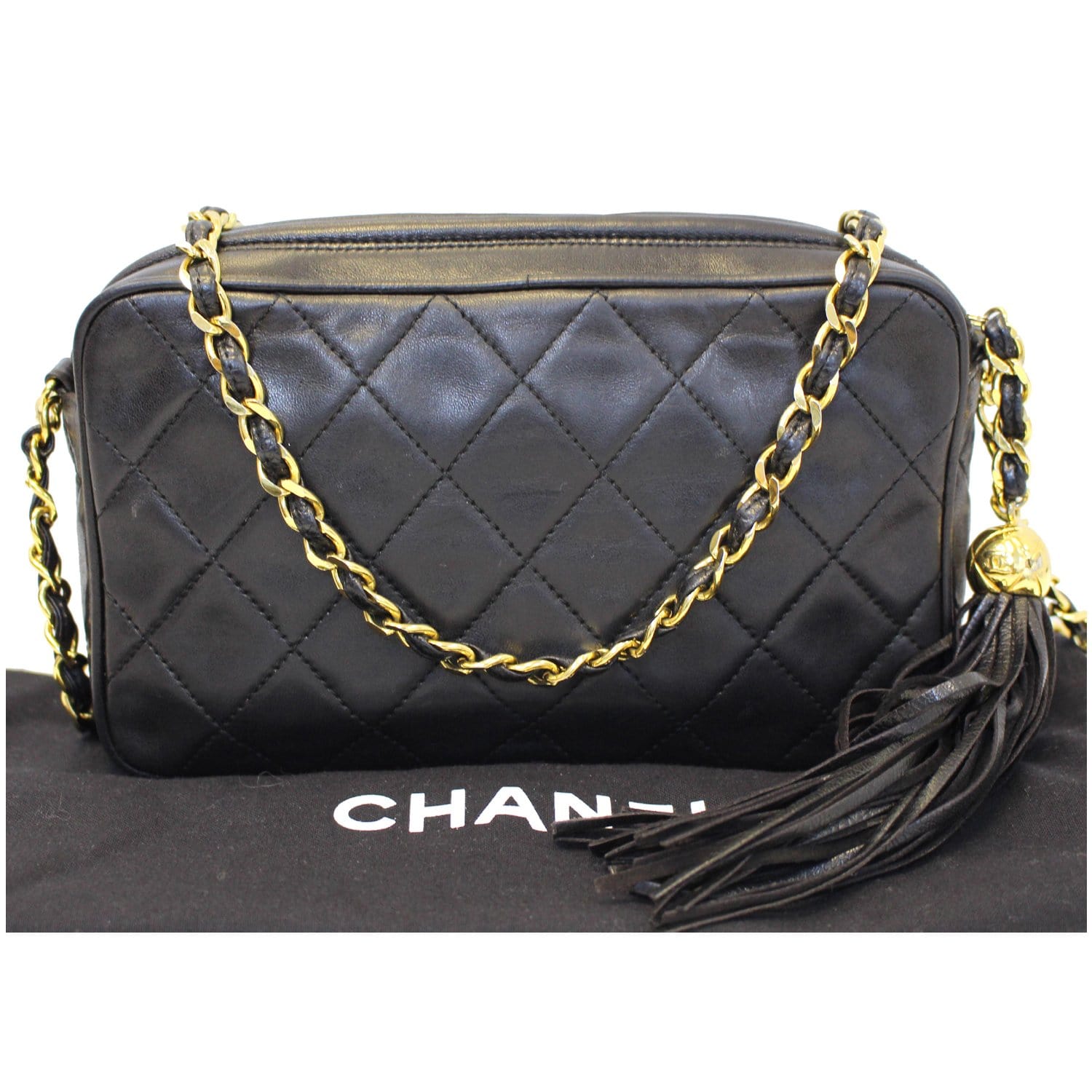 CHANEL Camera Tassel Lambskin Leather Shoulder Bag Black