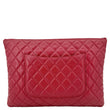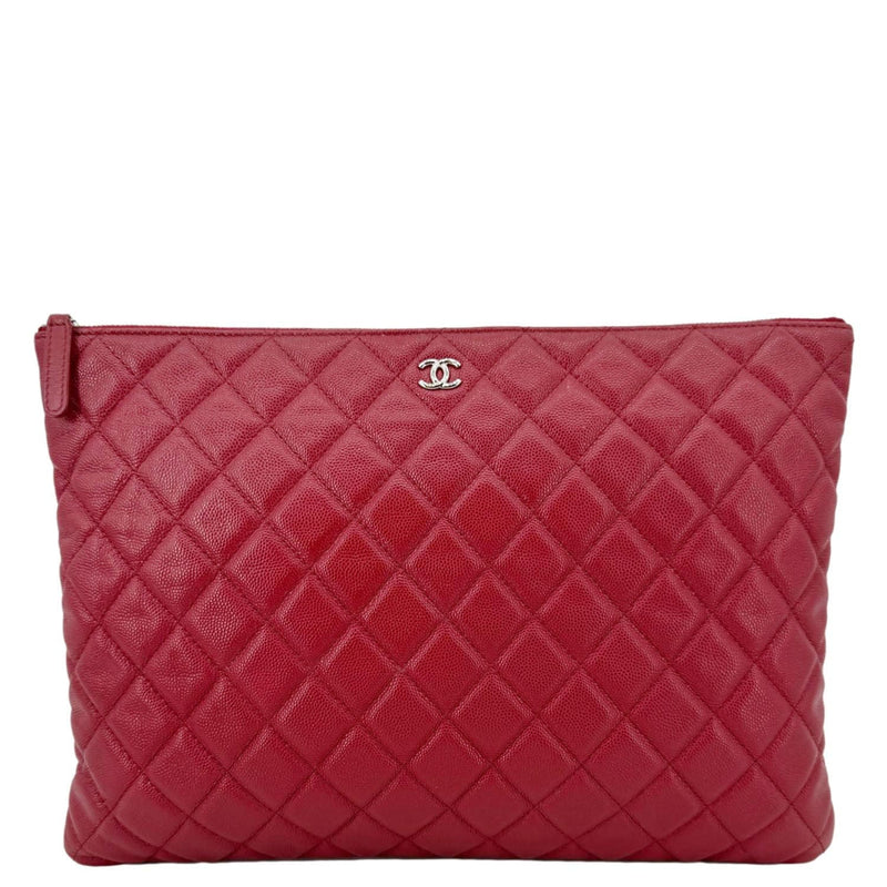 CHANEL Quilted Caviar O Clutch Cosmetic Case Red