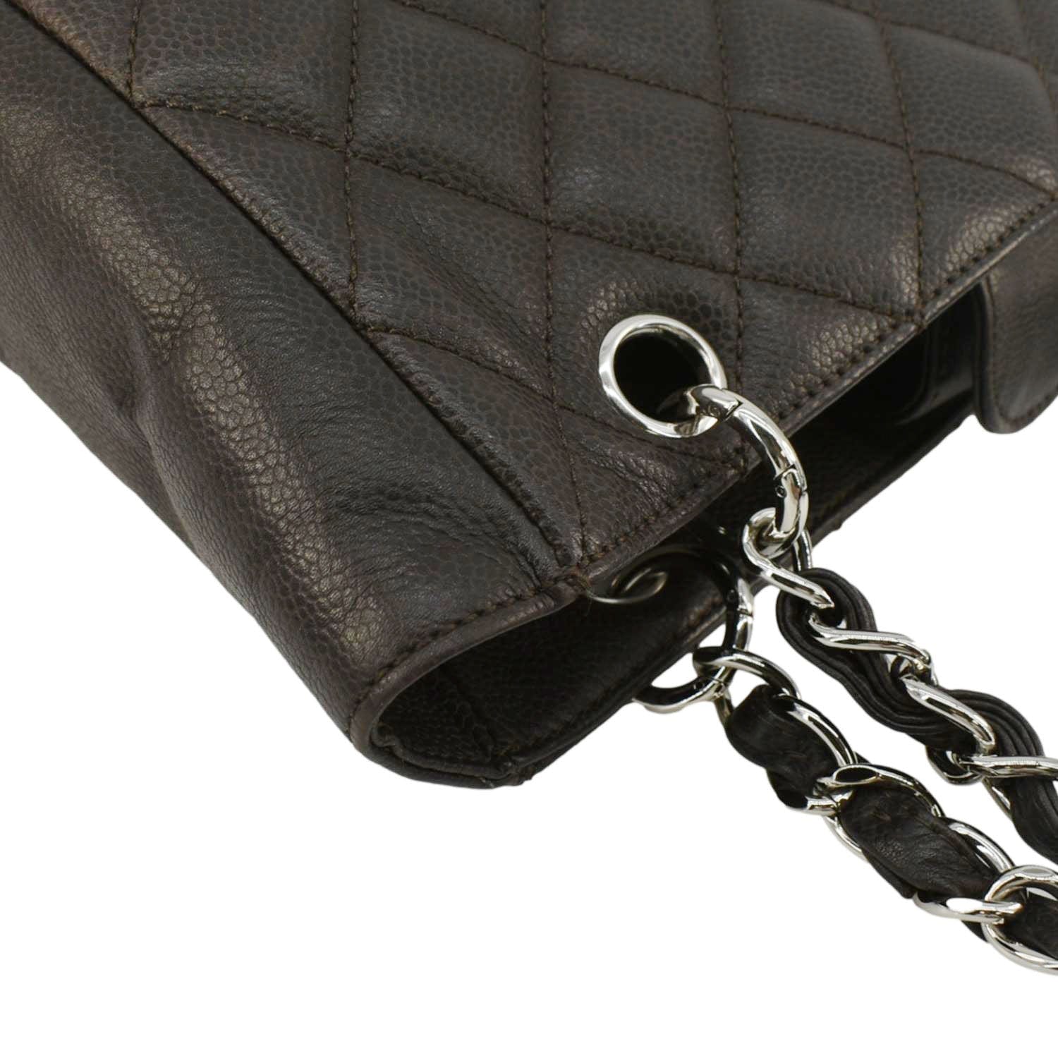 CHANEL Petite Quilted Caviar Leather Shopping Tote Shoulder Bag Dark Brown