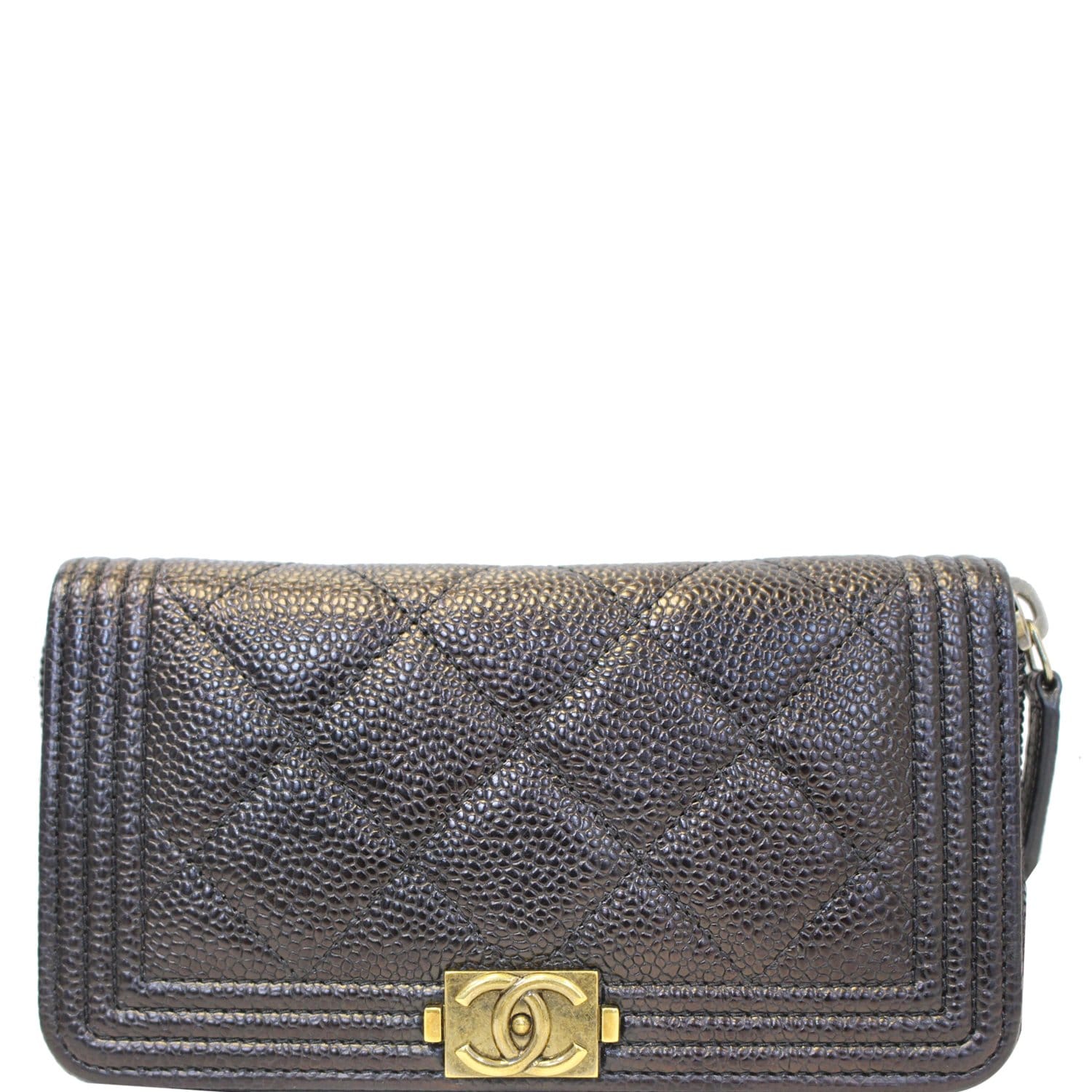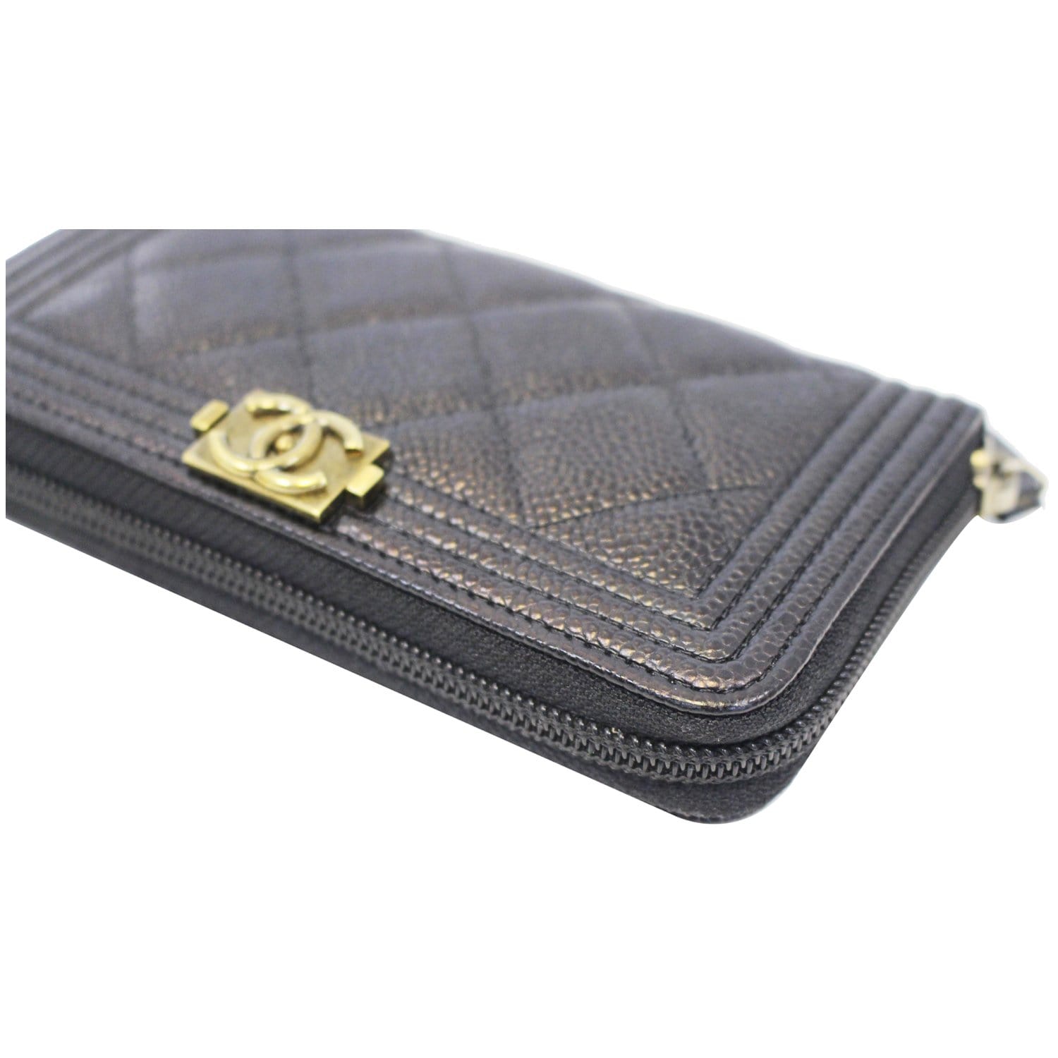 CHANEL Boy Small Caviar Leather Zip Around Wallet Black