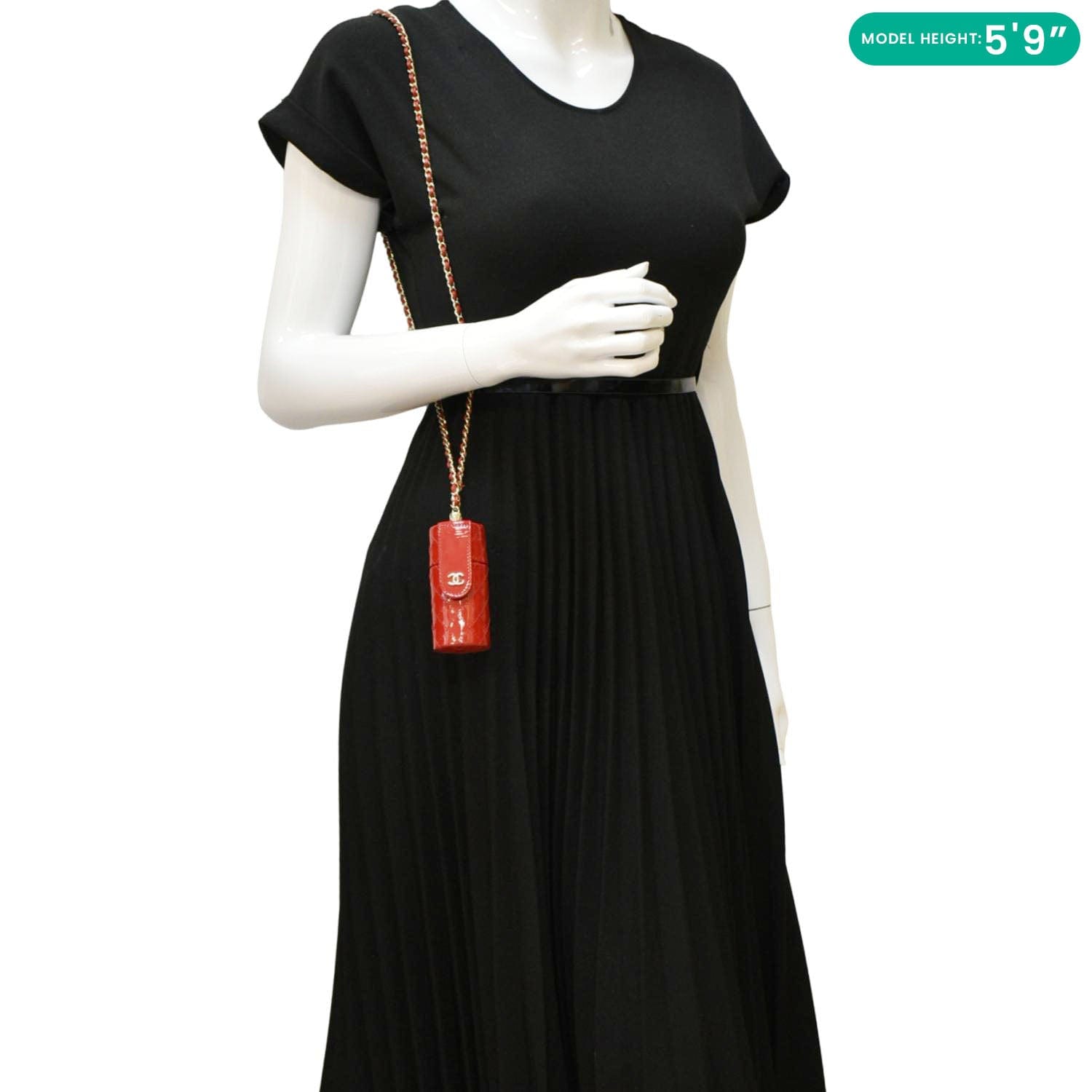 CHANEL CC Allure Patent Leather Chain Lipstick Case Red
