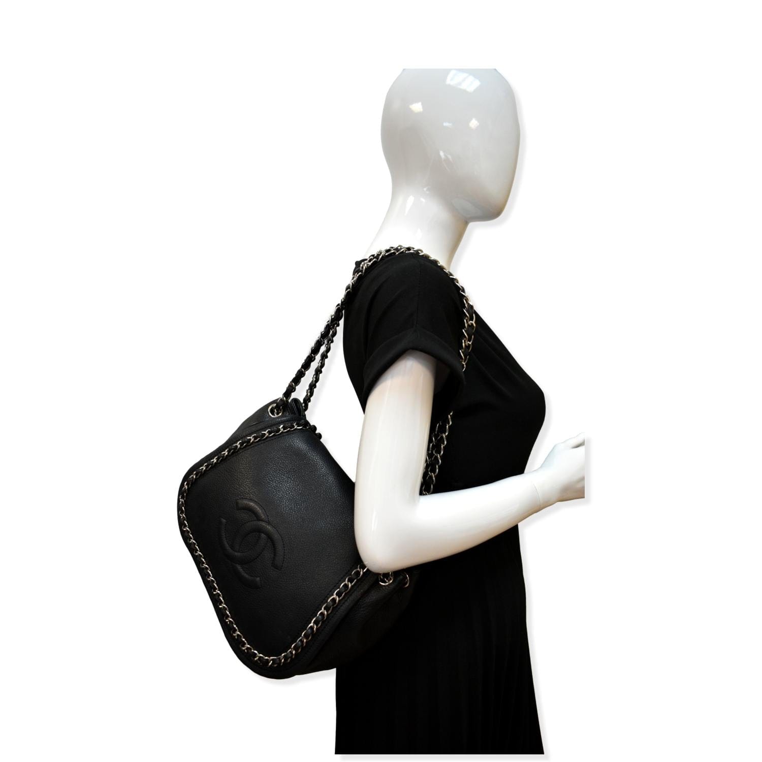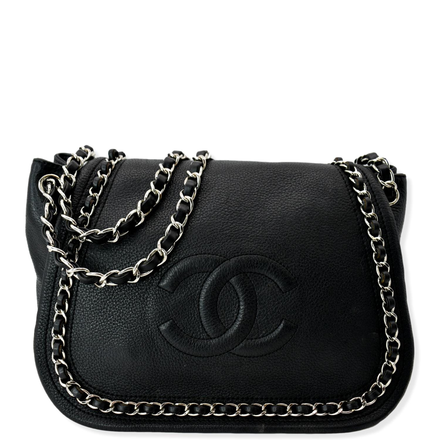 CHANEL CC Chain Around Flap Pebbled Calfskin Shoulder Bag Black