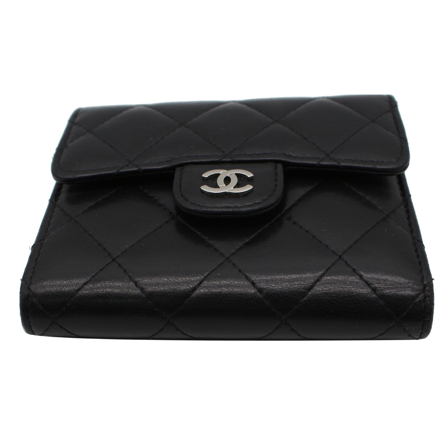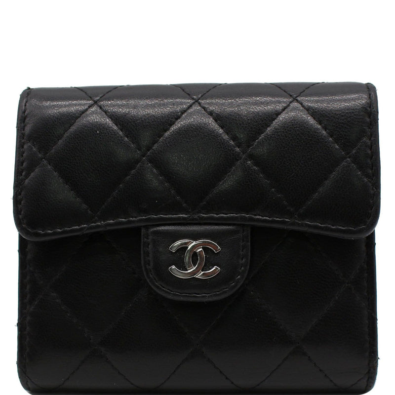 CHANEL CC Classic Small Flap Leather Compact Wallet Black