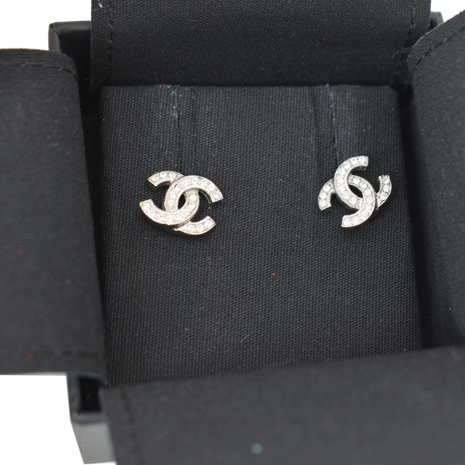 CHANEL CC Crystal Earrings Silver