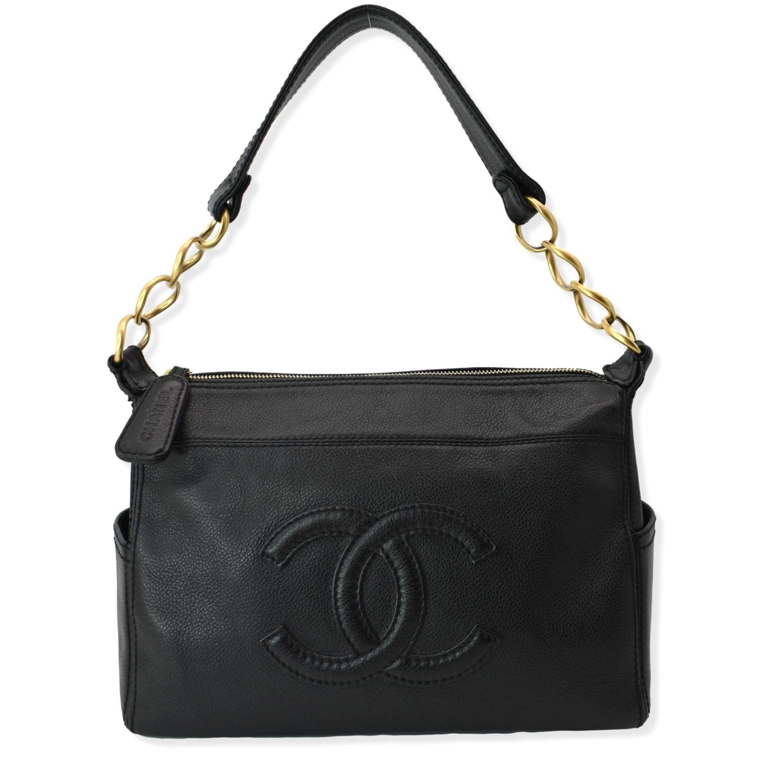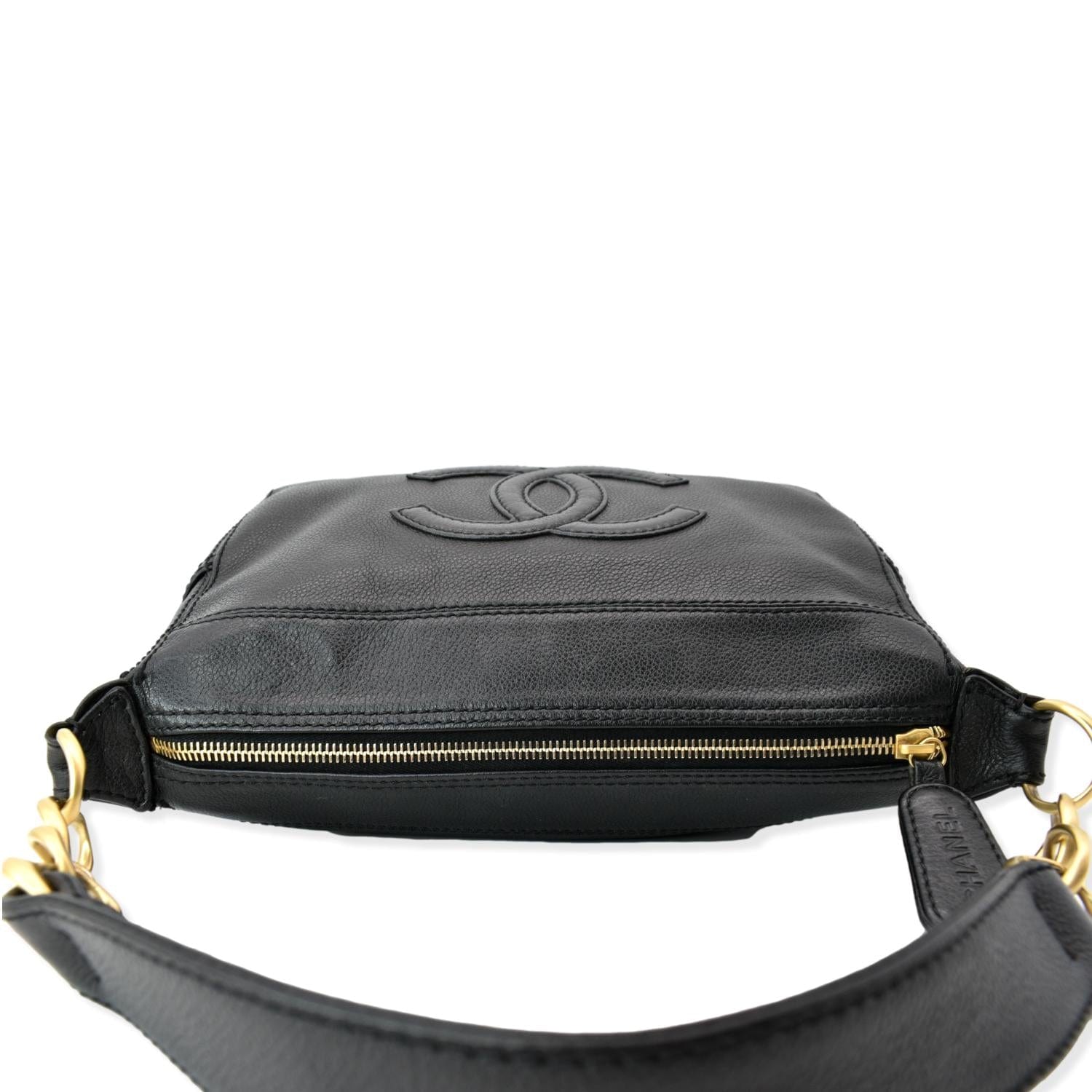 CHANEL CC Calfskin Leather Ring Chain Satchel Bag Black