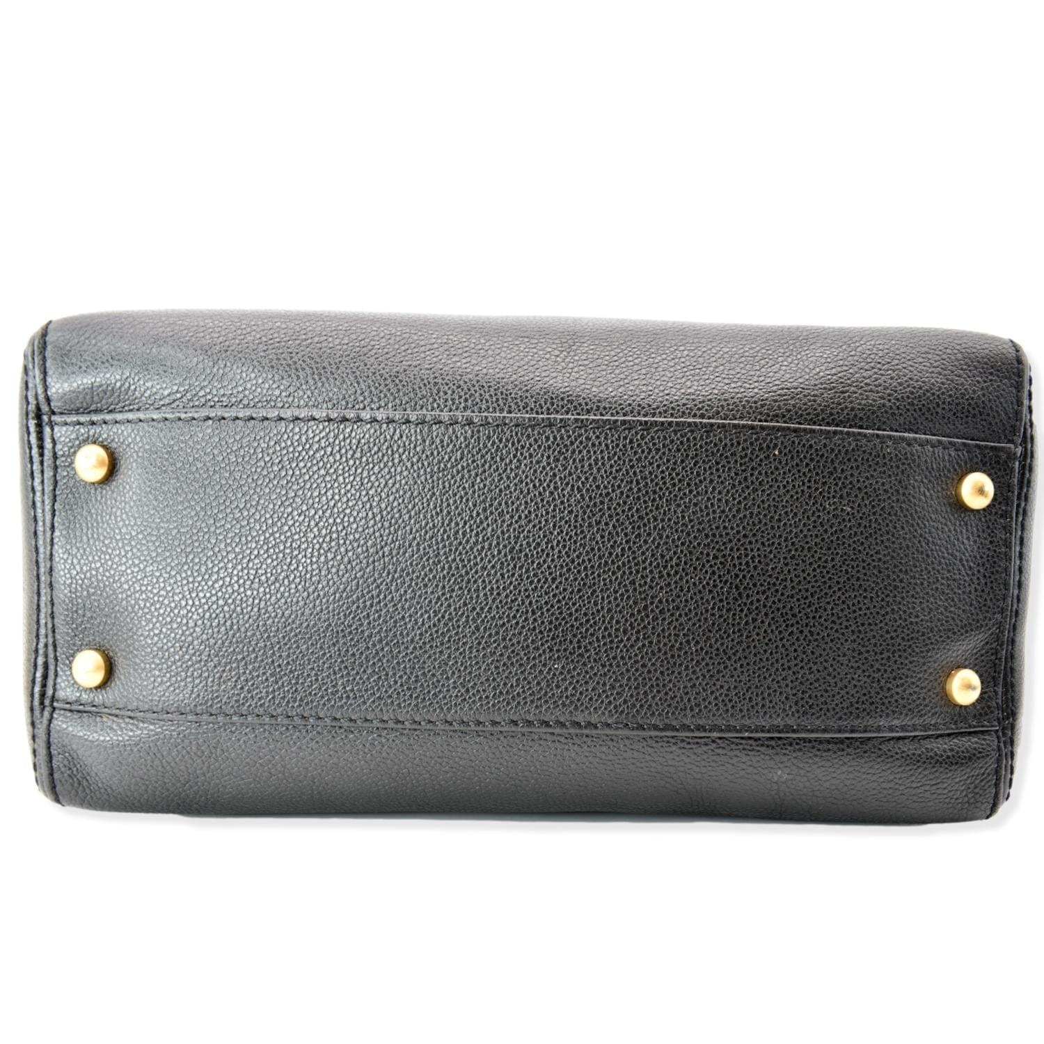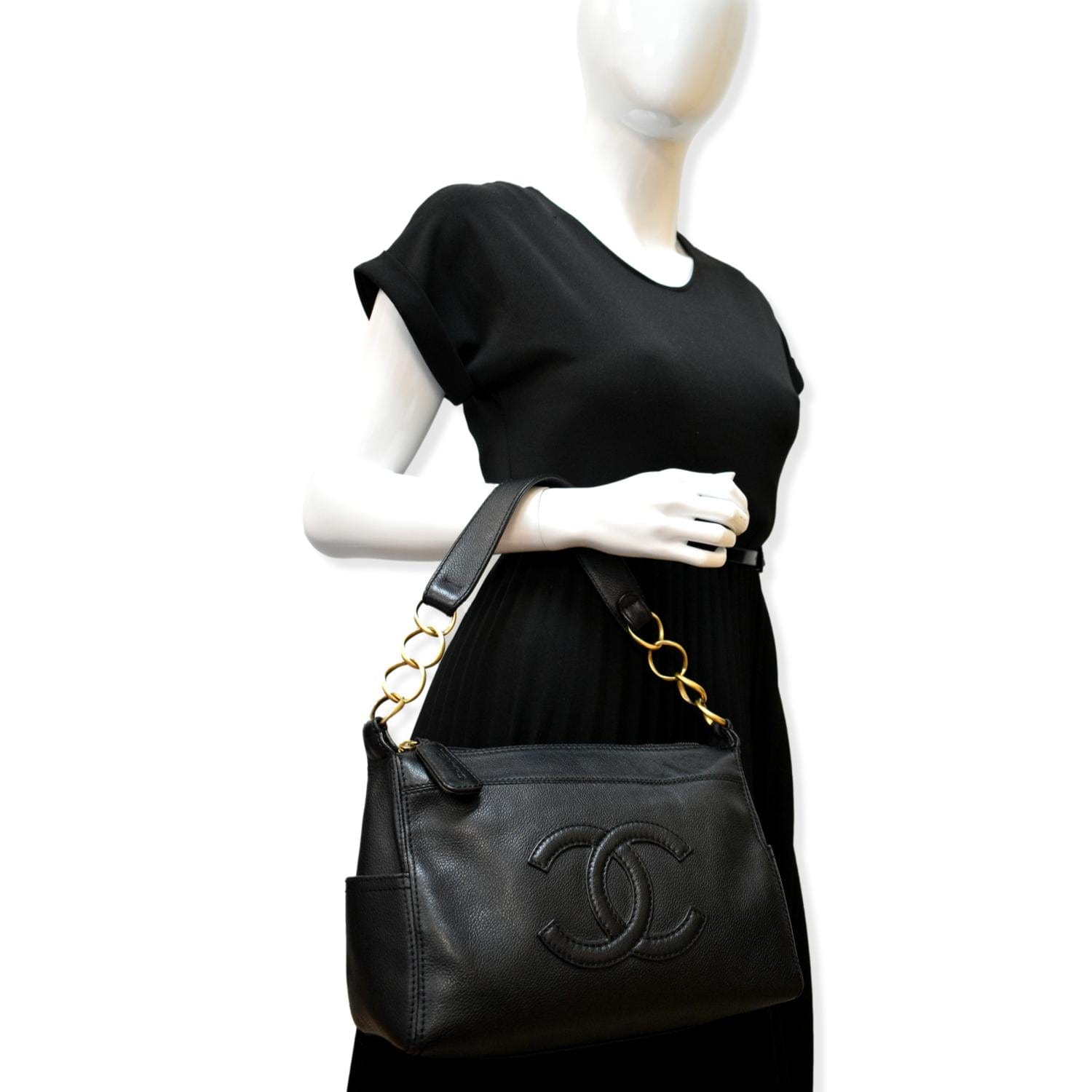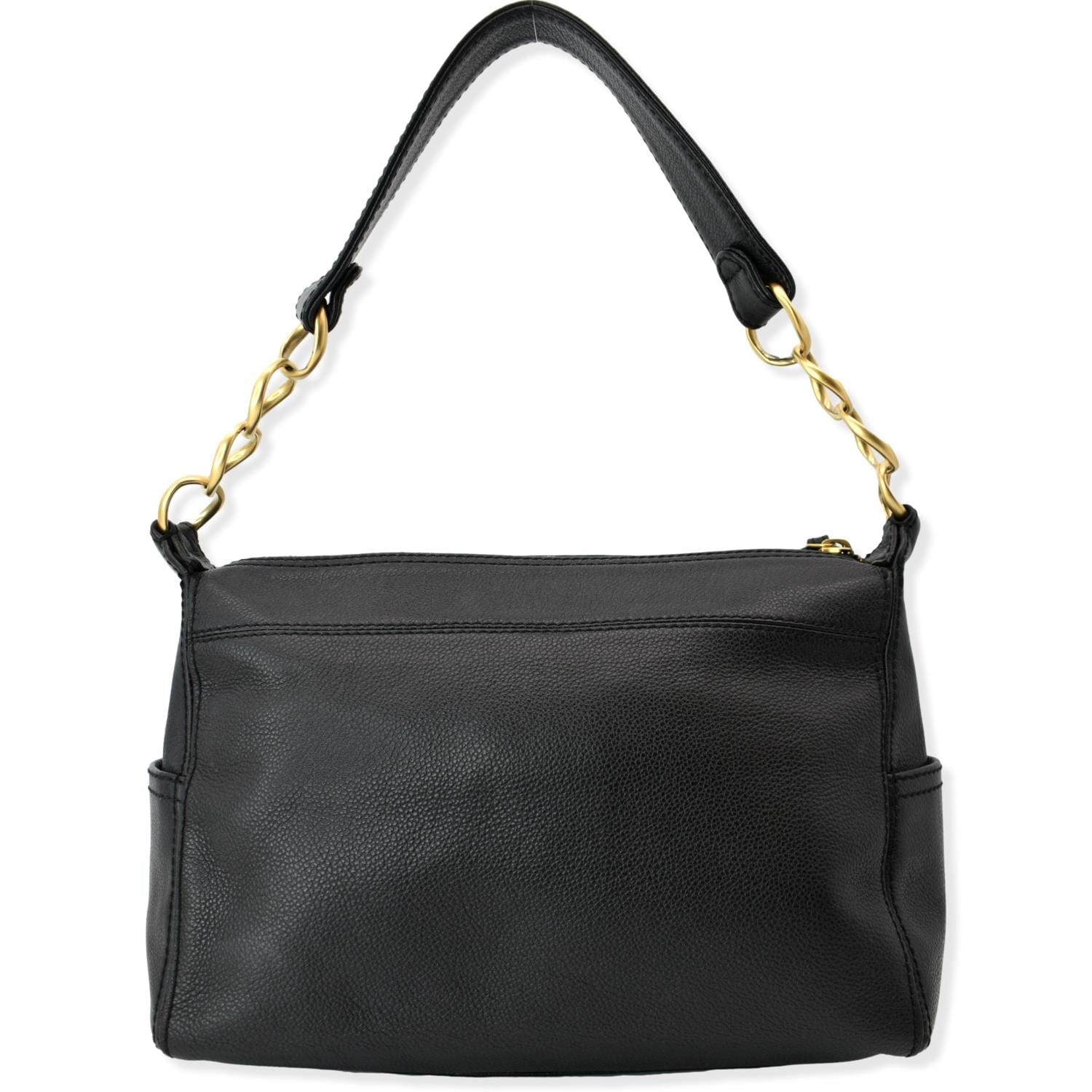 CC Calfskin Leather Ring Chain Satchel Bag Black