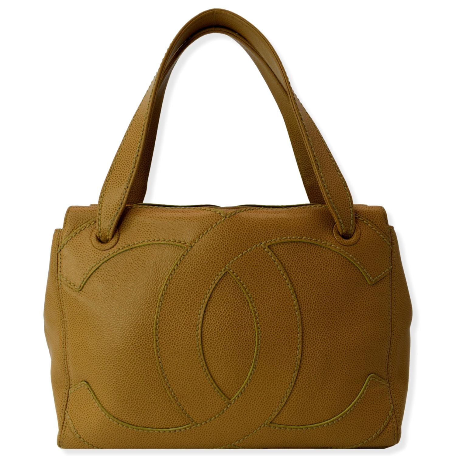 CHANEL CC Wild Stitch Caviar Leather Satchel Bag Tan