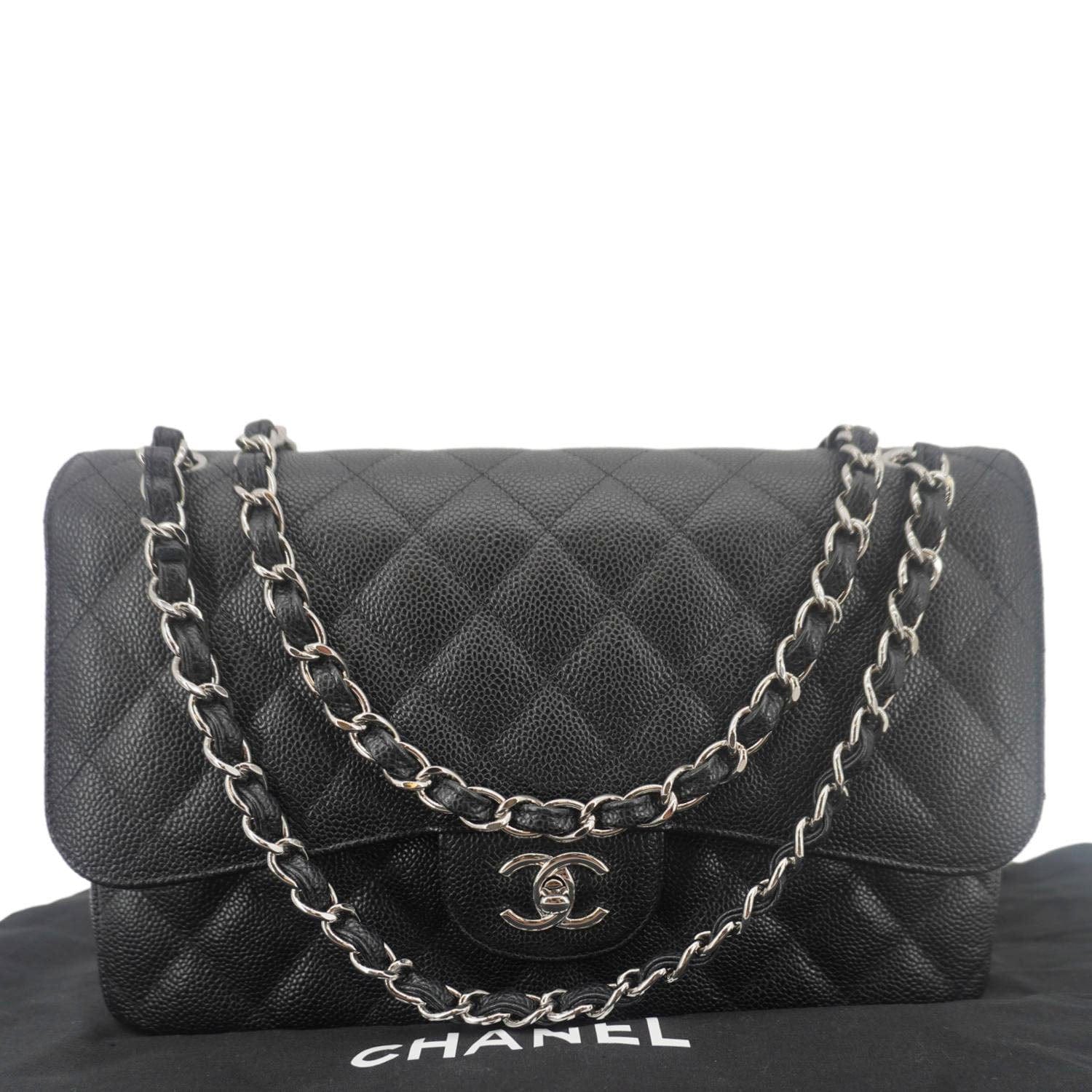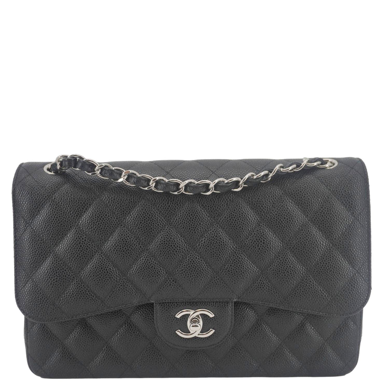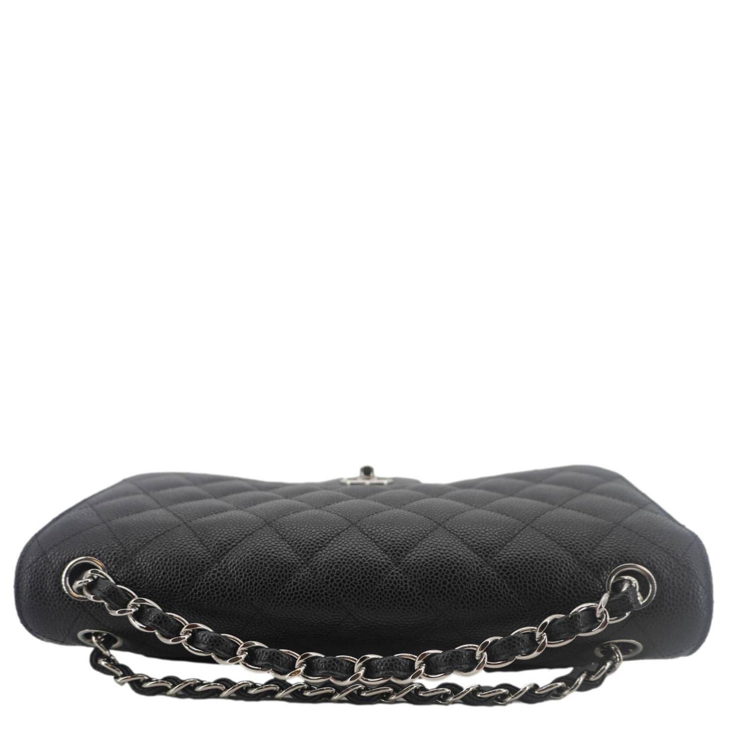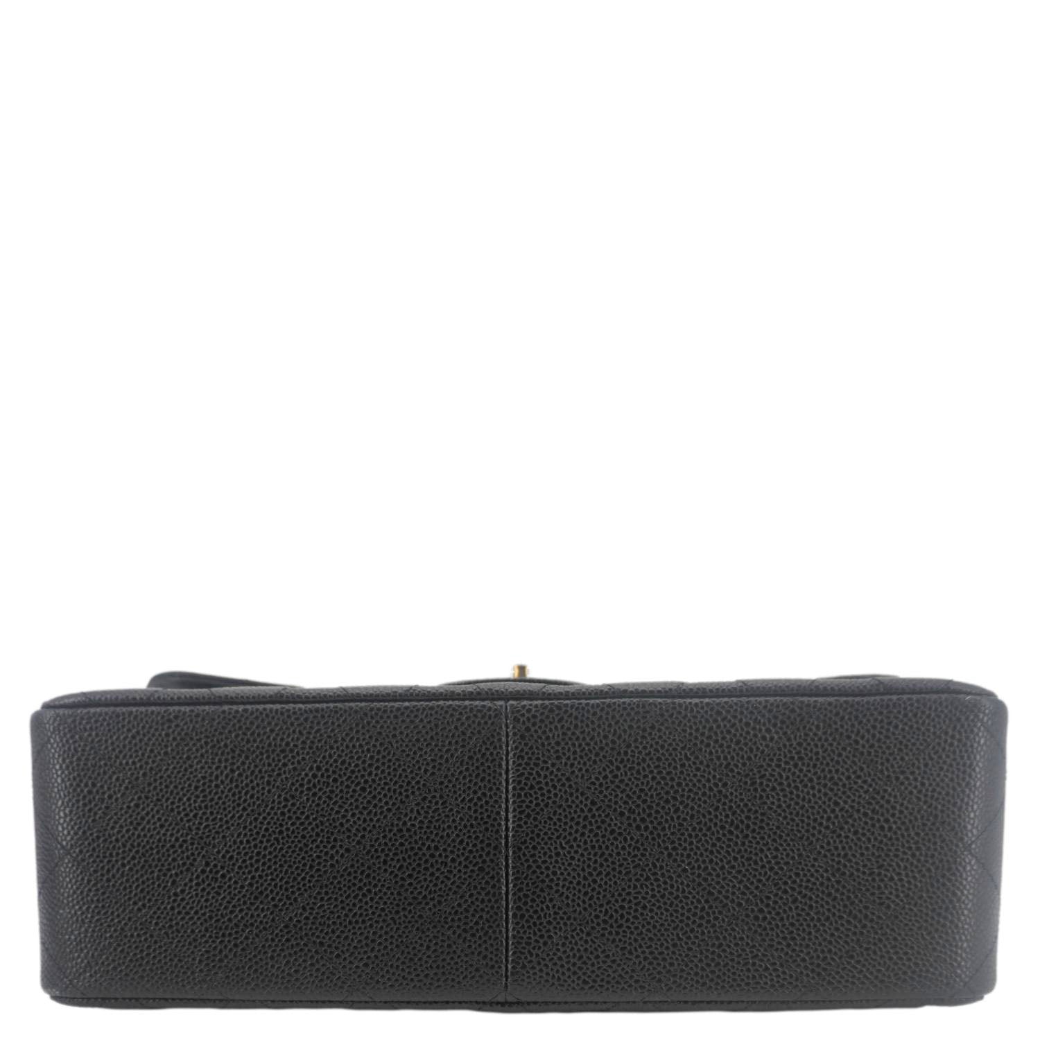 CHANEL Classic Double Flap Jumbo Quilted Caviar Leather Crossbody Bag Black
