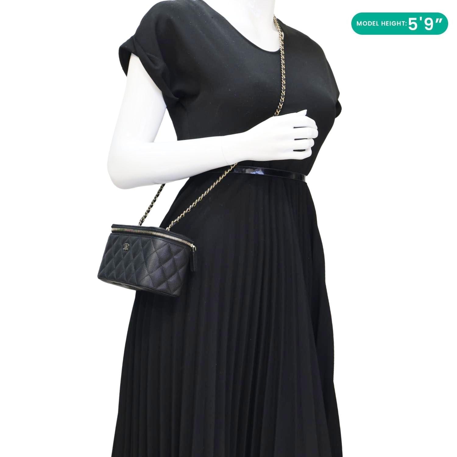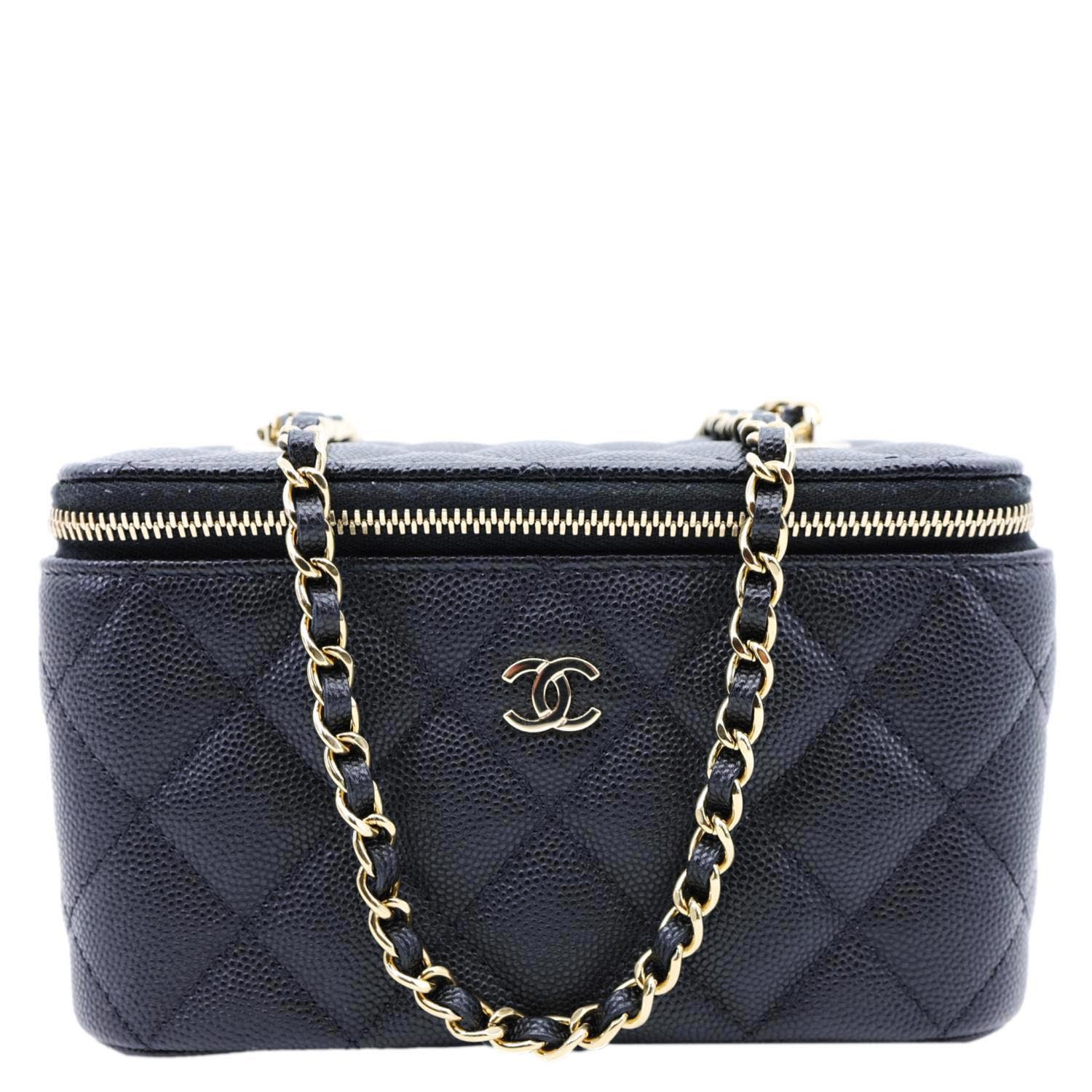 CHANEL Classic Small Quilted Caviar Leather Chain Vanity Case Black