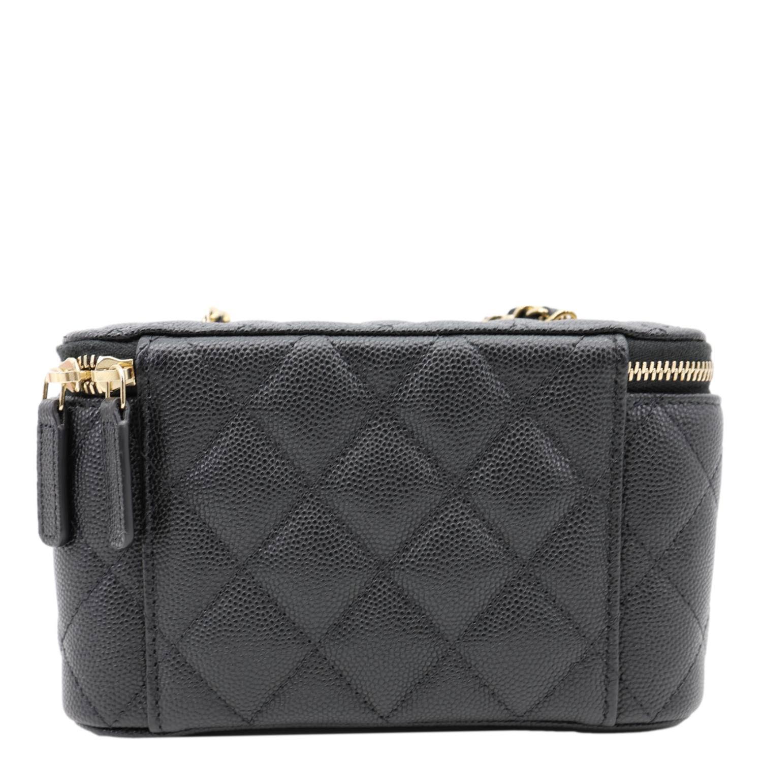 Classic Small Quilted Caviar Leather Chain Vanity Case Black