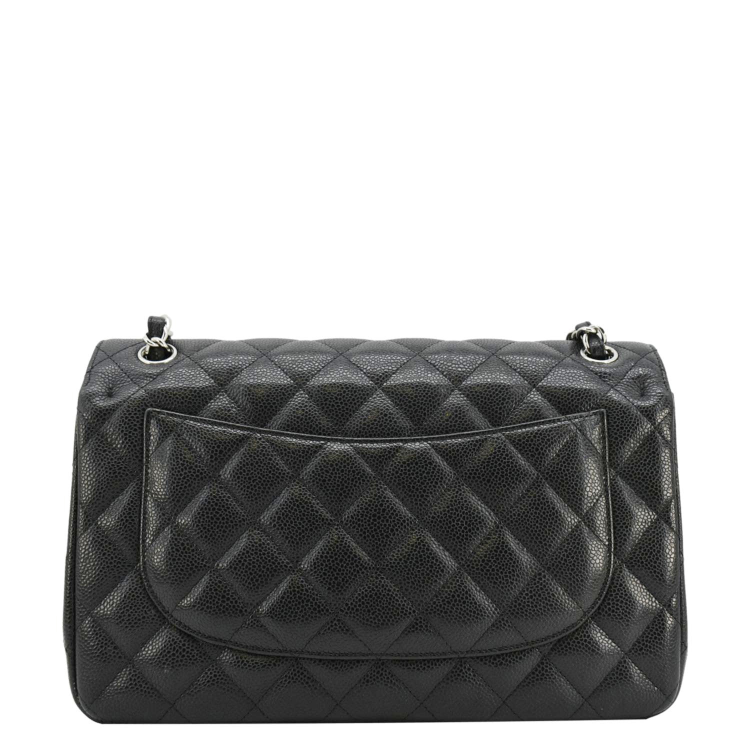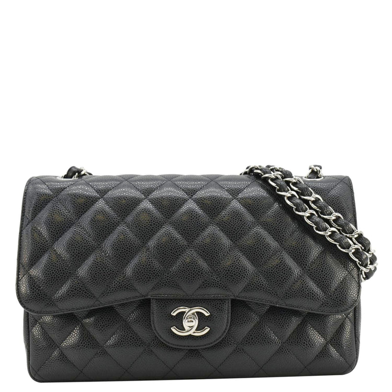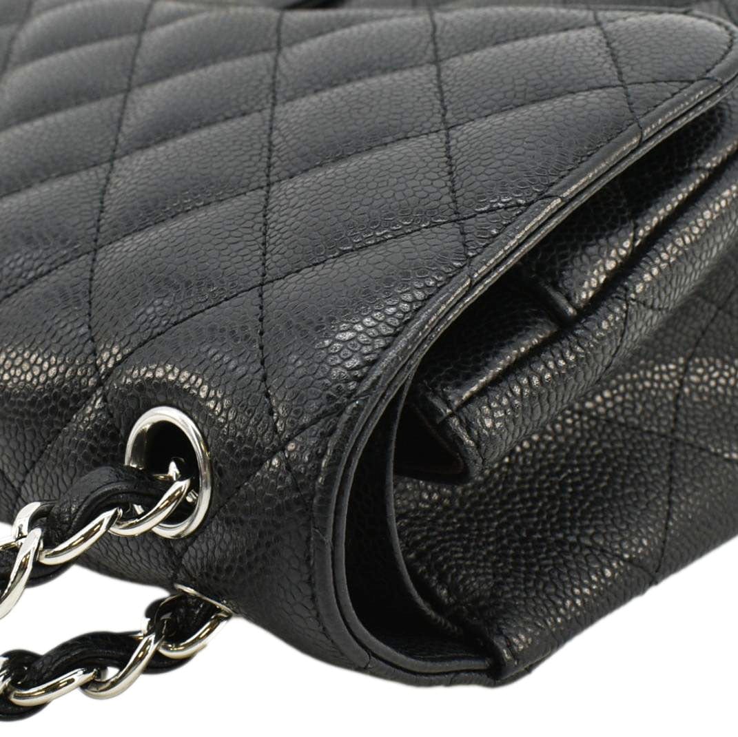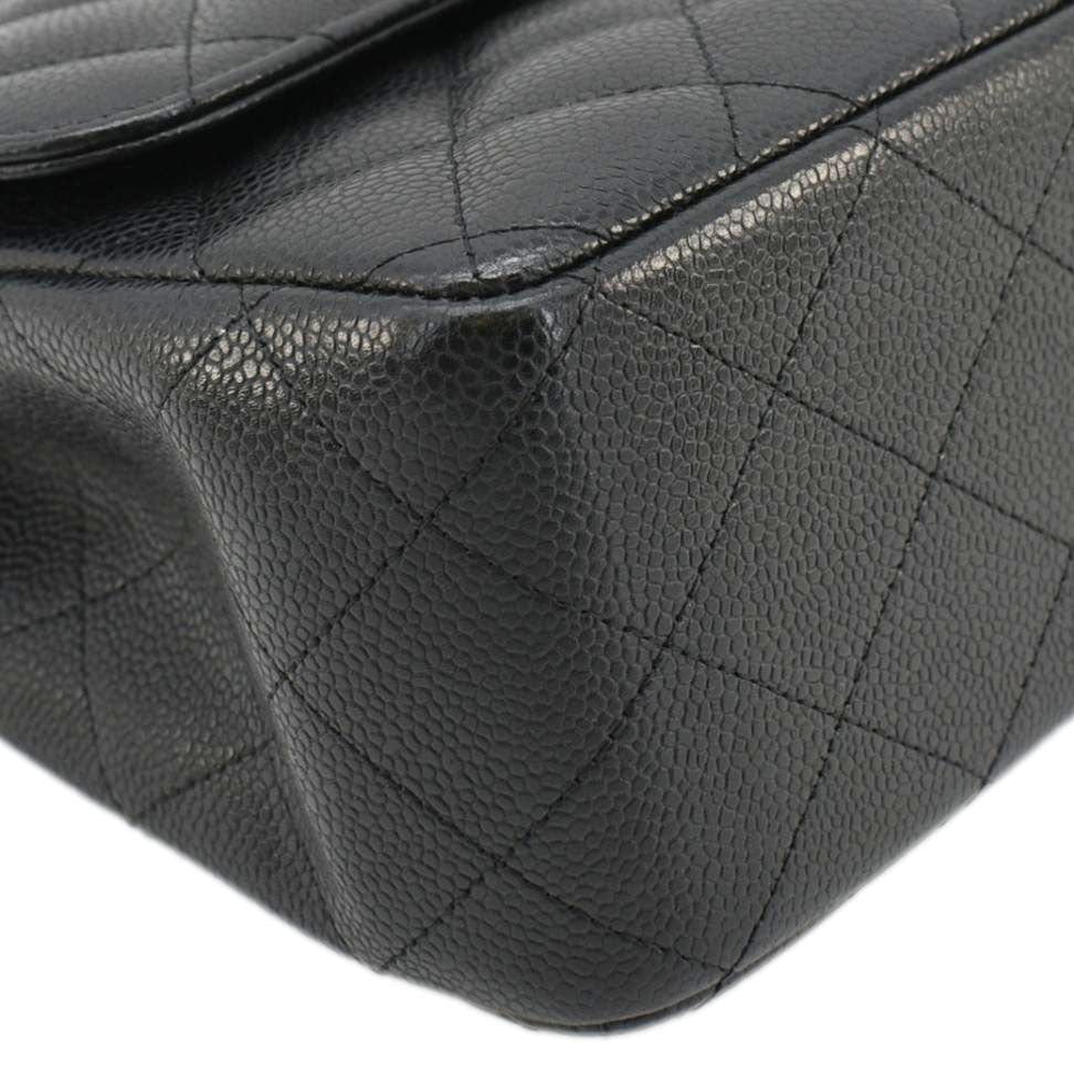 CHANEL Classic Jumbo Double Flap Quilted Caviar Leather Shoulder Bag Black