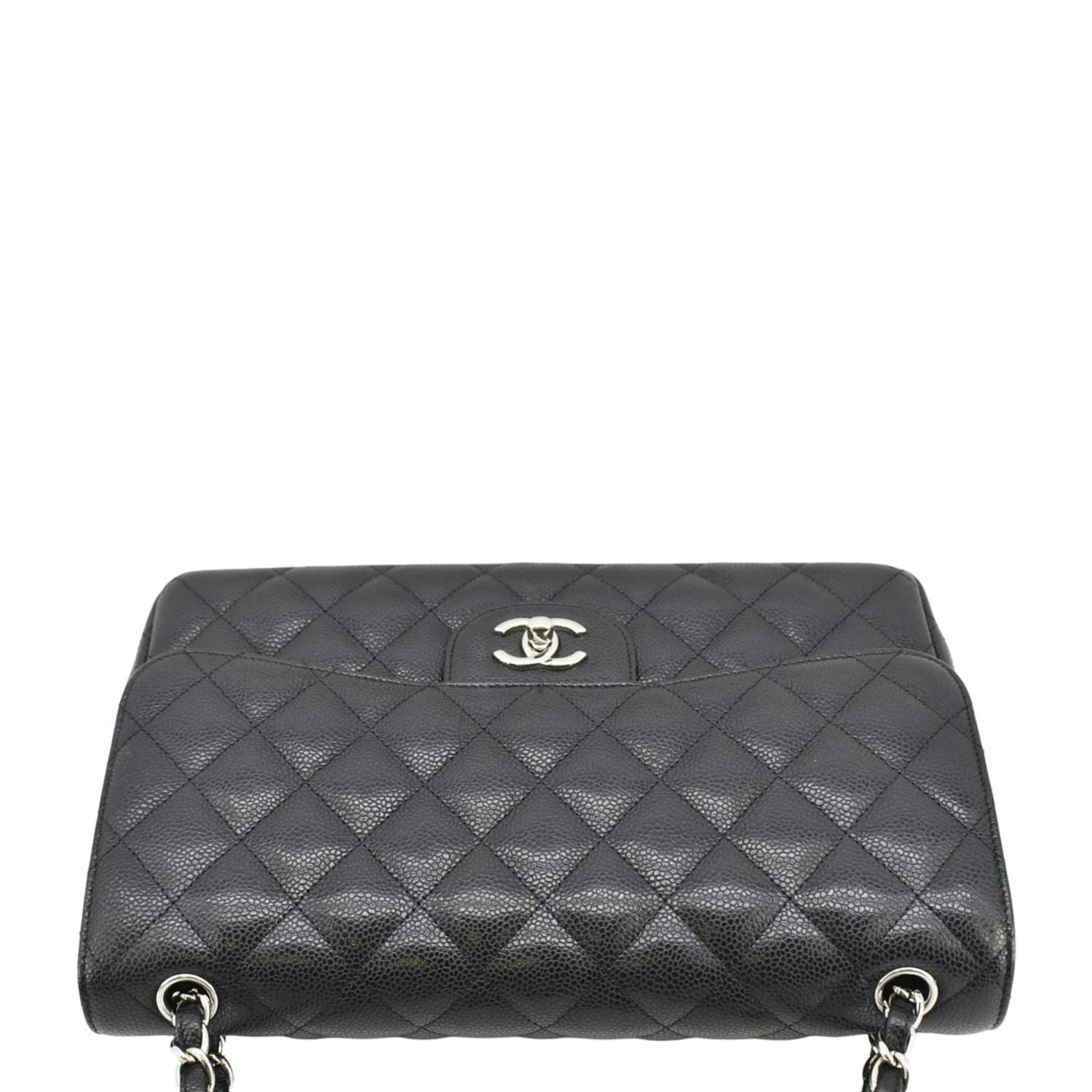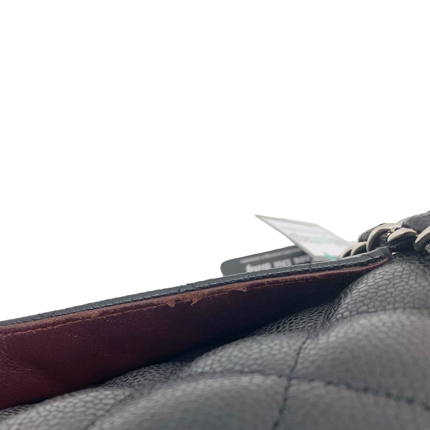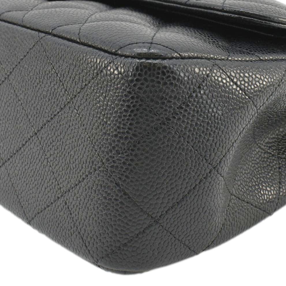 CHANEL Classic Jumbo Double Flap Quilted Caviar Leather Shoulder Bag Black