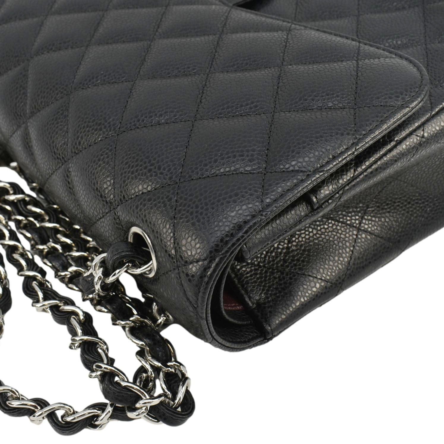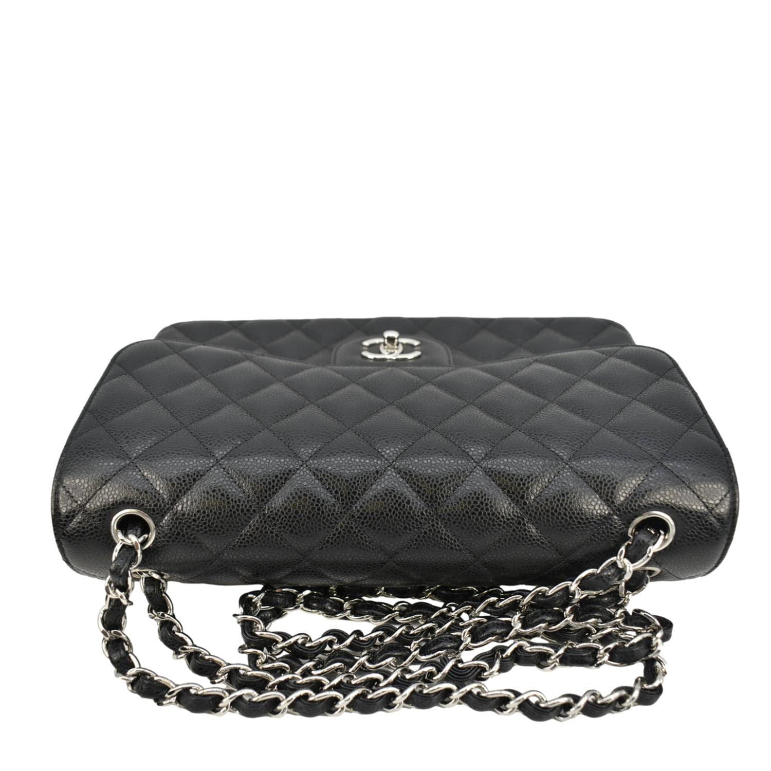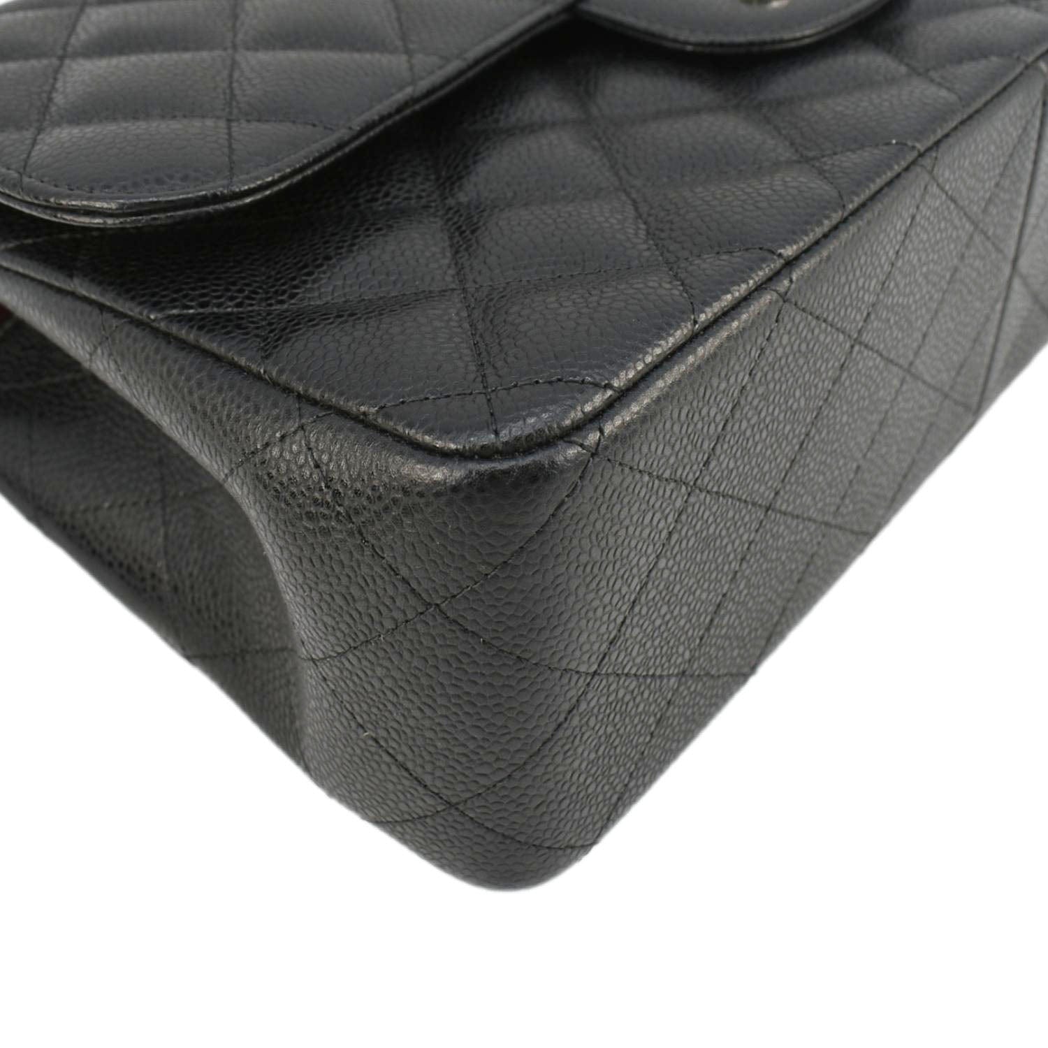 CHANEL Jumbo Classic Double Flap Quilted Caviar Leather Shoulder Bag Black