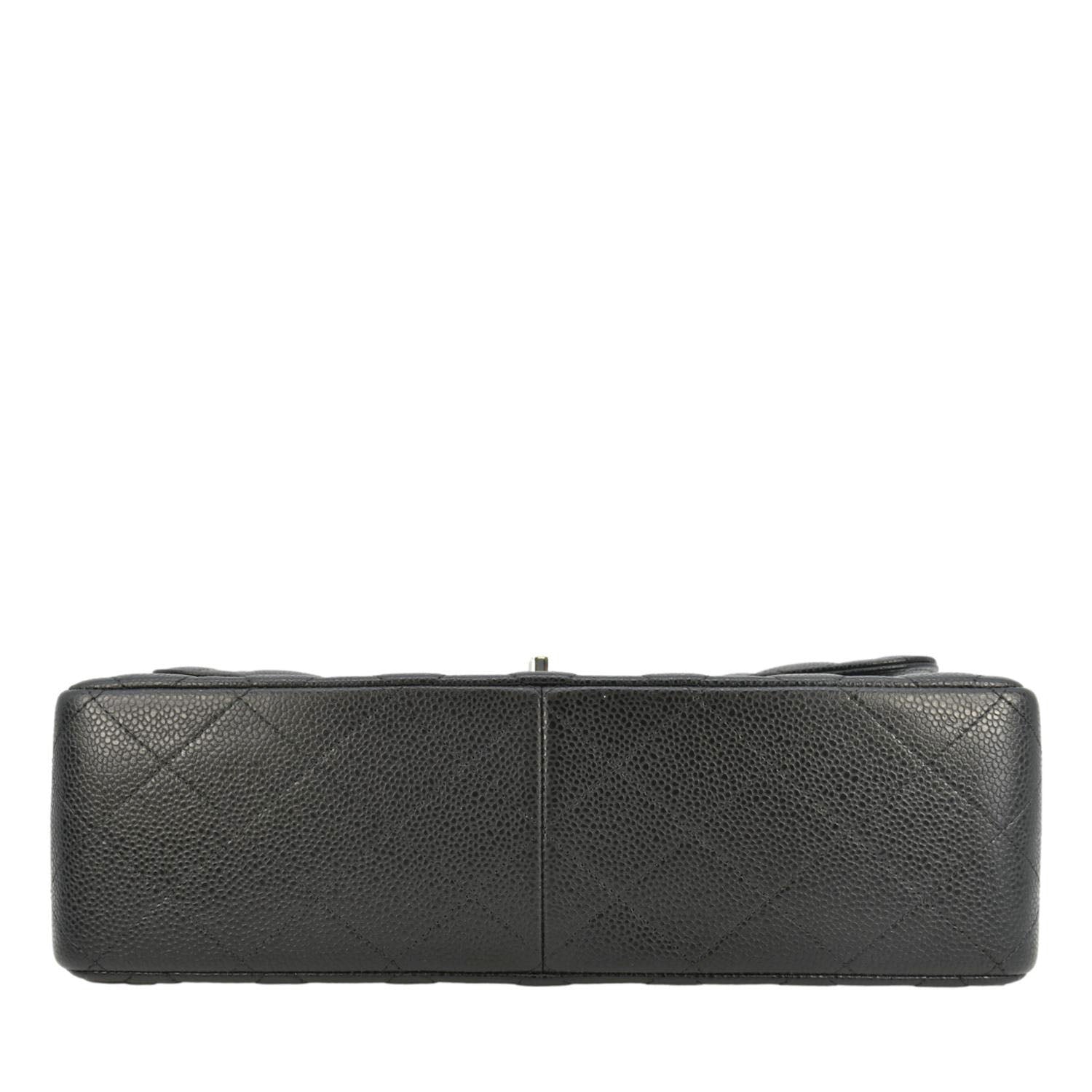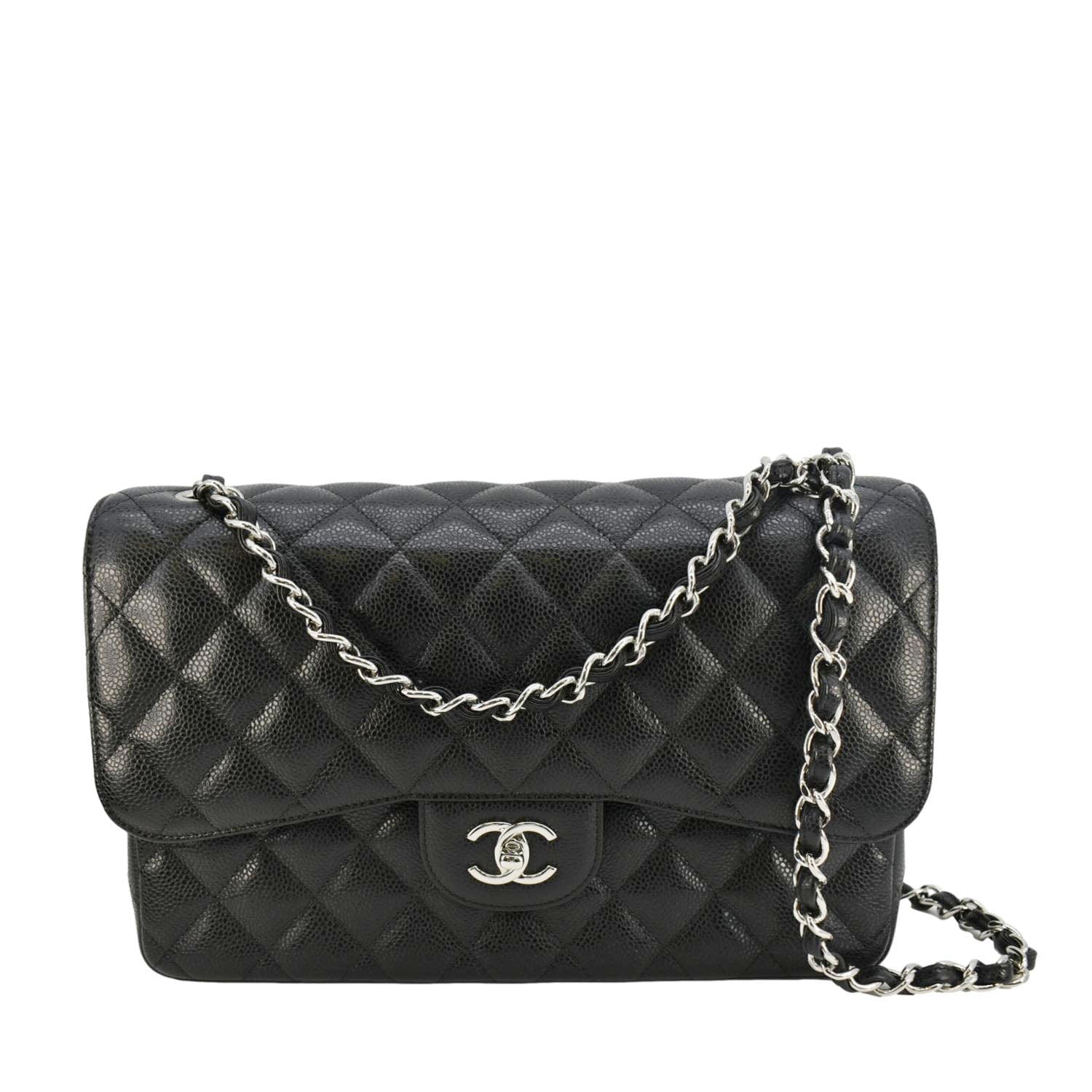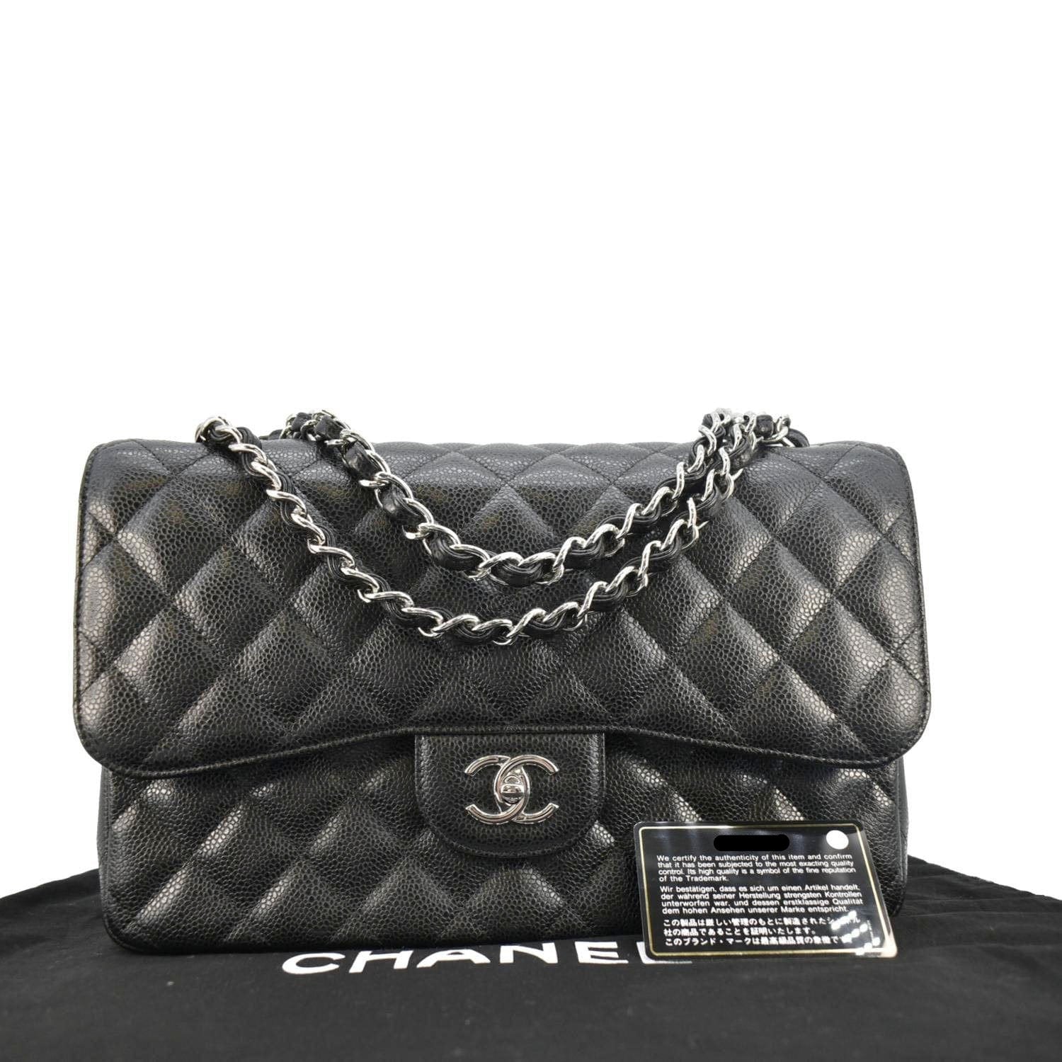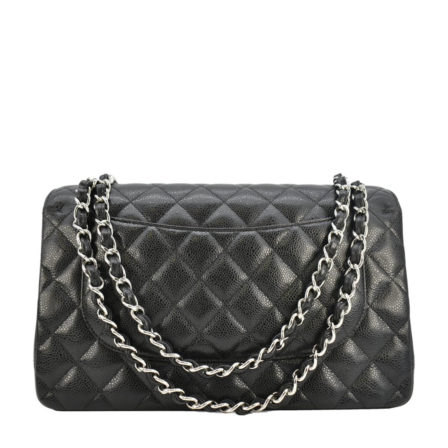 CHANEL Jumbo Classic Double Flap Quilted Caviar Leather Shoulder Bag Black