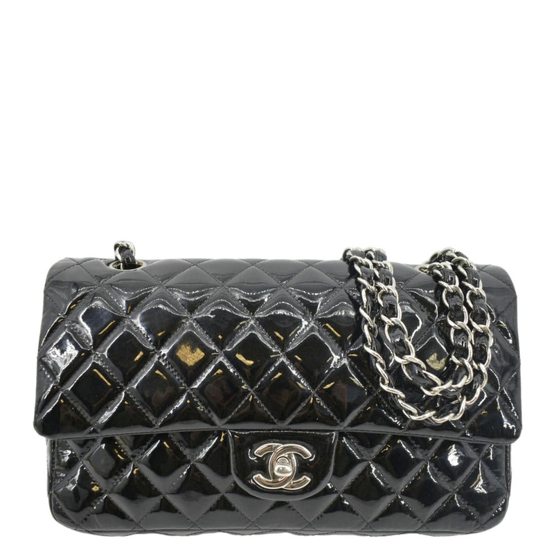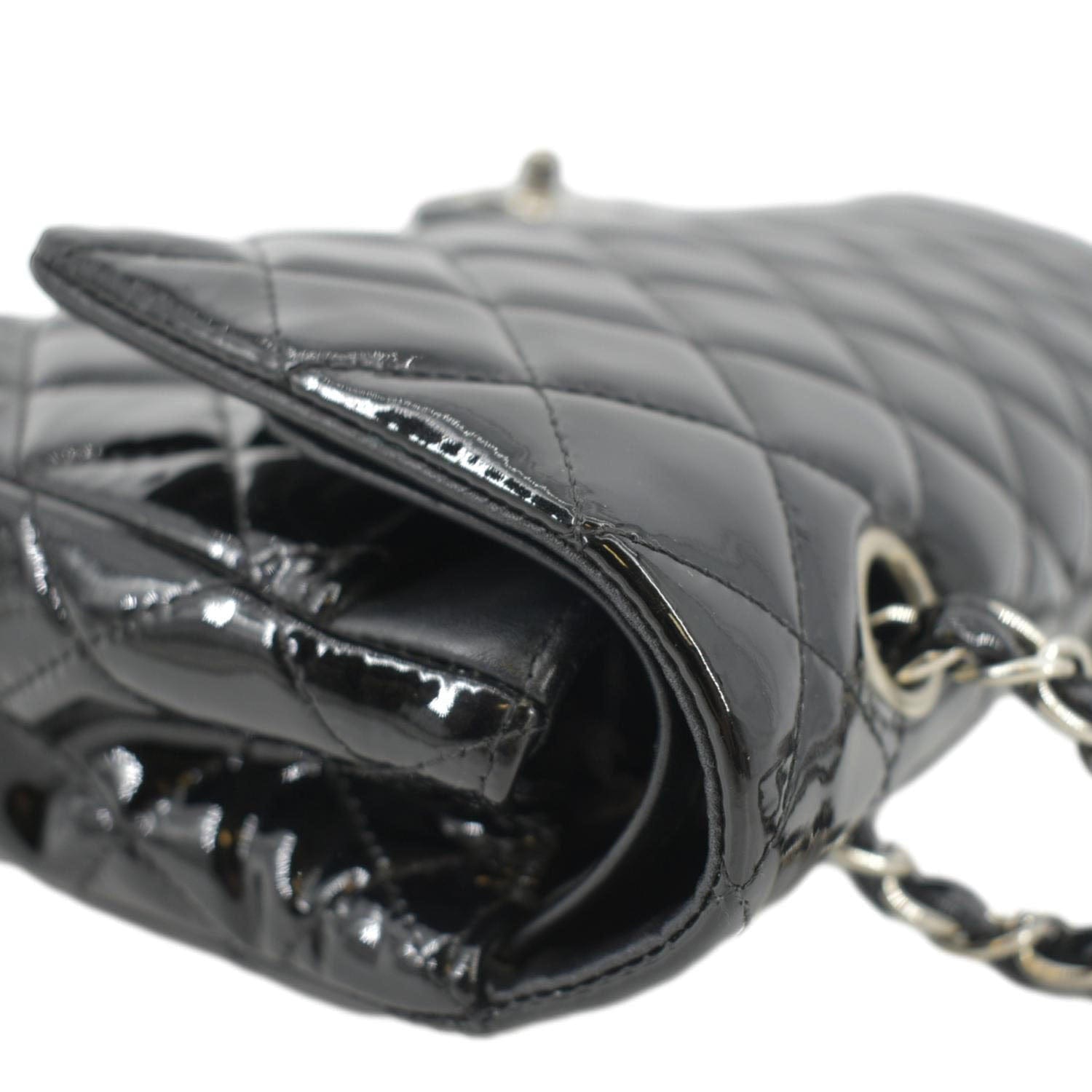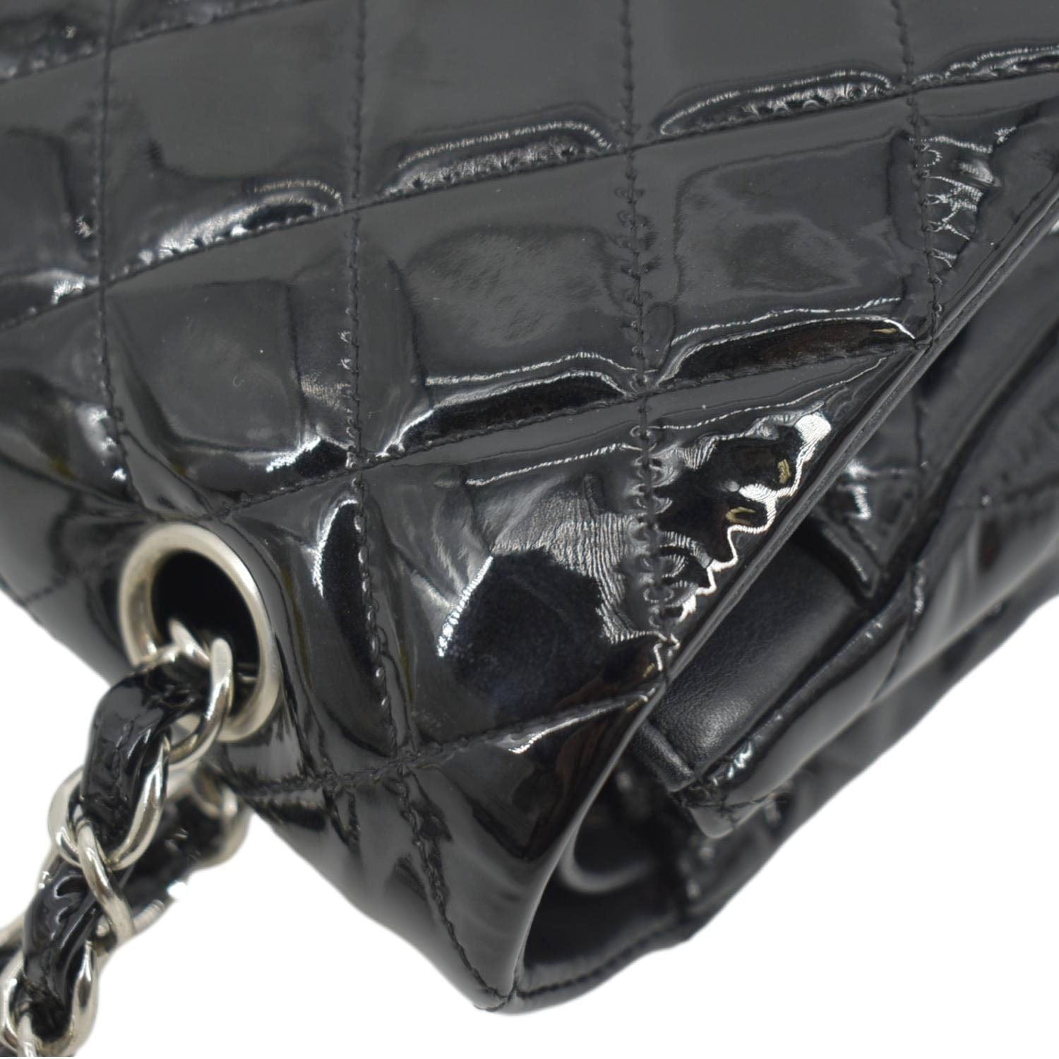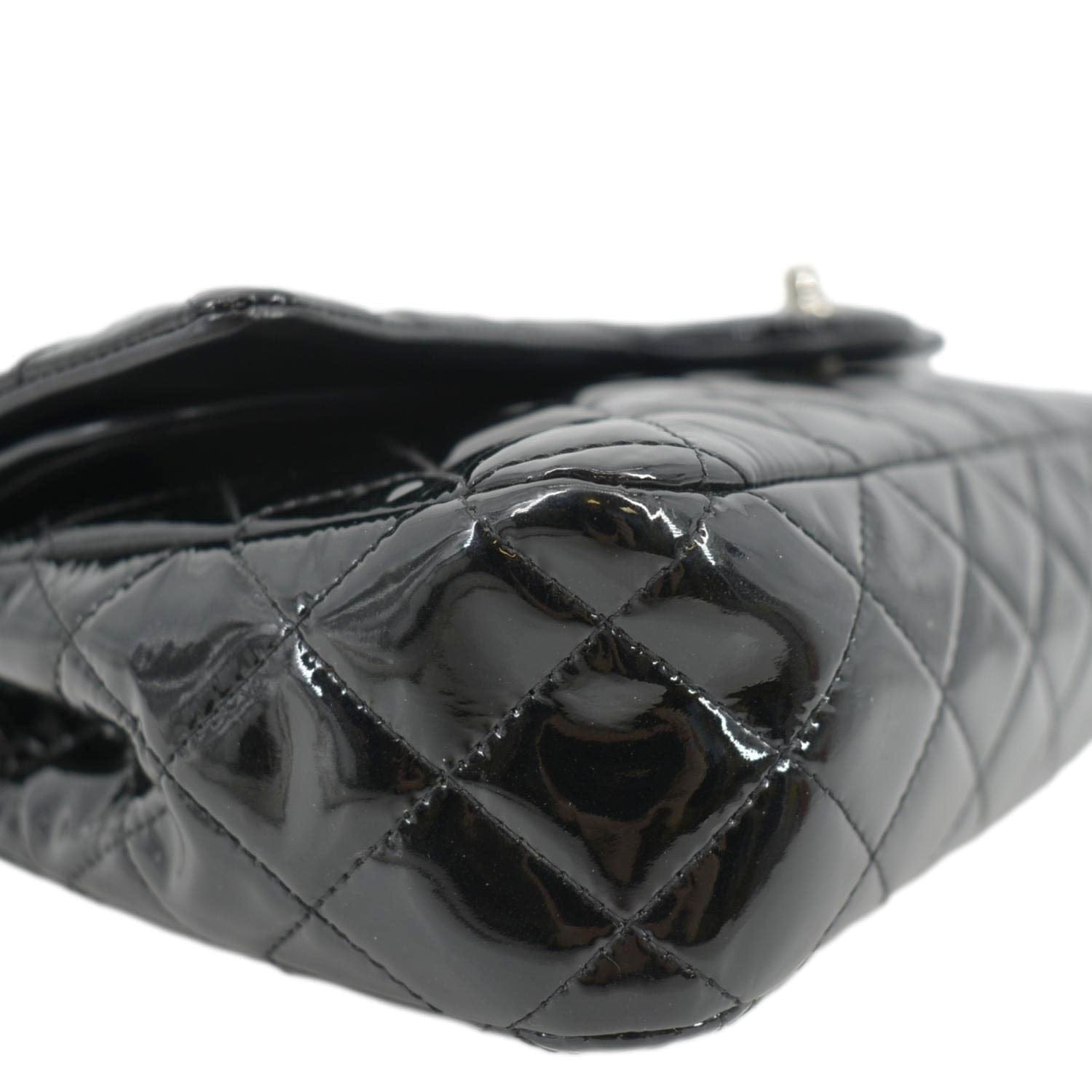 CHANEL Classic Medium Double Flap Patent Leather Shoulder Bag Black