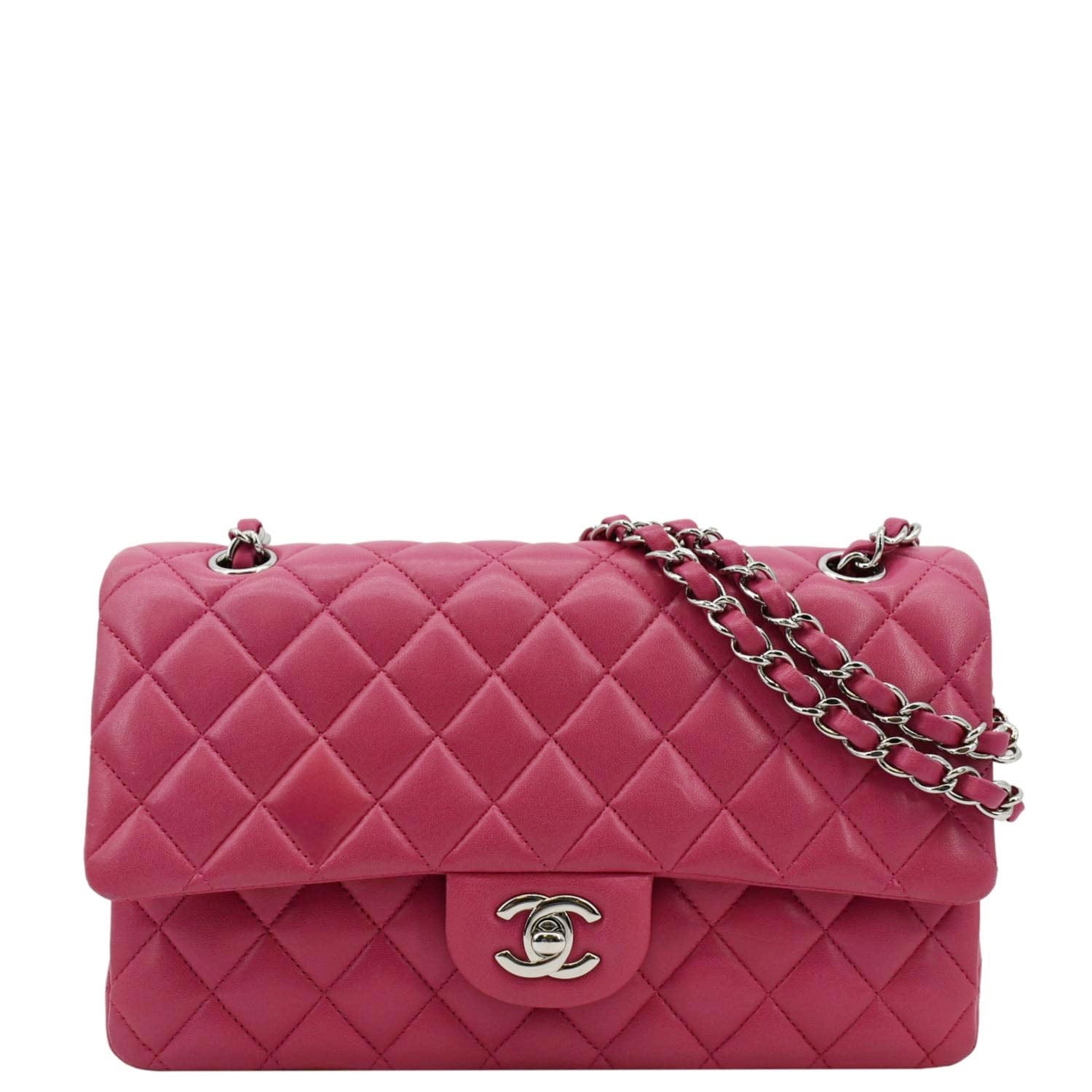 CHANEL Classic Double Flap Quilted Leather Shoulder Bag Rose Pink