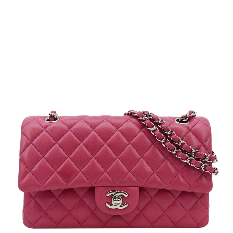 Classic Double Flap Quilted Leather Shoulder Bag Rose Pink