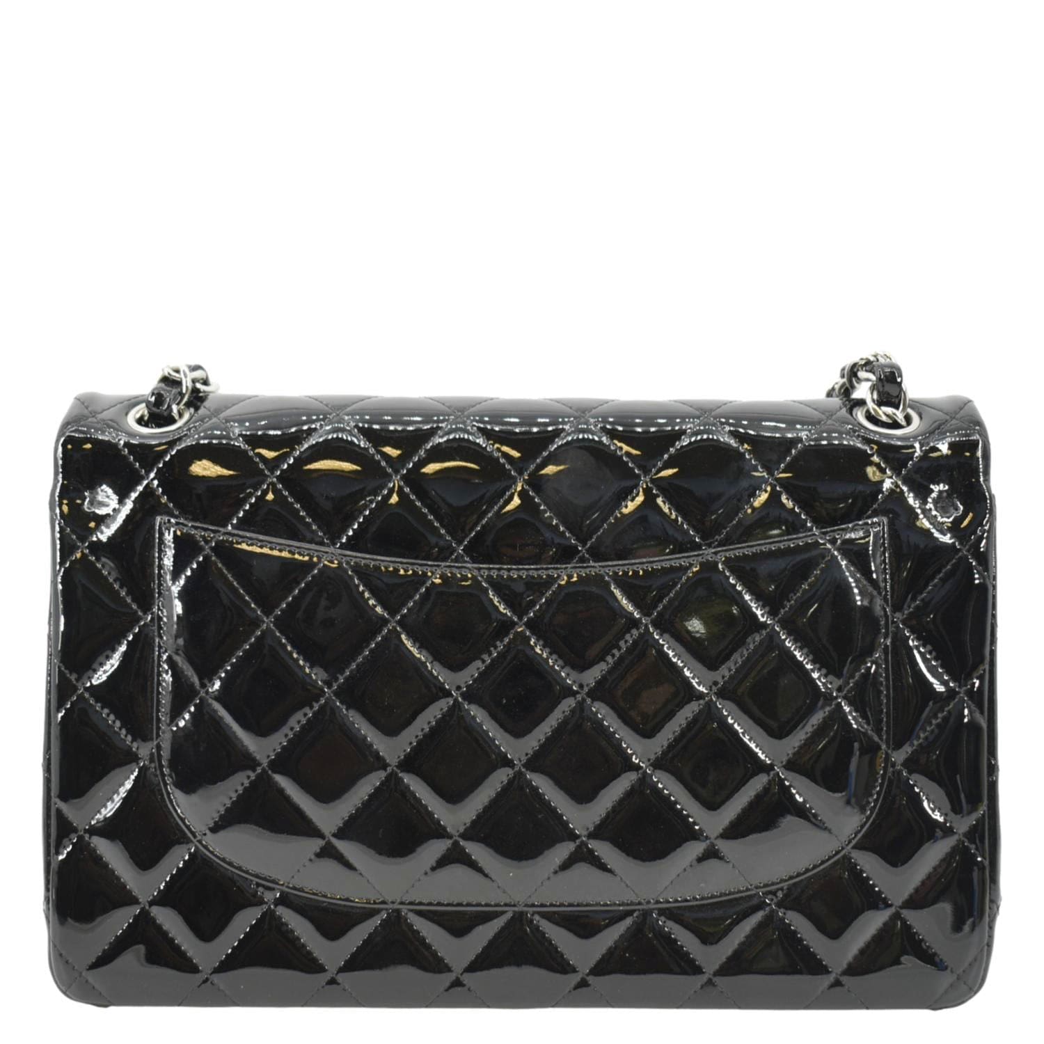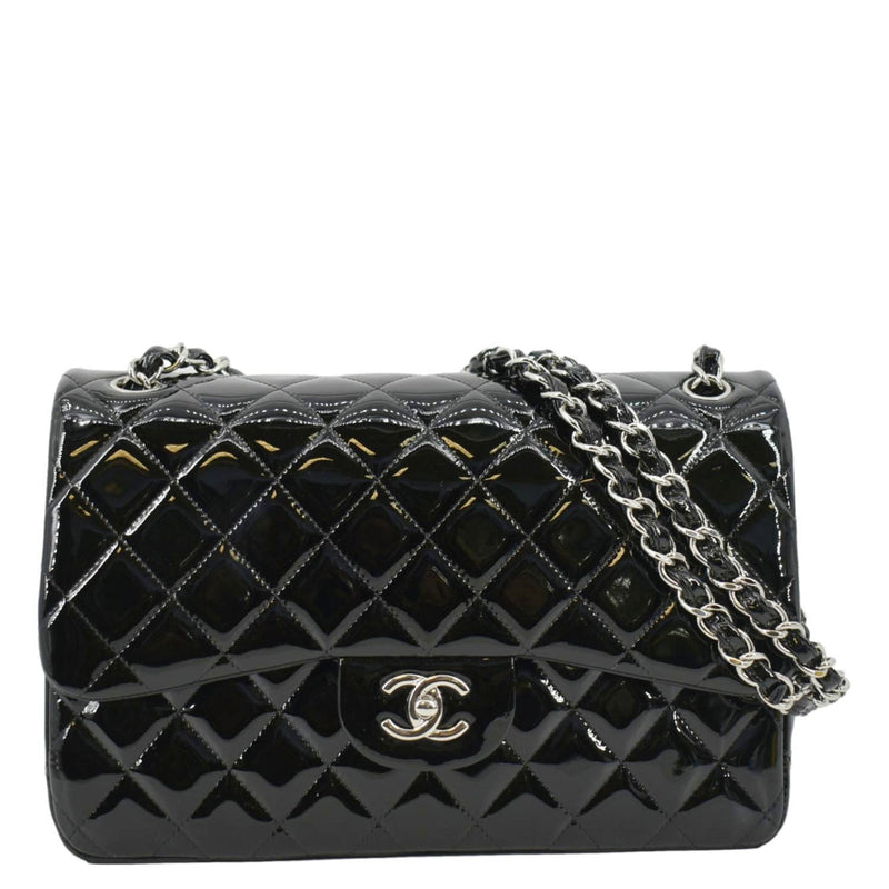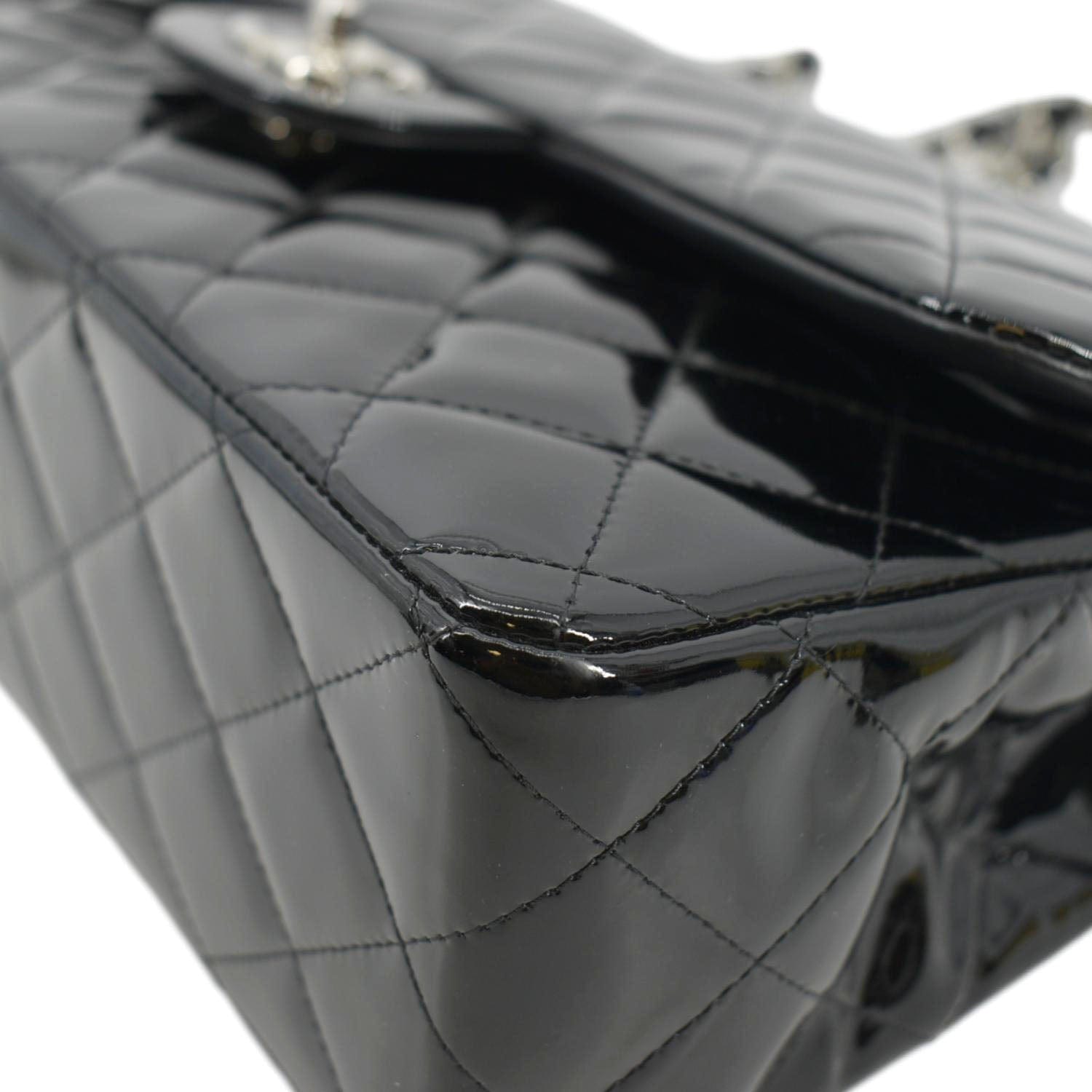 CHANEL Jumbo Flap Quilted Patent Leather Shoulder Bag Black