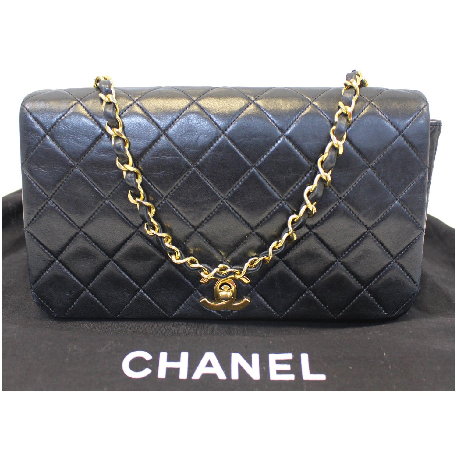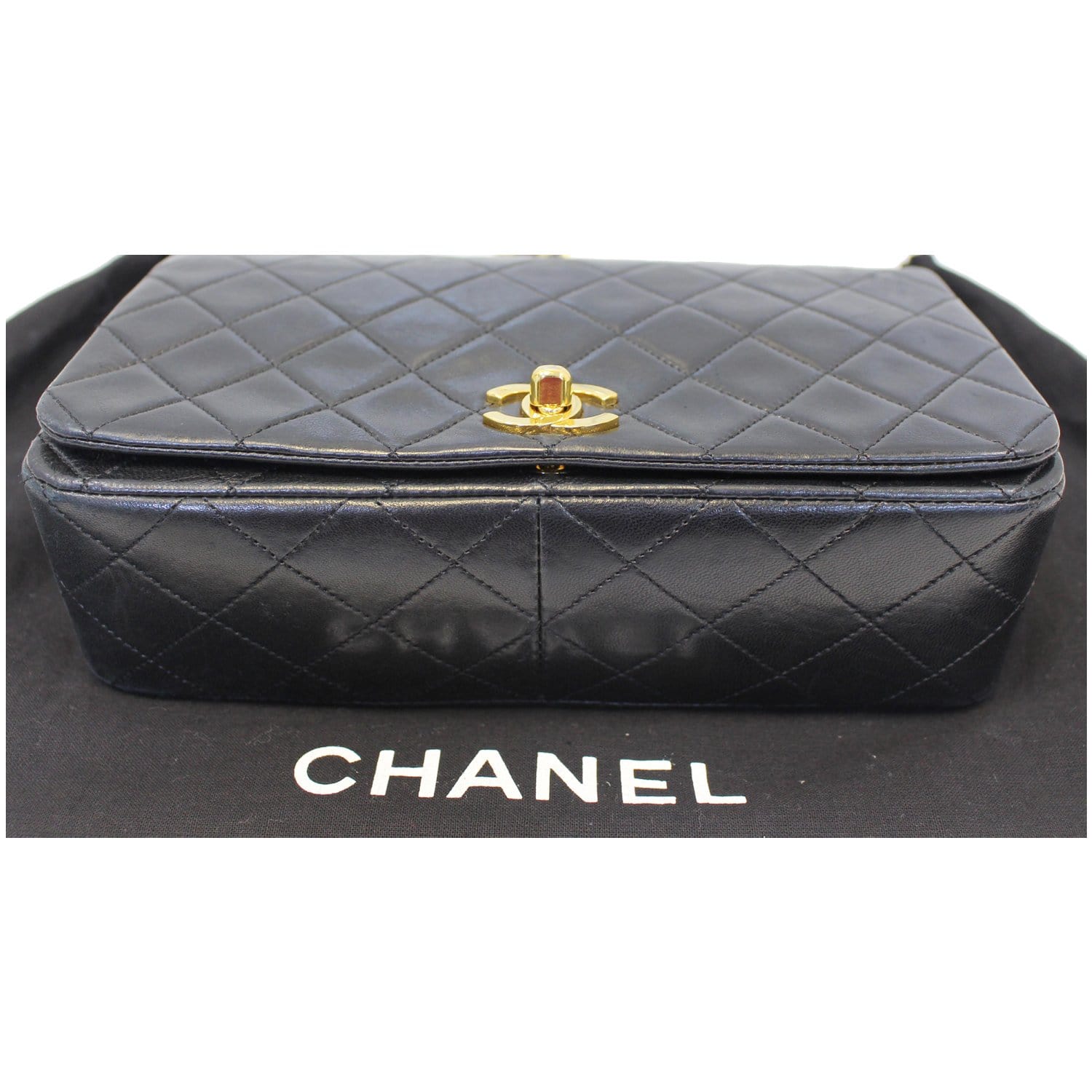 CHANEL Vintage Single Flap Quilted Lambskin Shoulder Bag Black