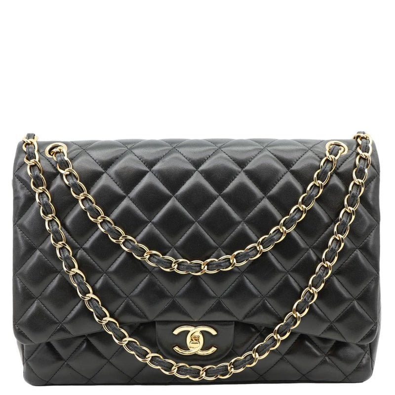 CHANEL Maxi Classic Double Flap Calfskin Leather Shoulder Bag Black