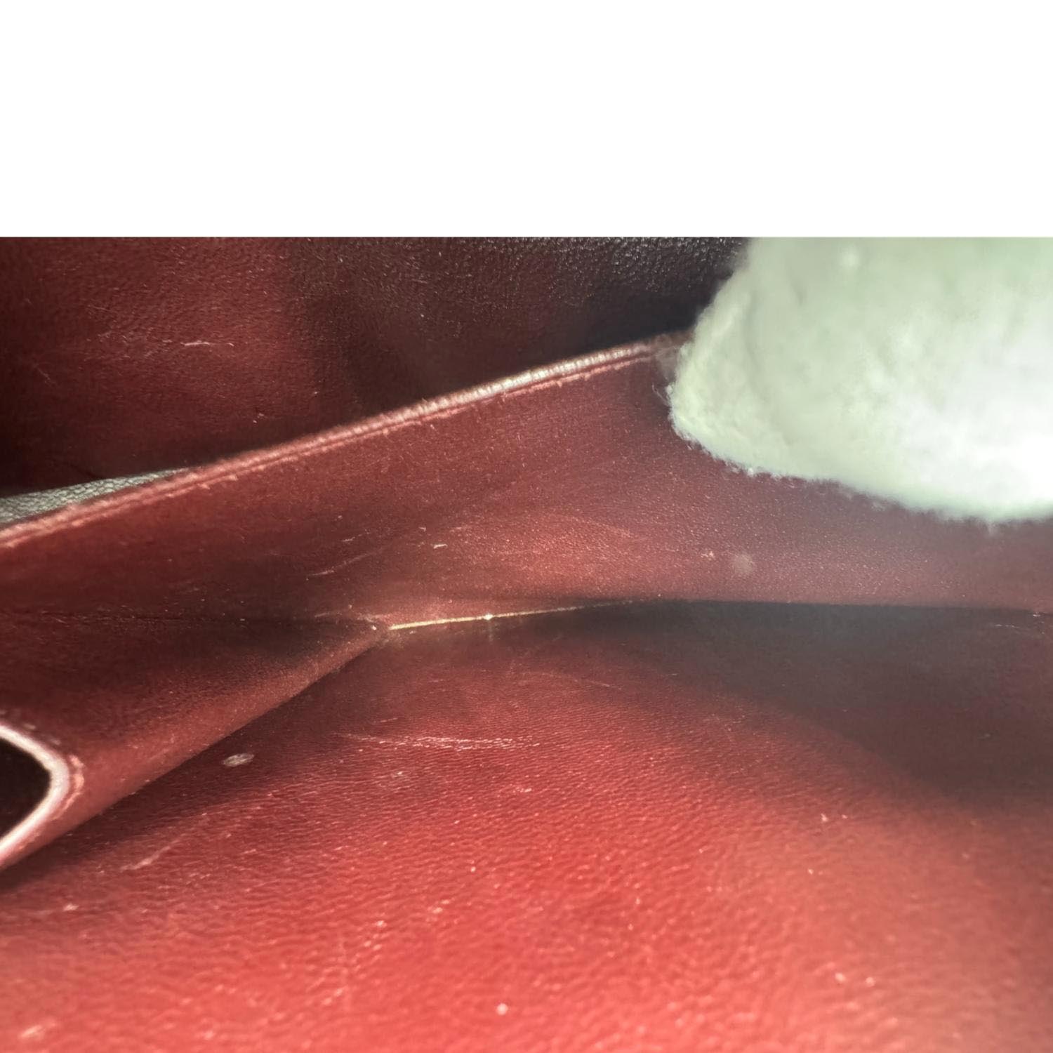 Good - The Item shows signs of use, including rubbed corners, scuffing on leather, and scratches on the interior. Its gold color hardware has light scratches. There is no unpleasant smell within the item.