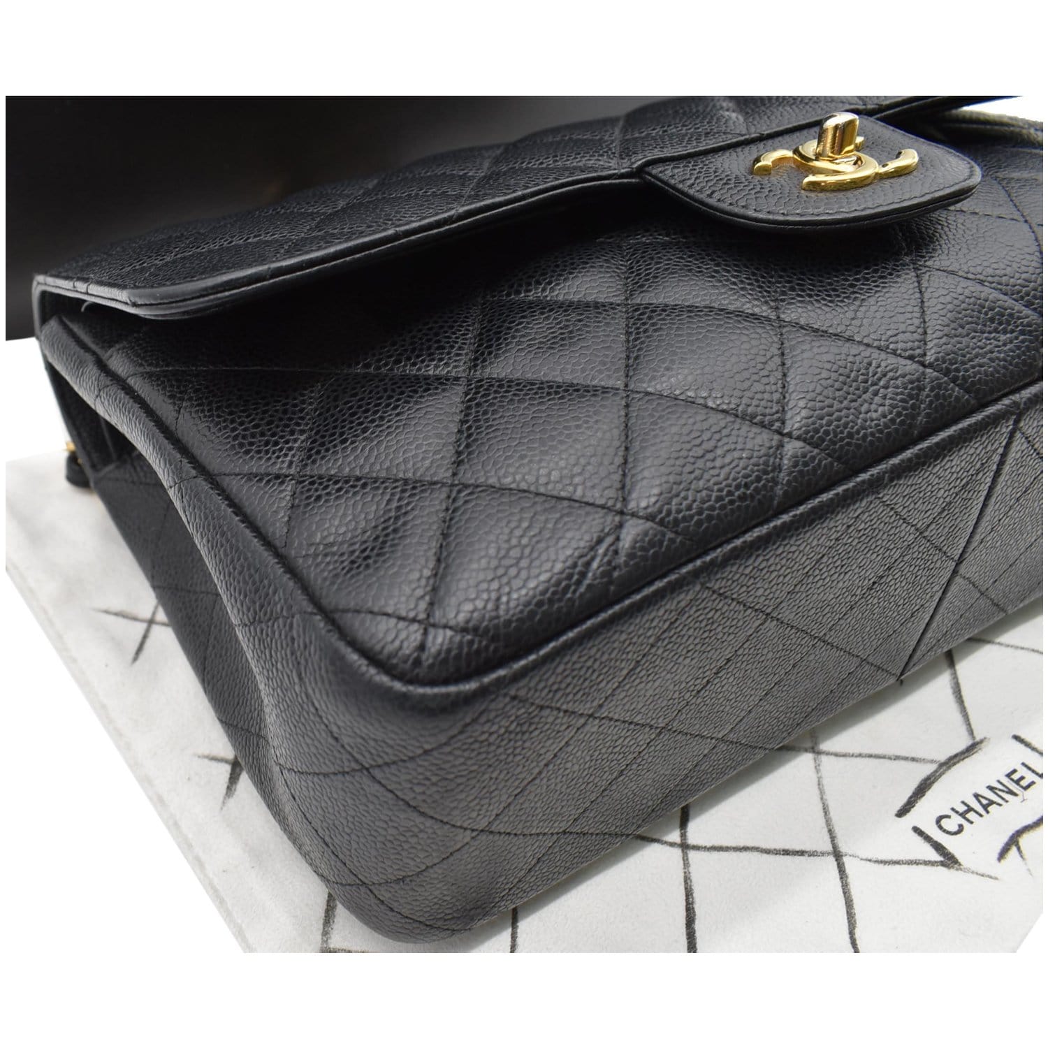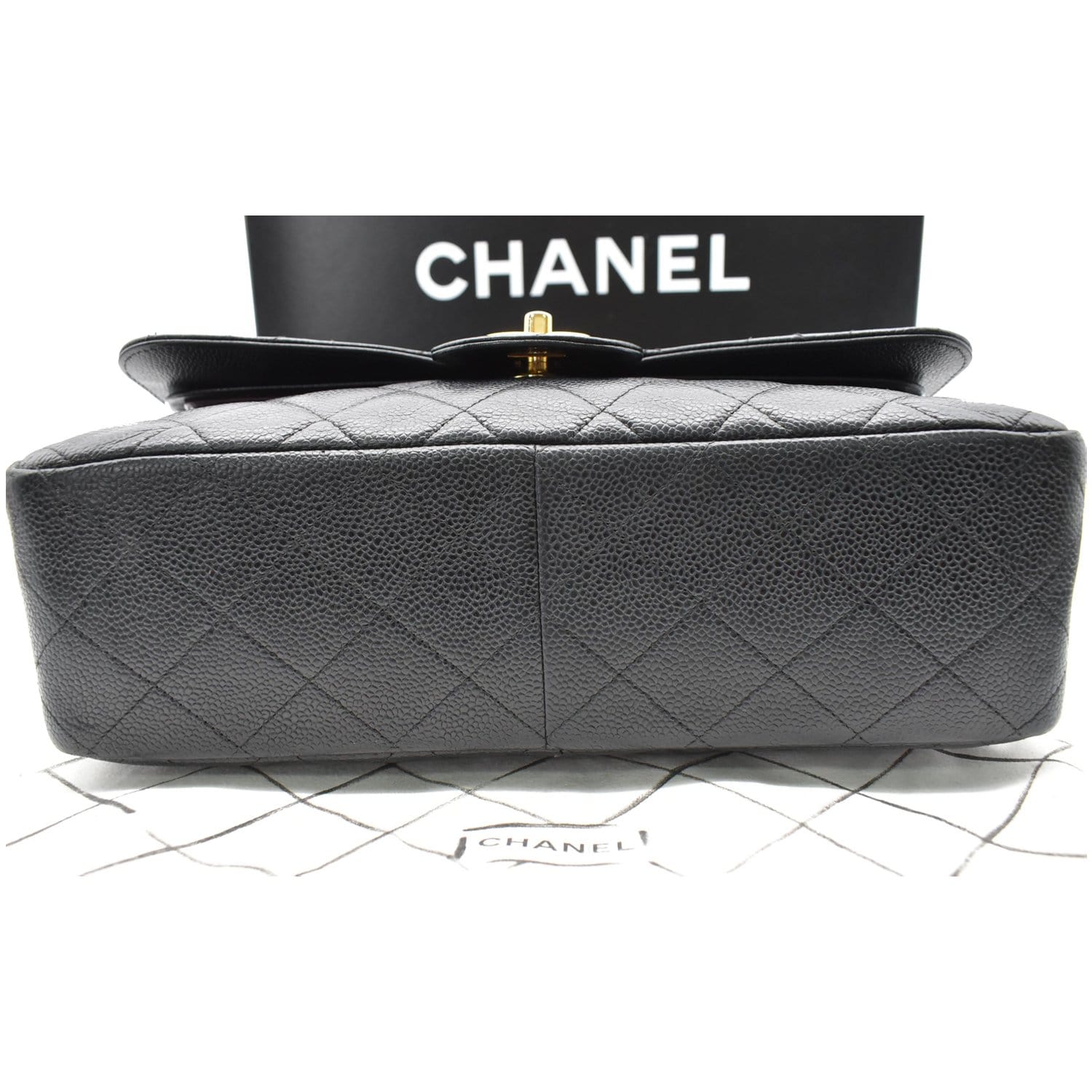 CHANEL Classic Jumbo Double Flap Caviar Leather Shoulder Bag Black